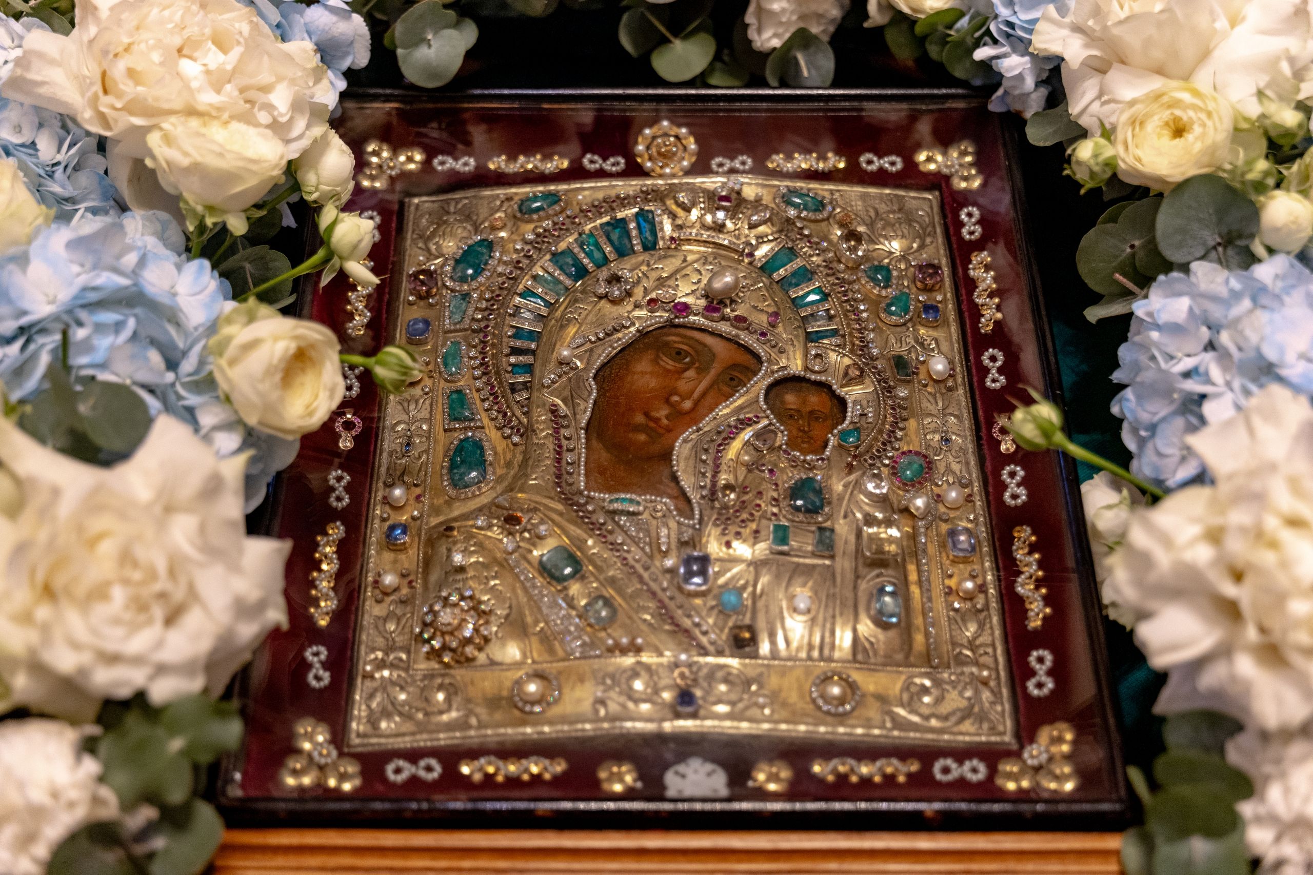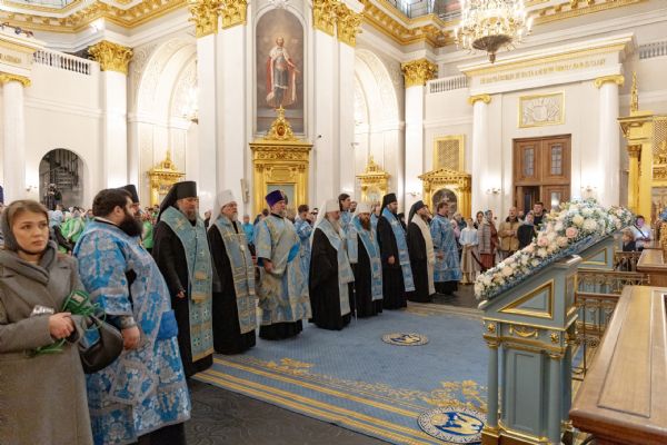 Казанская икона Божией Матери была внесена в воссозданный Казанский кафедральный собор. После принесения святыни на место её обретения в Казанском соборе началось служение Божественной литургии.