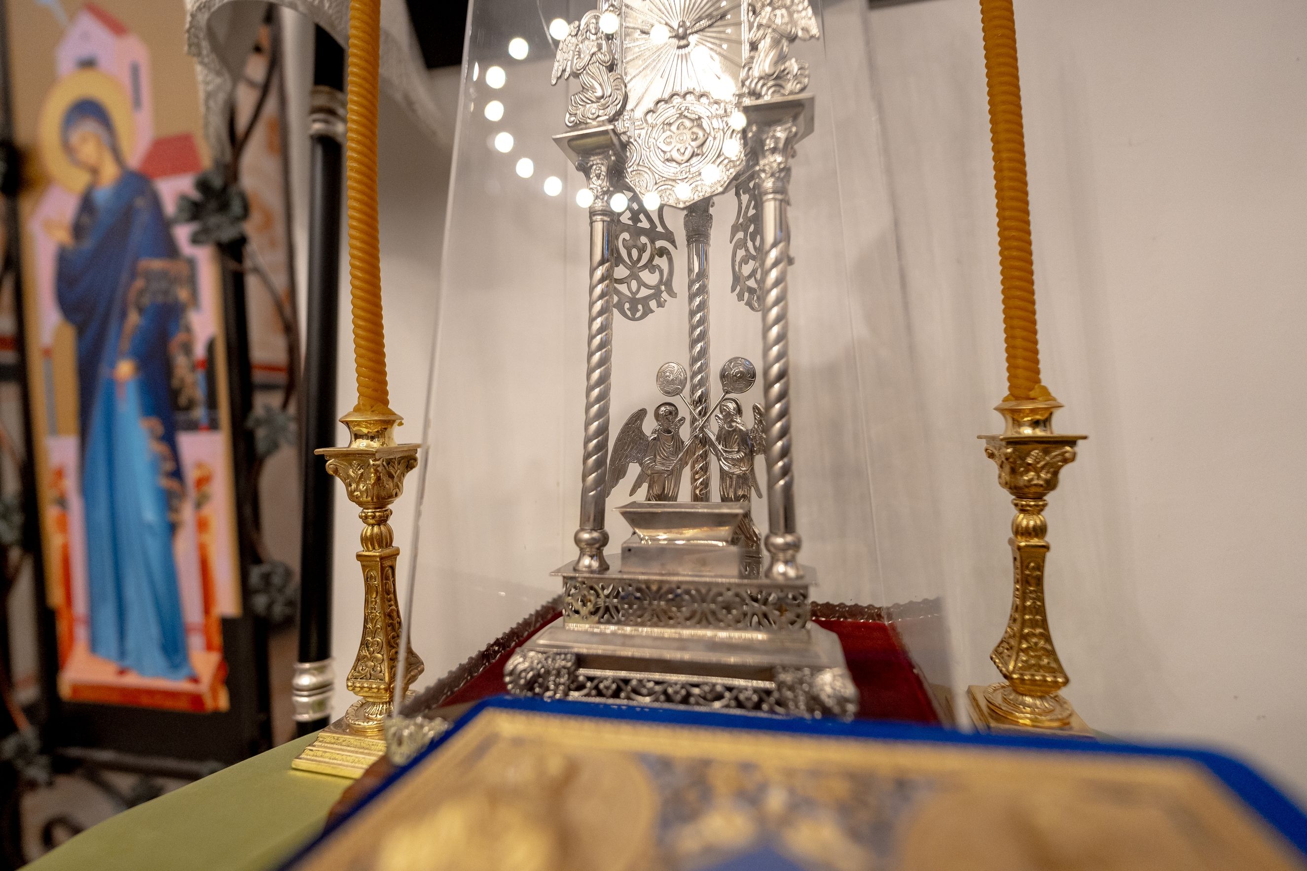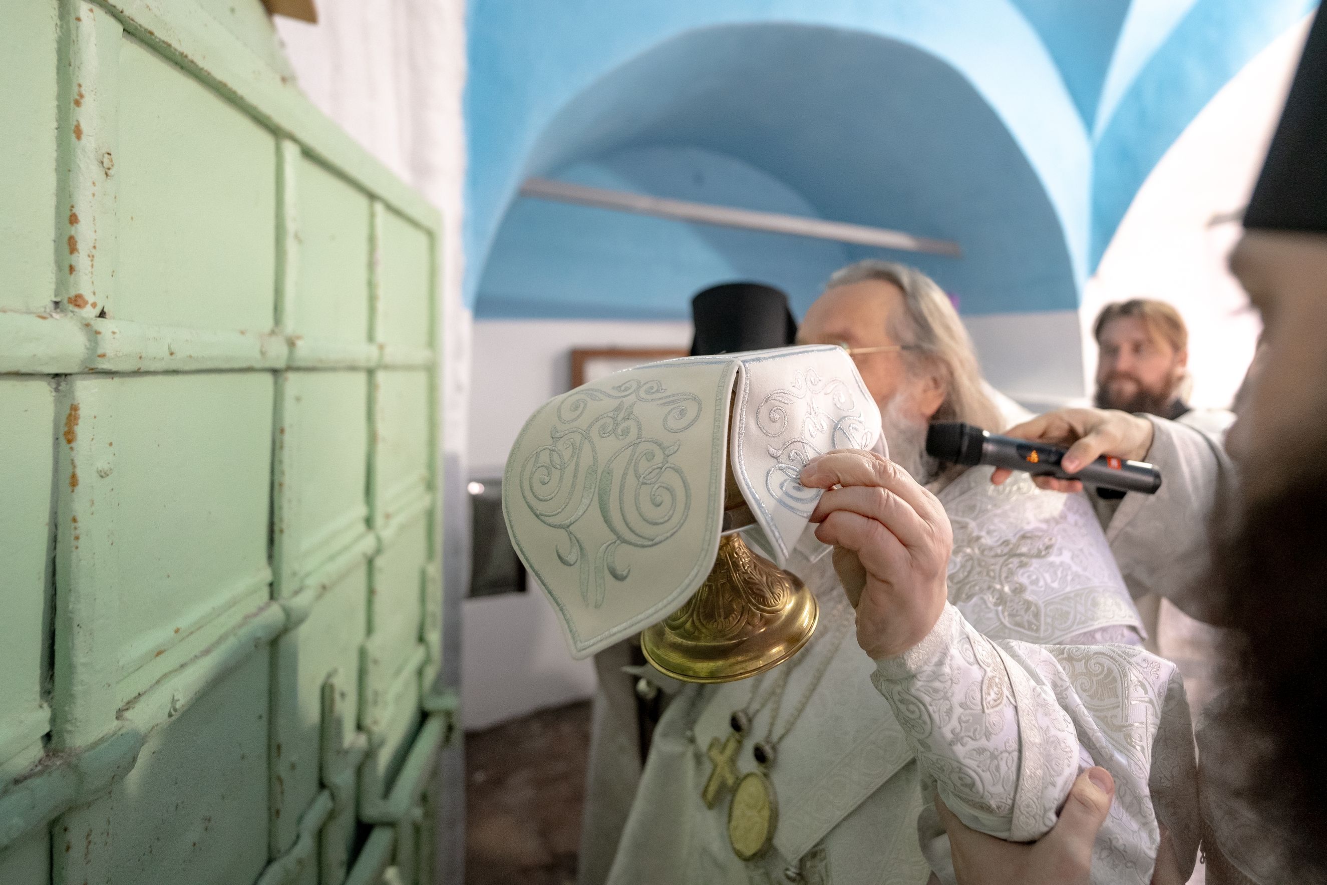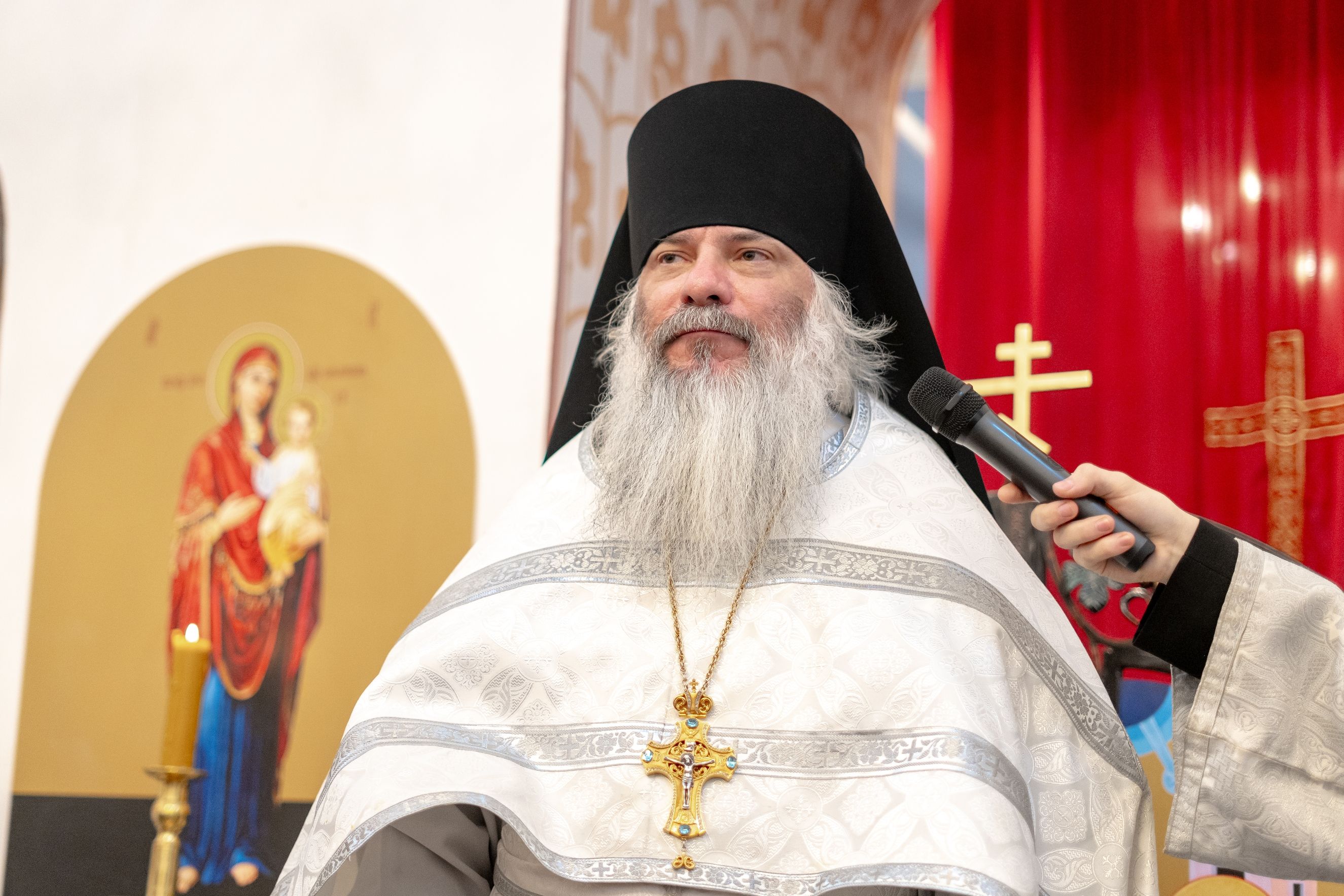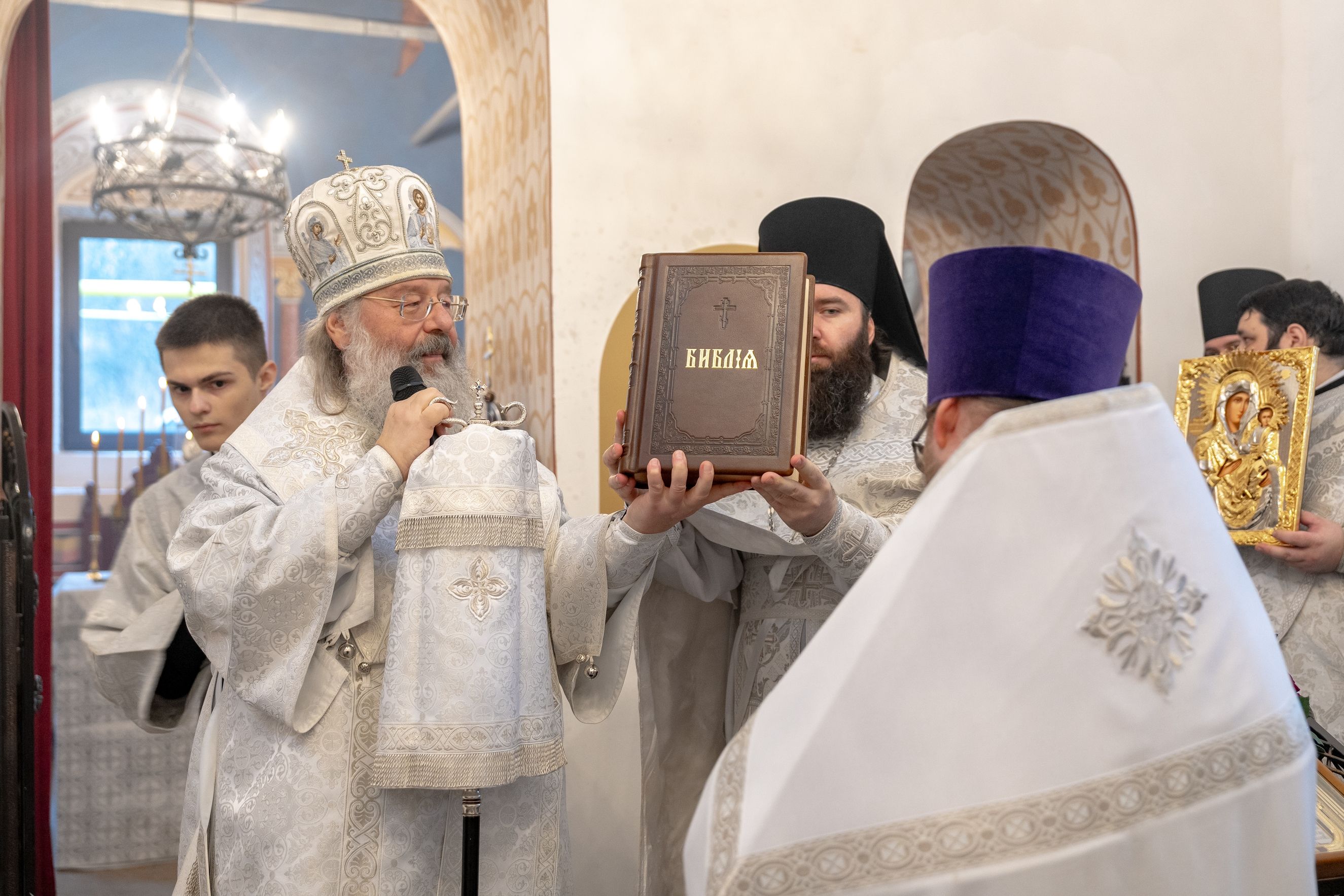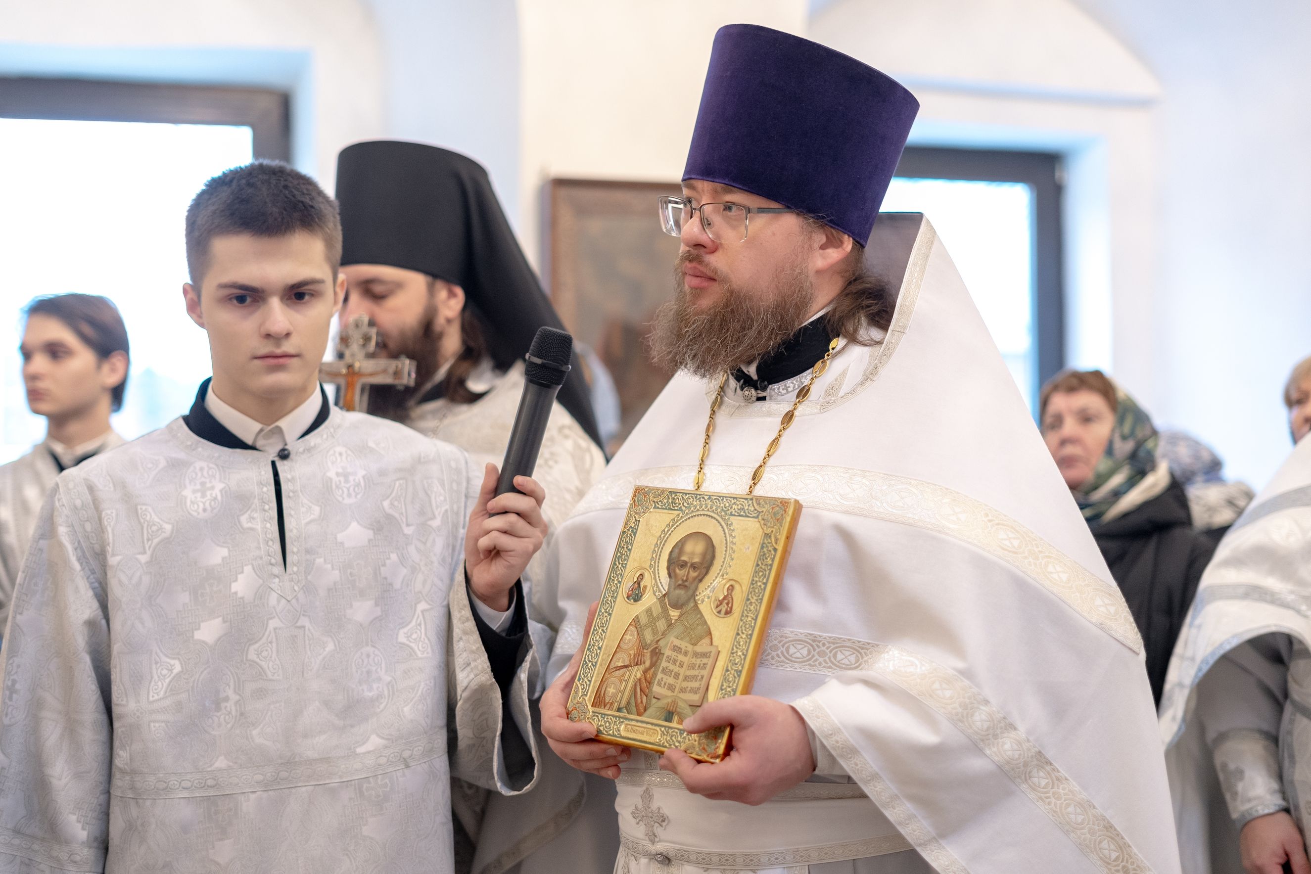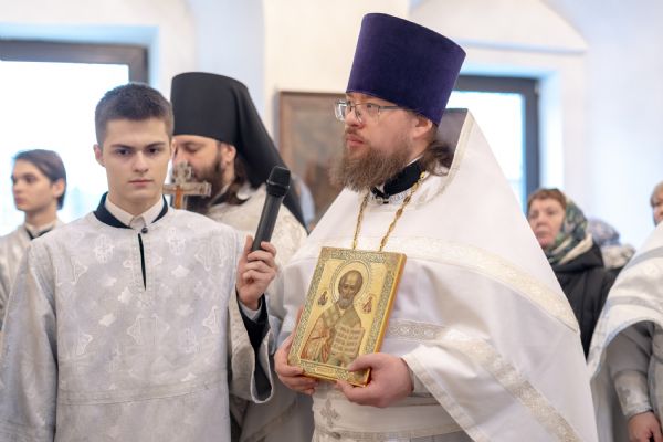 На память об освящении храма и первой за 120 лет архиерейской Литургии священник преподнес правящему архиерею старинный образ святителя Николая Чудотворца.