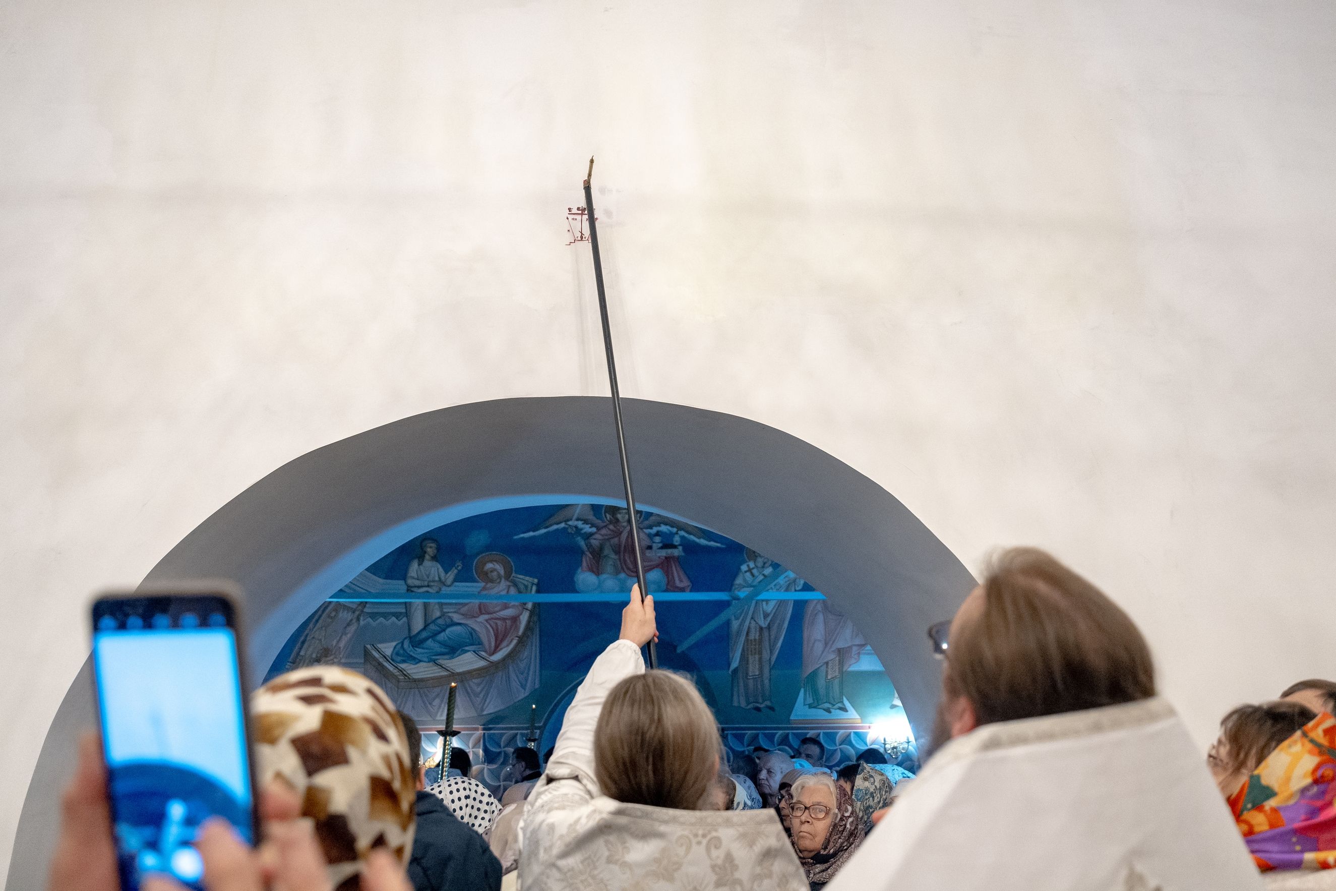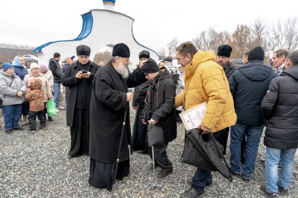 Ещё раз поздравляю вас с праздником! Желаю вам доброго здоровья, утешения, радости, доброты сердечной! Пусть всё доброе, что бы вы хотели видеть в других людях, в первую очередь наполняет ваши сердца. Всегда помните: то, что невозможно человеку – возможно Богу. Господь посылает людей, которые делают невозможное возможным. Местные жители признавались, что не могли даже представить, что этот храм так скоро вернётся к жизни, но это чудо произошло. Также мне сказали, что здесь живёт всего 40 человек. И почти все жители сегодня пришли в храм. Желаю, чтобы в воскресные и праздничные дни вы всегда собирались в Божием храме. Пусть ощущение родства с Небом никогда не покидает ваши сердца.
