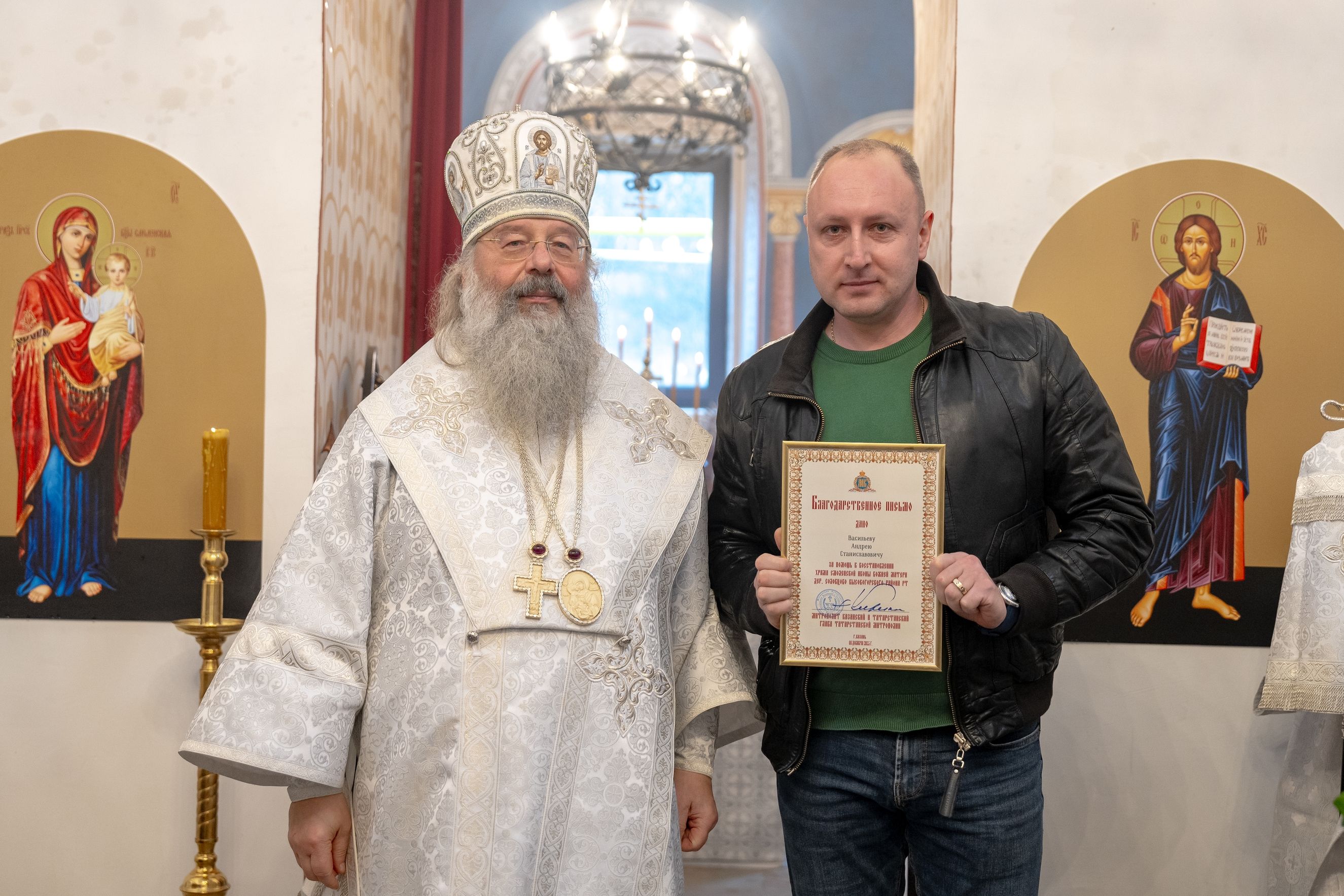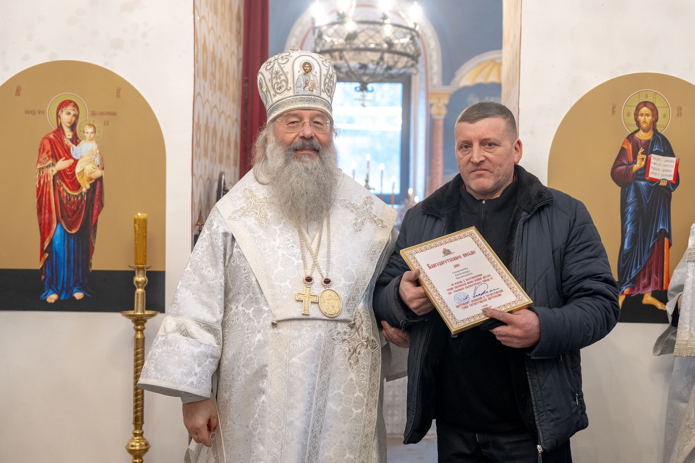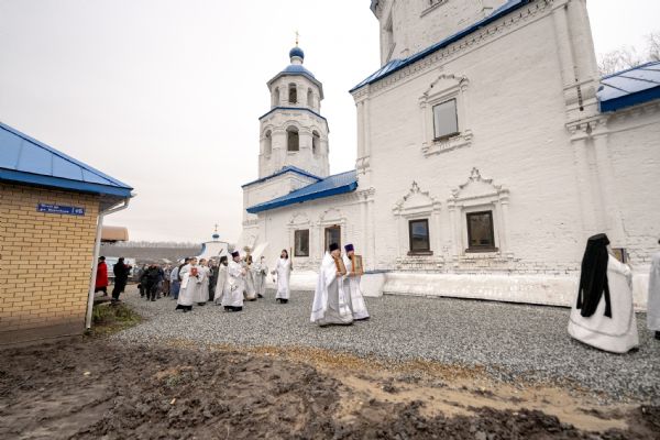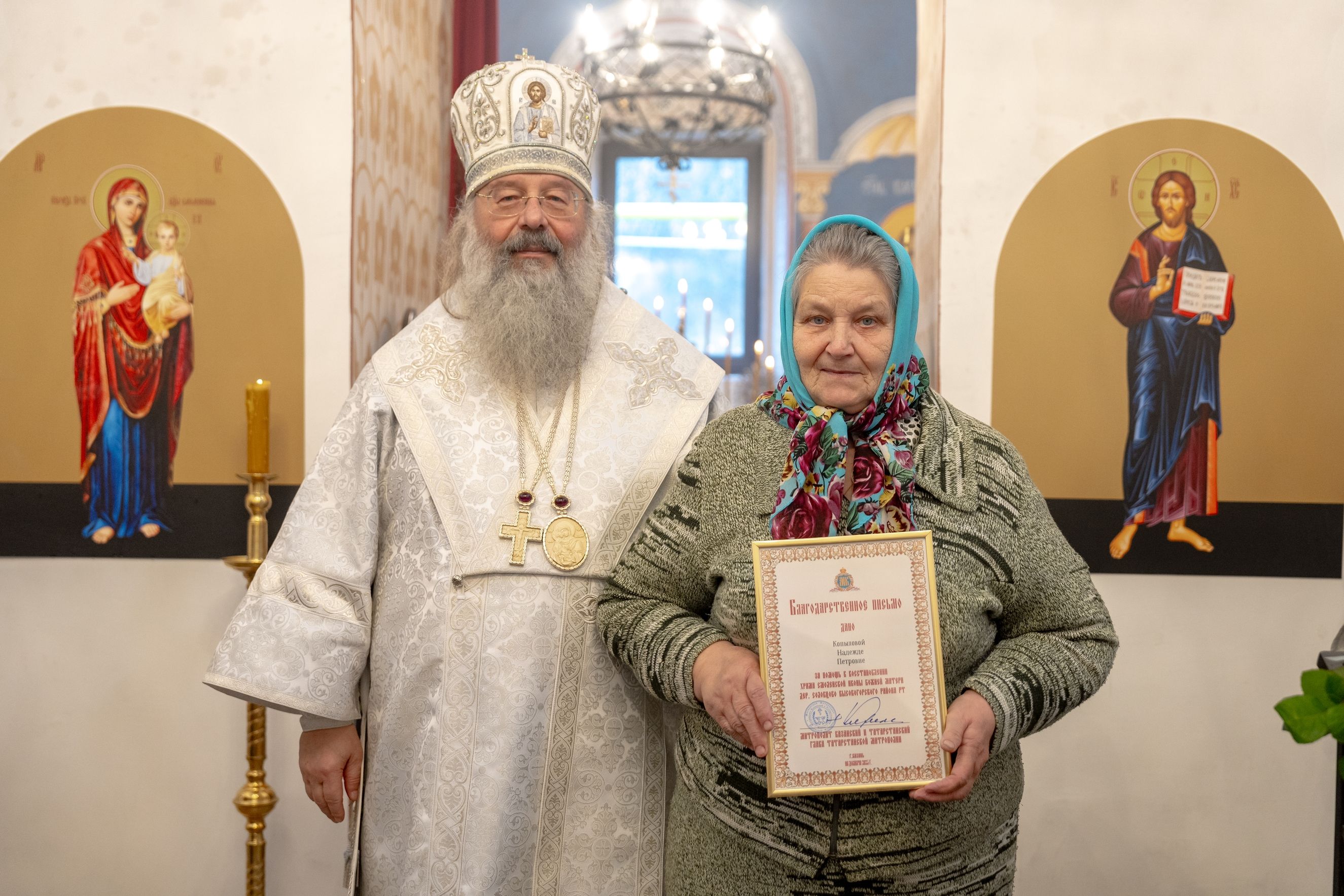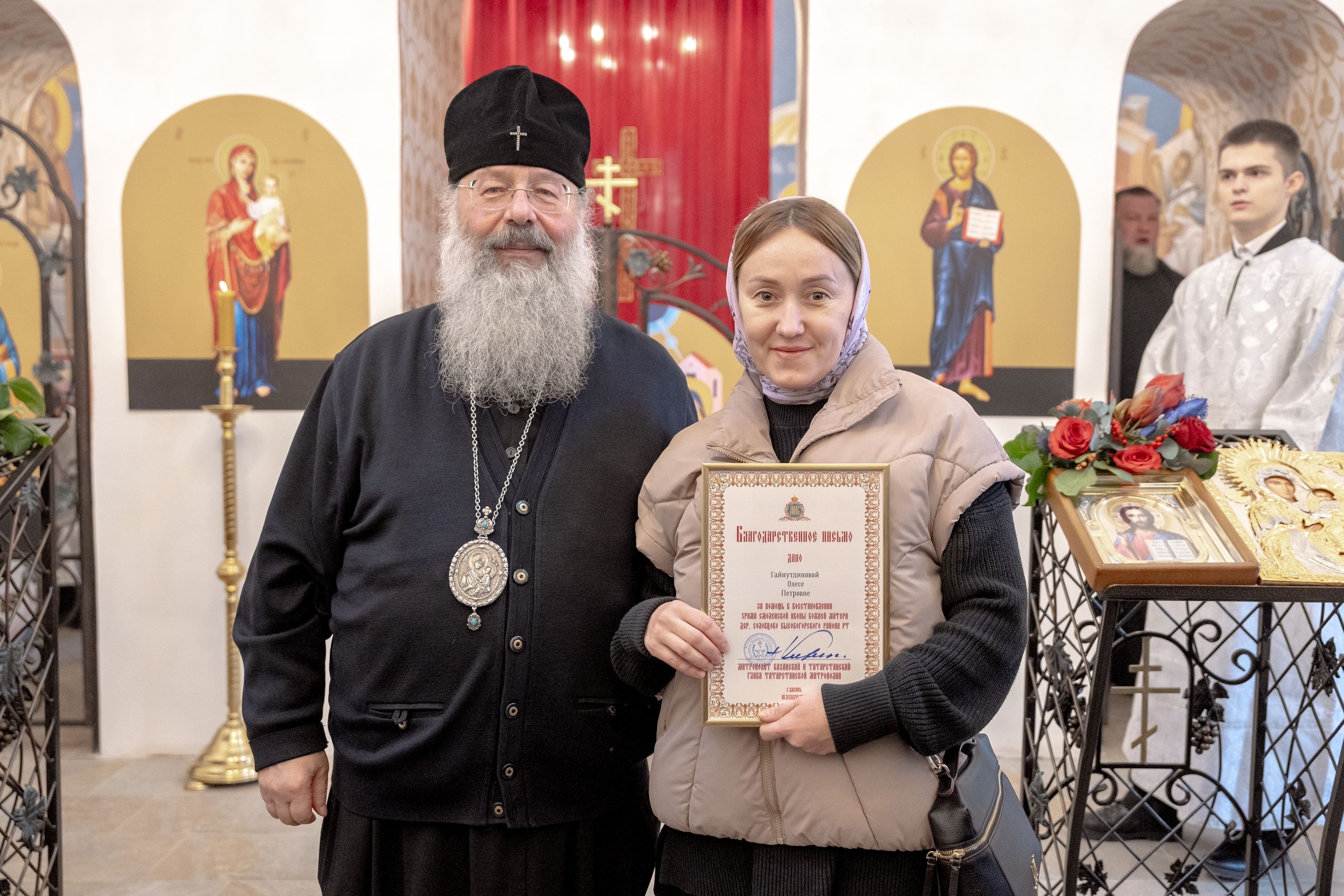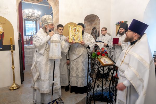 Митрополит Кирилл передал в храм одно из Евангелий, которые Святейший Патриарх Московский и всея Руси Кирилл в ходе Первосвятительского визита в Татарстанскую митрополию благословил раздать новым приходам. На молитвенную память владыка преподнёс приходу Смоленскую икону Божией Матери.