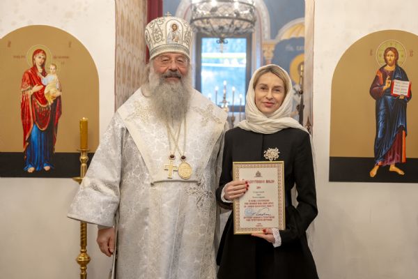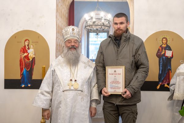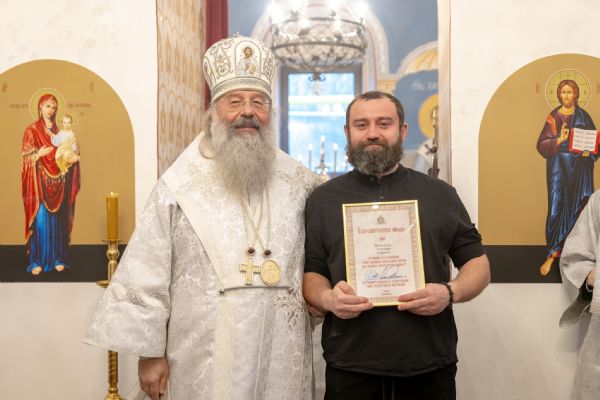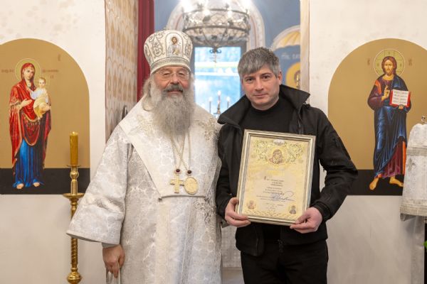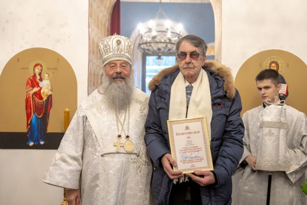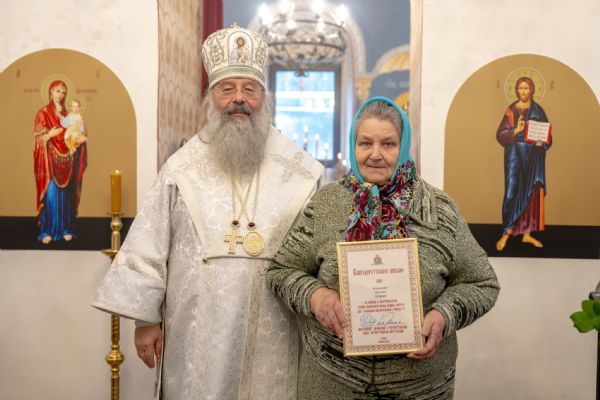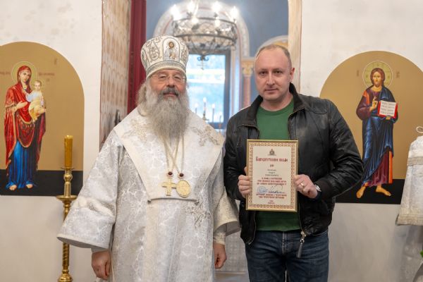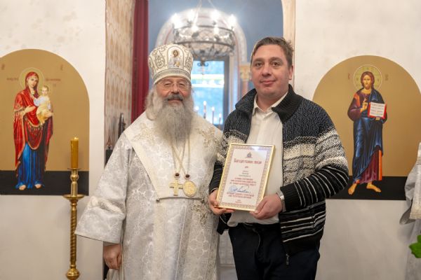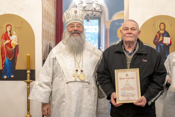 Правящий архиерей также вручил епархиальные награды мирянам, которые активно участвовали в восстановлении храма.