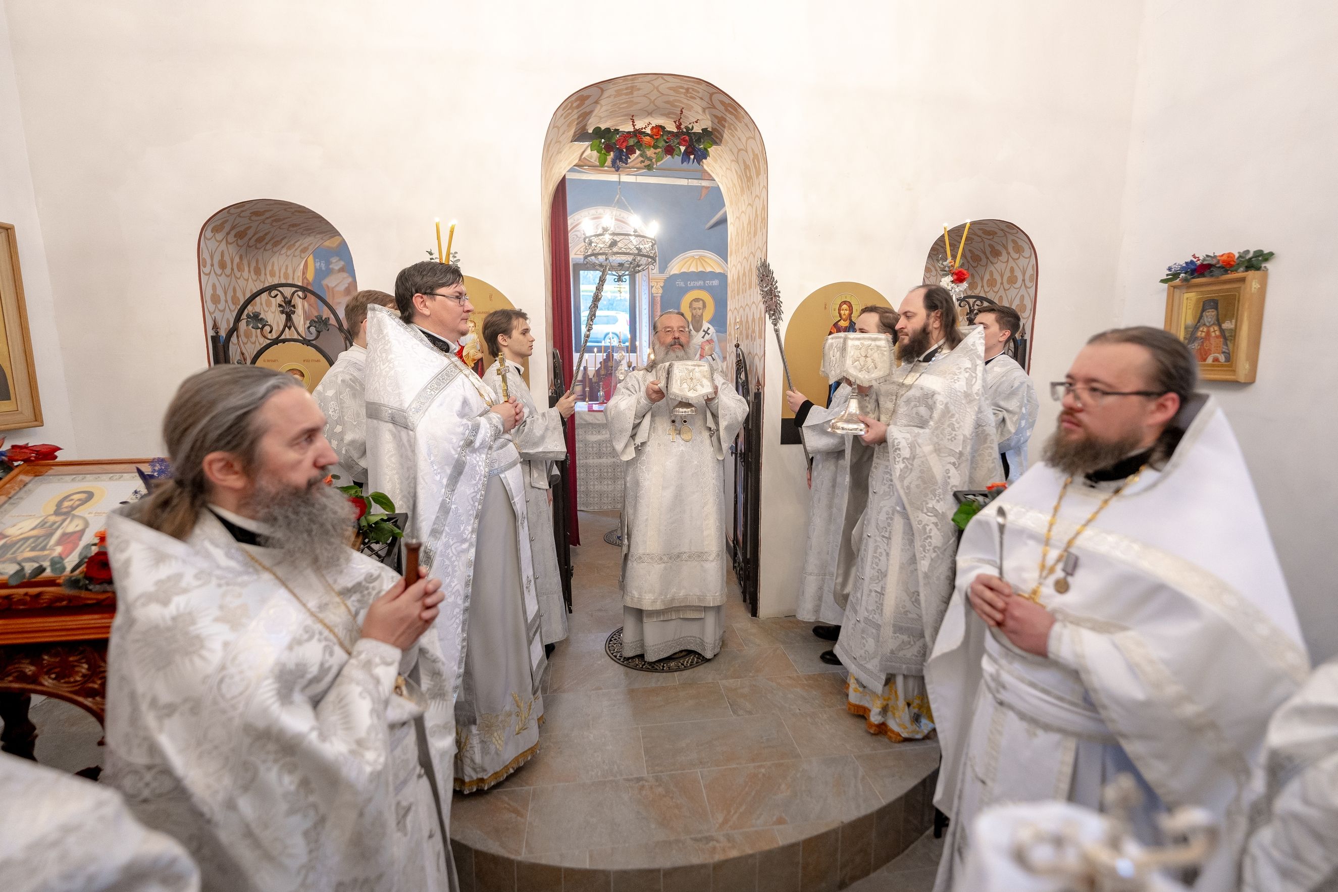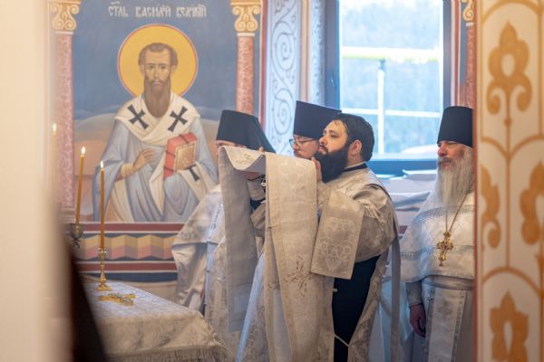 Его Высокопреосвященству сослужили секретарь Татарстанской митрополии иеромонах Кирилл (Корытко), благочинный Высокогорского церковного округа Казанской епархии иерей Алексий Обрезков, настоятель Смоленского храма иерей Александр Ермолин, наместник Свияжского Богородице-Успенского монастыря игумен Аркадий (Логинов), настоятель Воскресенского Новоиерусалимского архиерейского подворья города Казани иеромонах Роман (Модин), настоятель Иоанно-Предтеченского монастыря города Казани игумен Алексий (Яцейко).