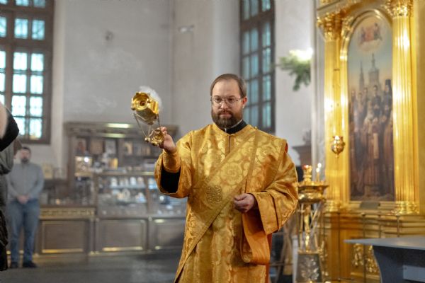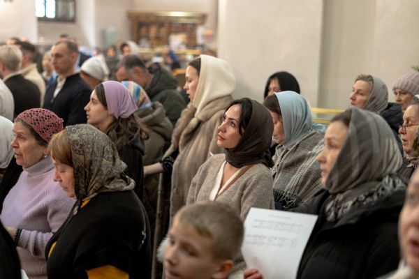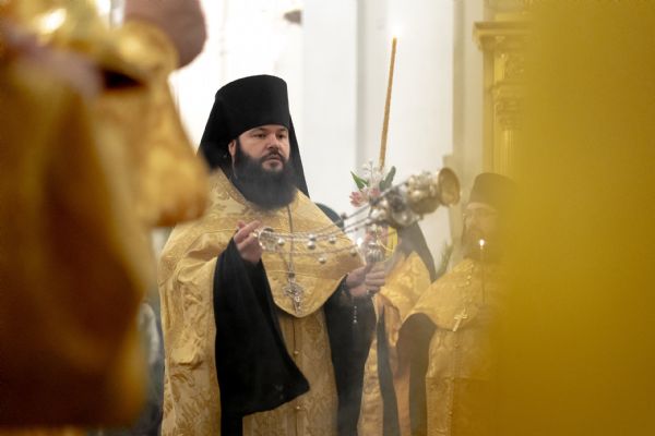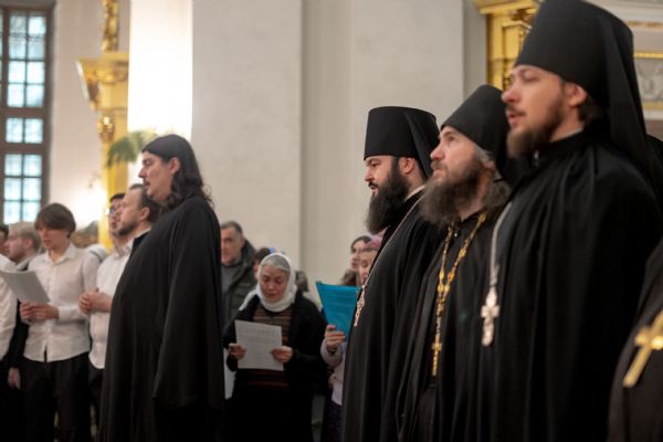 Песнопения исполнили два архиерейских хора: смешанный под управлением Марины Литвиненко и мужской под управлением Алексея Федотова.