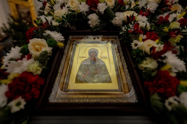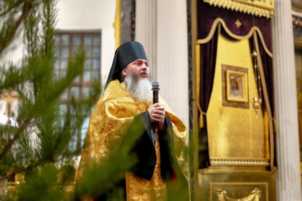 После чтения Евангелия на полиелее проповедь произнёс иеромонах Андрей (Сироткин). В завершение было совершено славление Божией Матери перед Её чтимым Казанским образом.