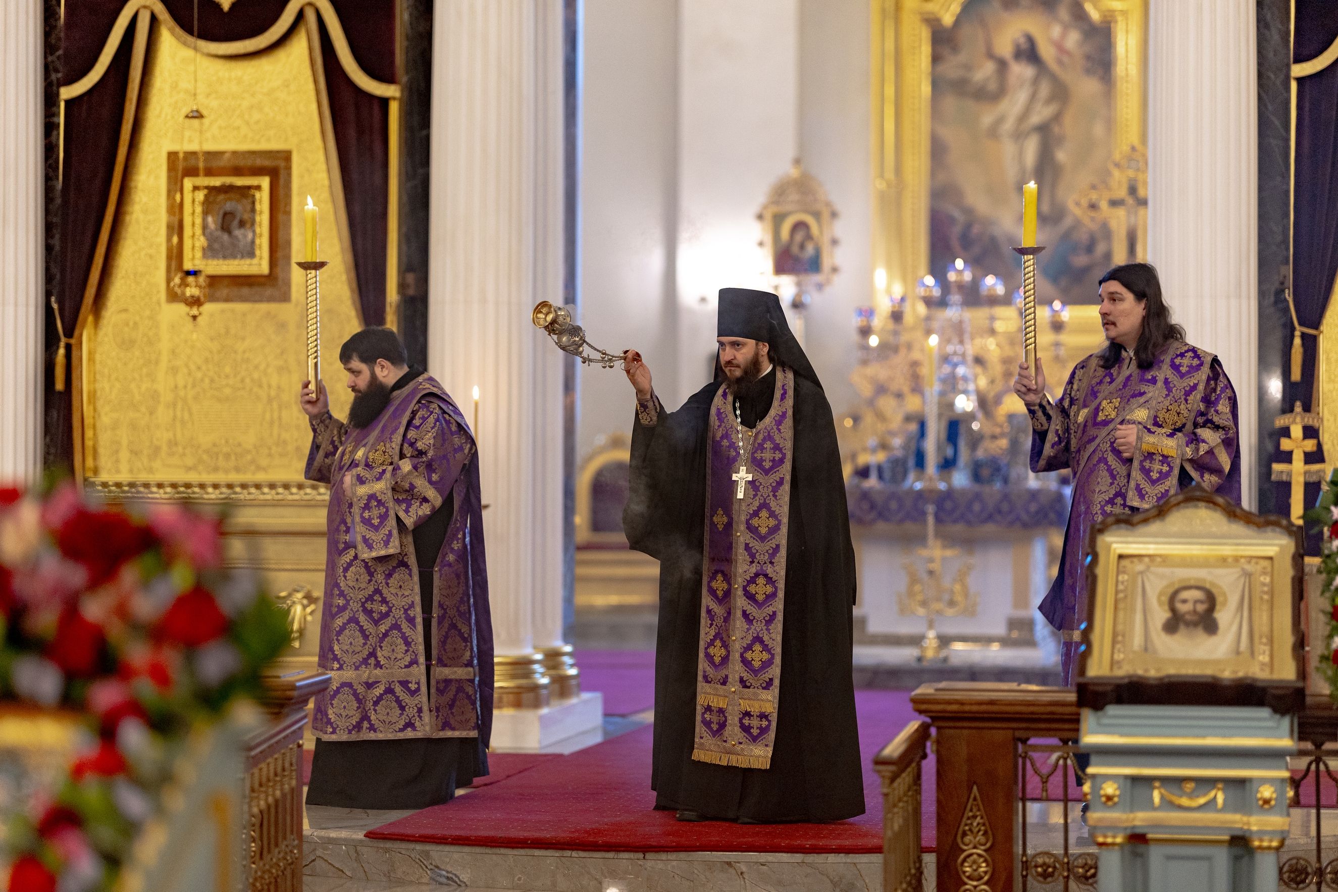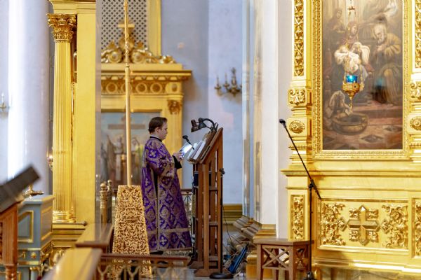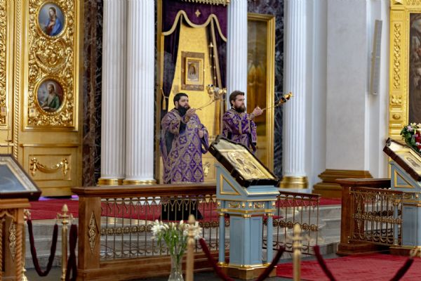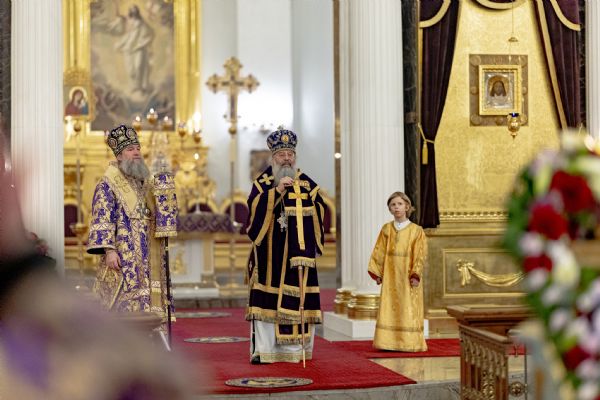 В канун Недели Крестопоклонной митрополит Кирилл и митрополит Евгений совершили всенощное бдение в Казанском кафедральном соборе