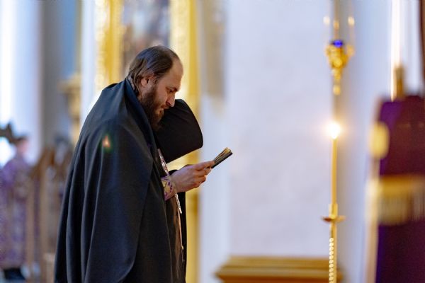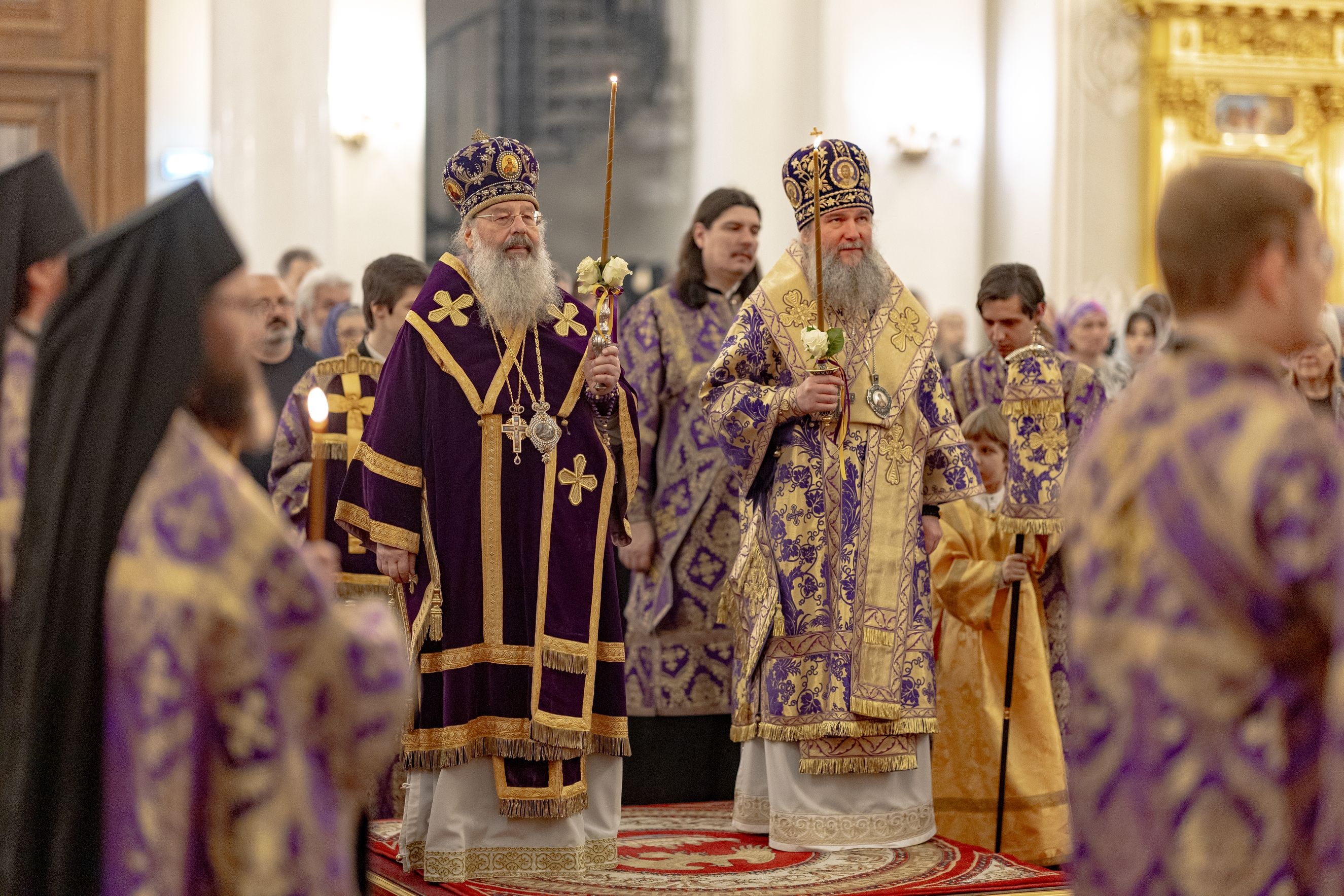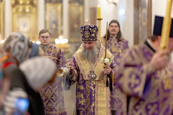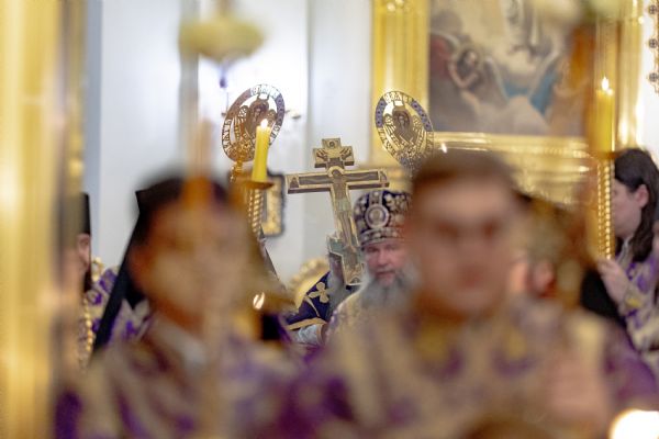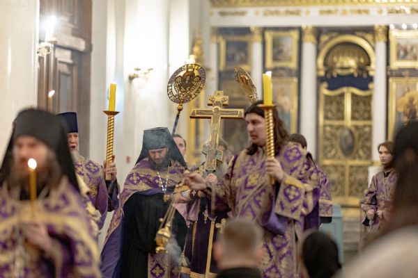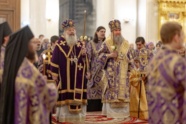 Вечером 14 марта 2026 года, в канун Недели 3-й Великого поста, Крестопоклонной, митрополит Казанский и Татарстанский Кирилл и митрополит Екатеринбургский и Верхотурский Евгений совершили всенощное бдение в кафедральном соборе Казанской иконы Божией Матери Казанского Богородицкого мужского монастыря.