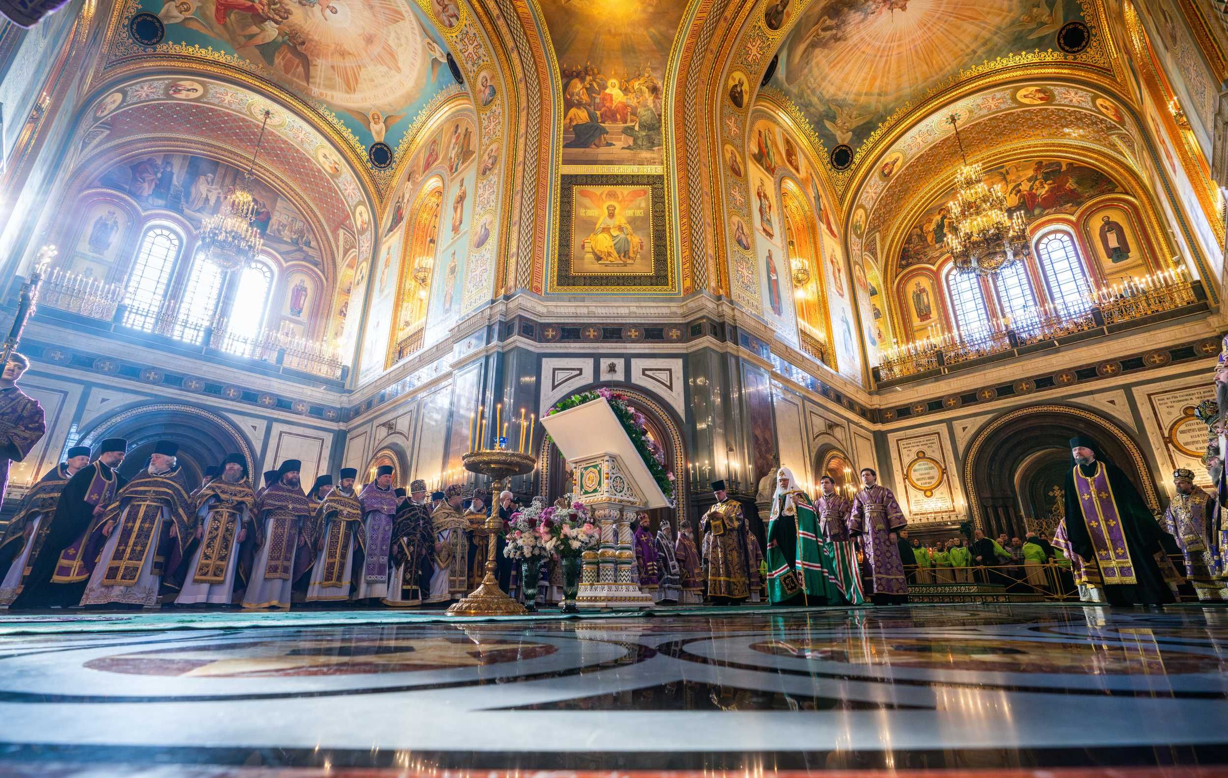 Богослужебные песнопения исполнил Патриарший хор Храма Христа Спасителя (регент — И.Б. Толкачев).