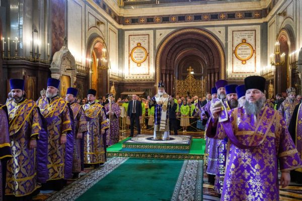 В Неделю Крестопоклонную глава Татарстанской митрополии сослужил Предстоятелю Русской Церкви за Литургией в Храме Христа Спасителя