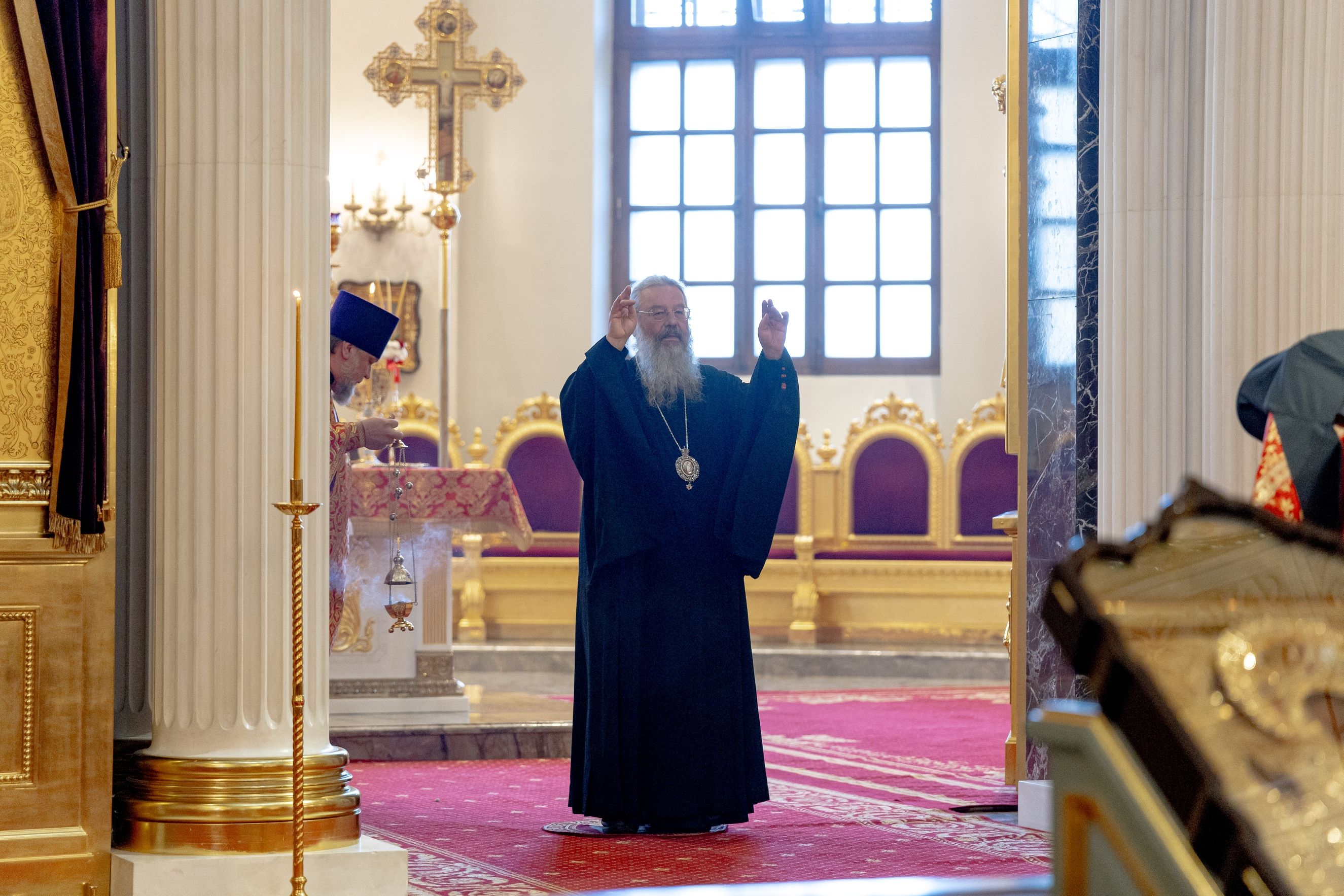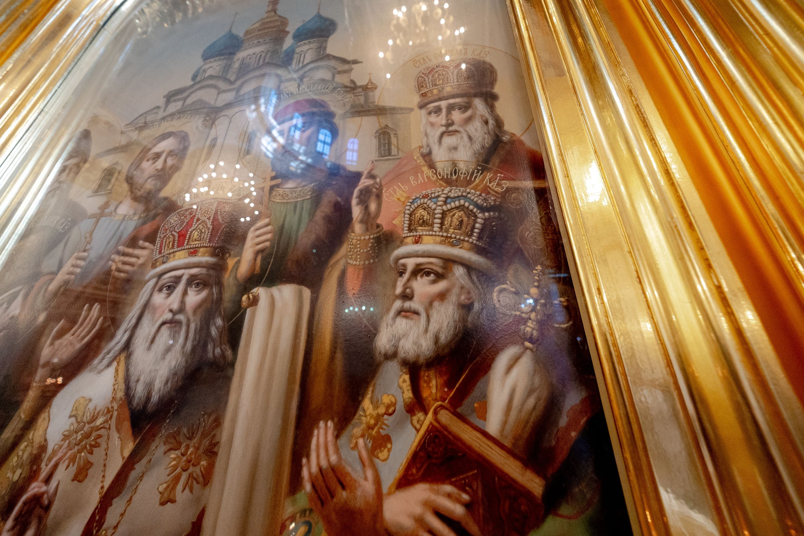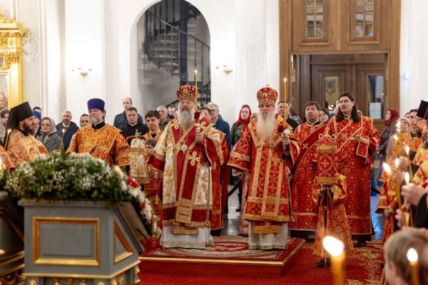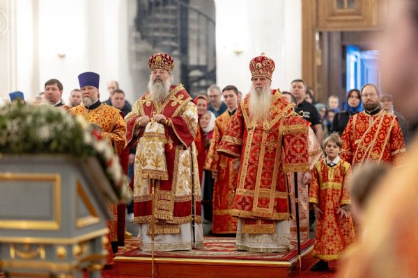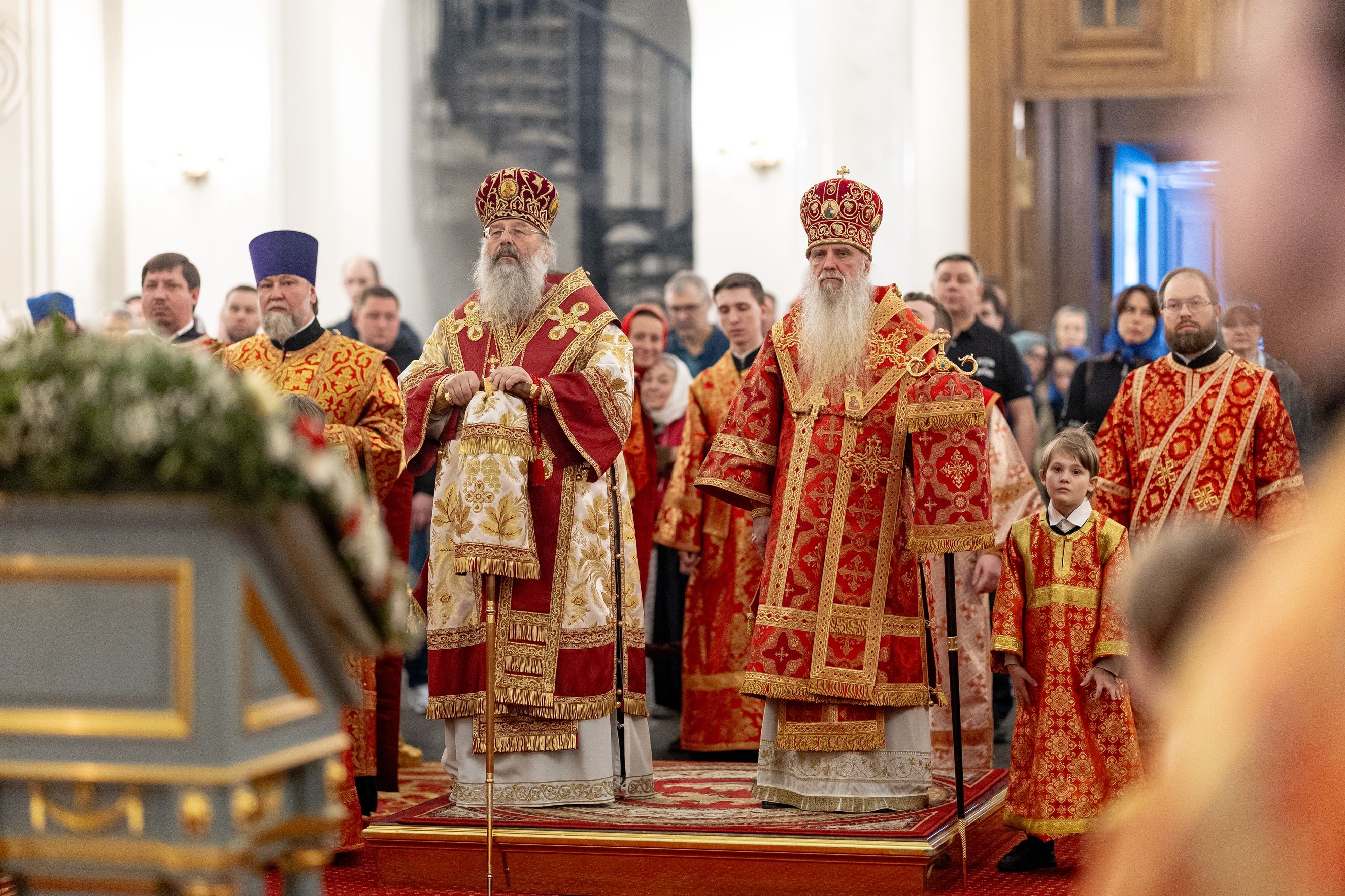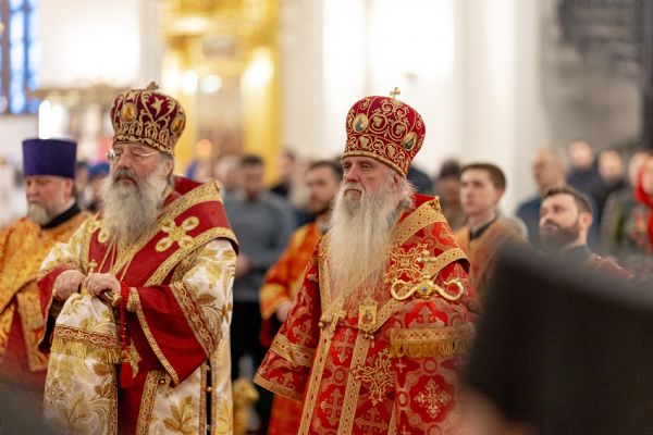 Вечером 23 апреля 2026 года, в канун дня памяти святителя Варсонофия, епископа Тверского, Казанского чудотворца, митрополит Казанский и Татарстанский Кирилл и епископ Каменский и Камышловский Мефодий совершили всенощное бдение в кафедральном соборе Казанской иконы Божией Матери Казанского Богородицкого монастыря.
