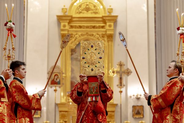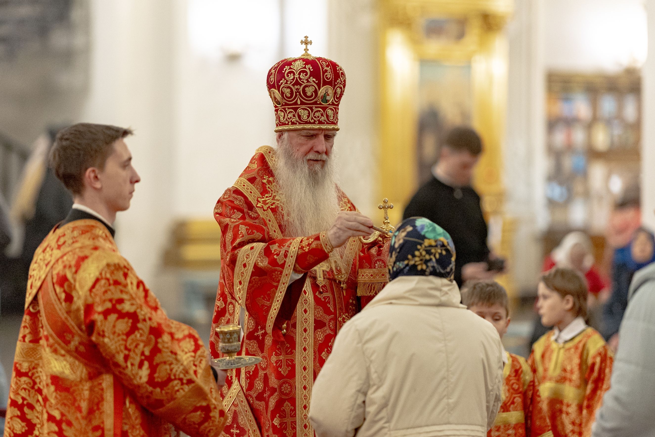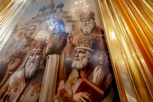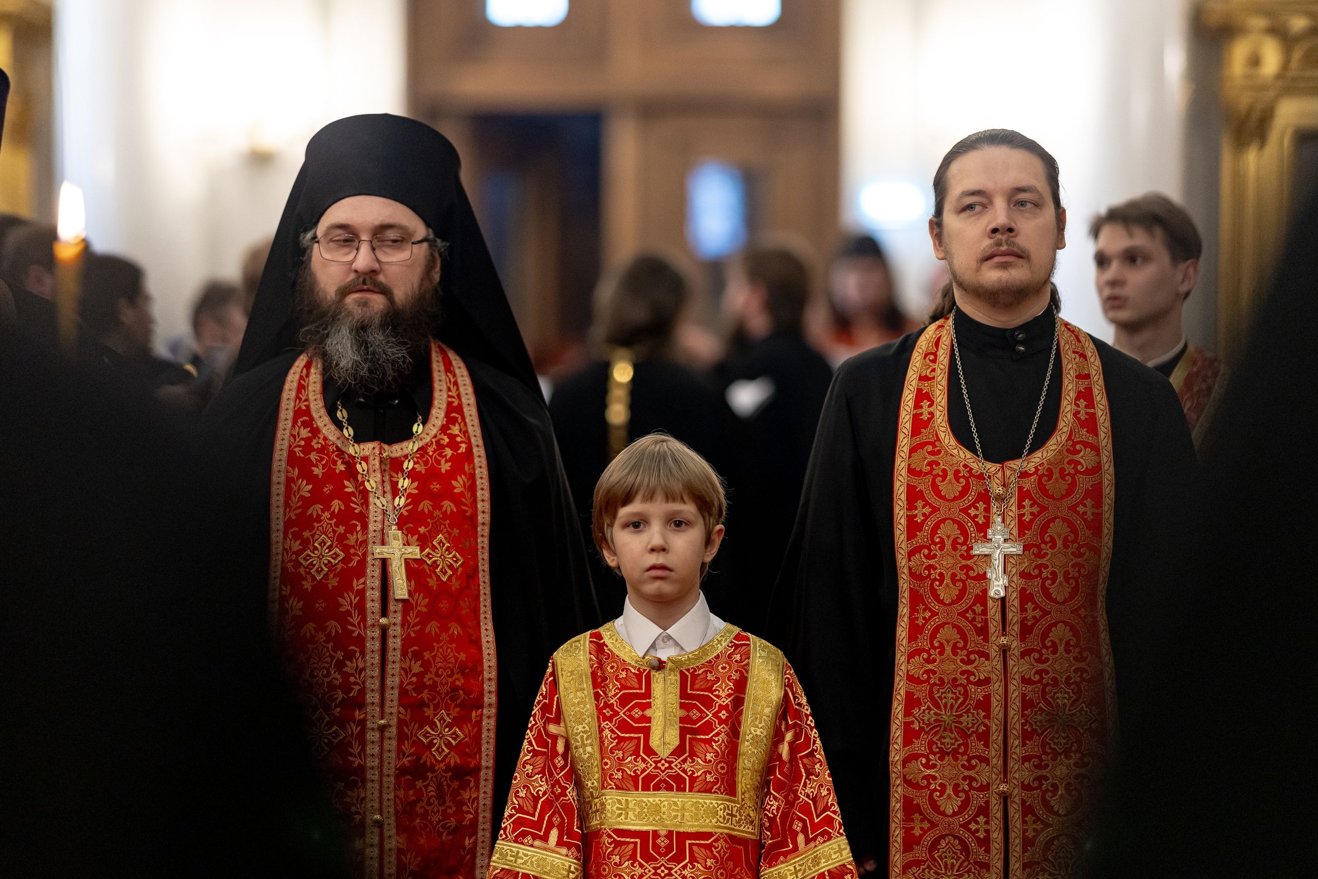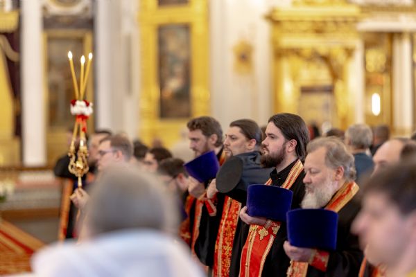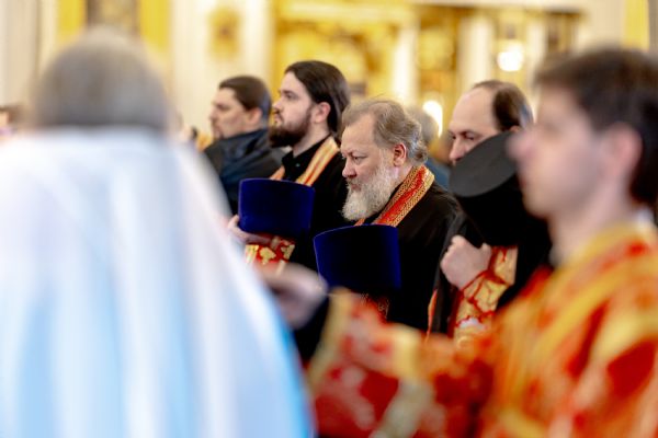 Вечером 23 апреля 2026 года, в канун дня памяти святителя Варсонофия, епископа Тверского, Казанского чудотворца, митрополит Казанский и Татарстанский Кирилл и епископ Каменский и Камышловский Мефодий совершили всенощное бдение в кафедральном соборе Казанской иконы Божией Матери Казанского Богородицкого монастыря.
