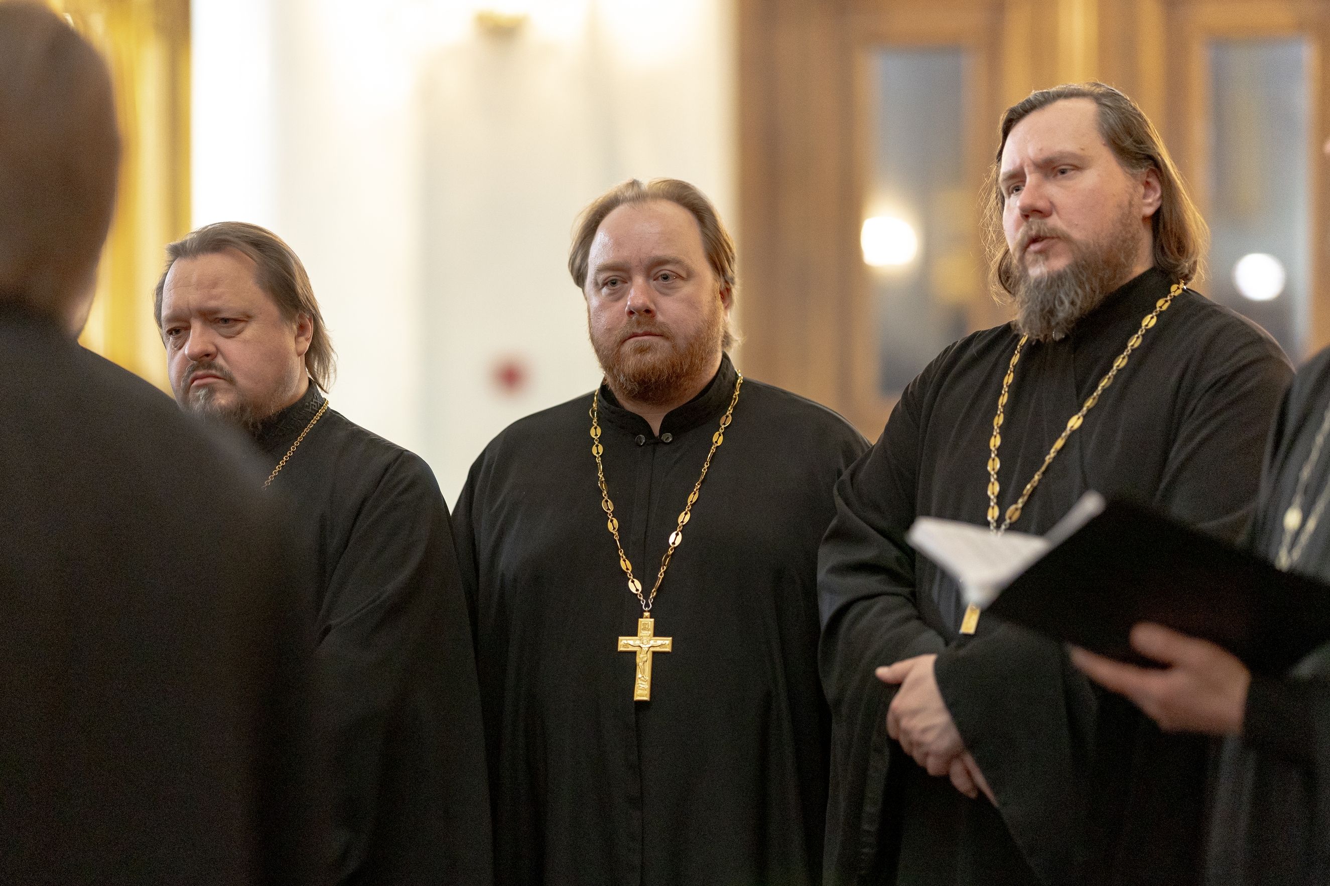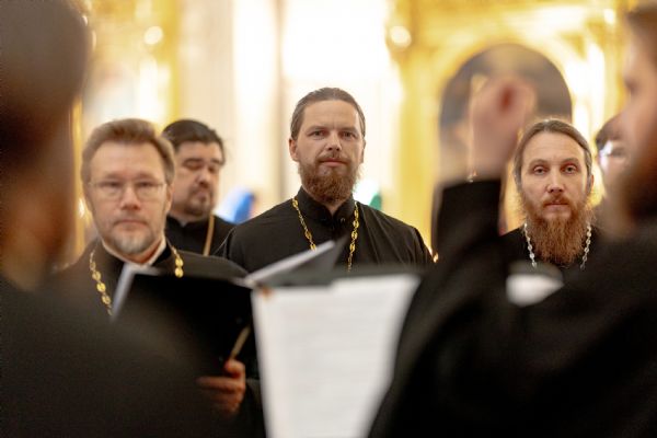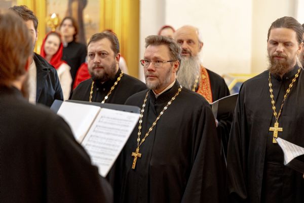Песнопения исполнили хор духовенства Казанской епархии под управлением диакона Максима Иванчука и архиерейский мужской хор под управлением Дениса Рогова.