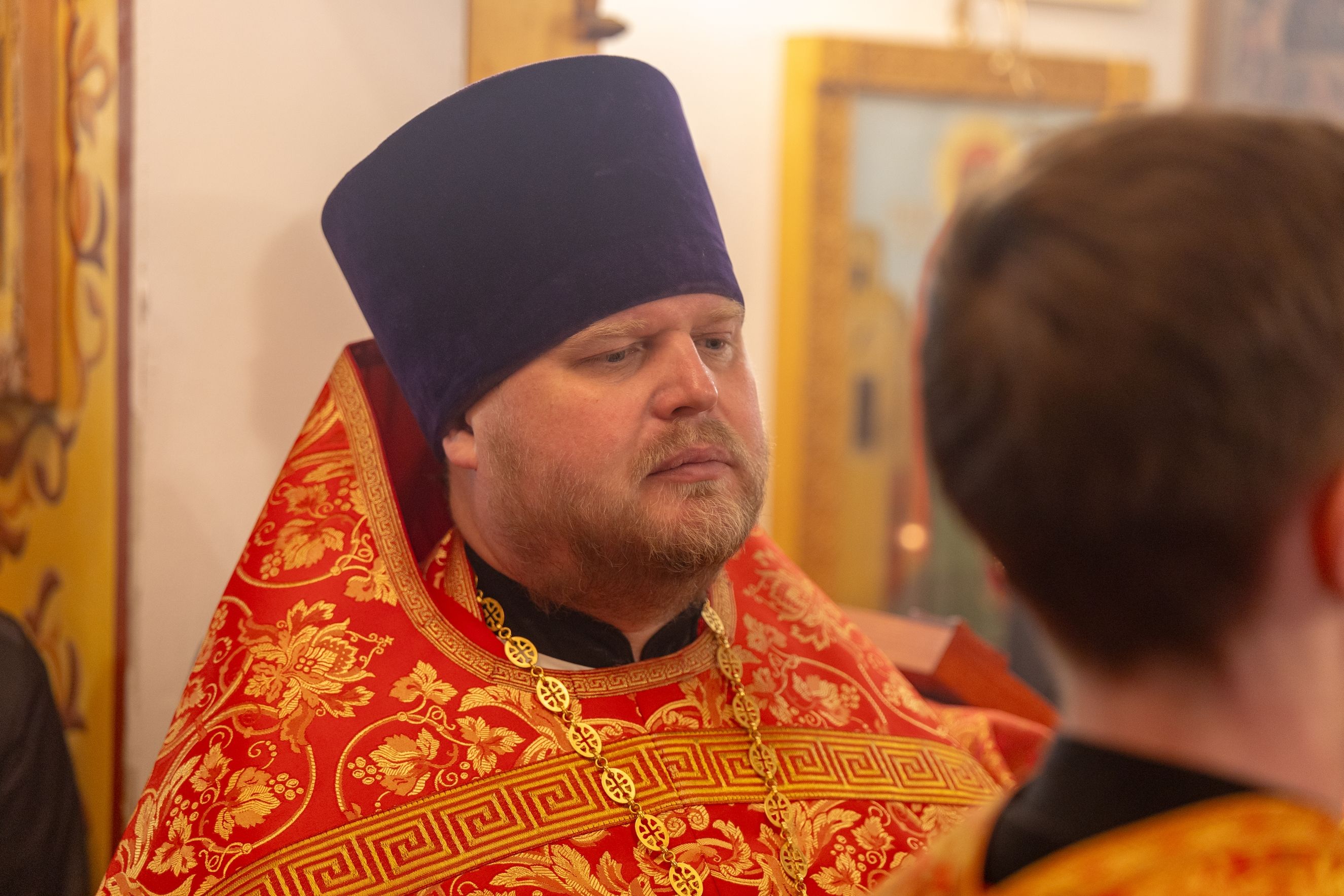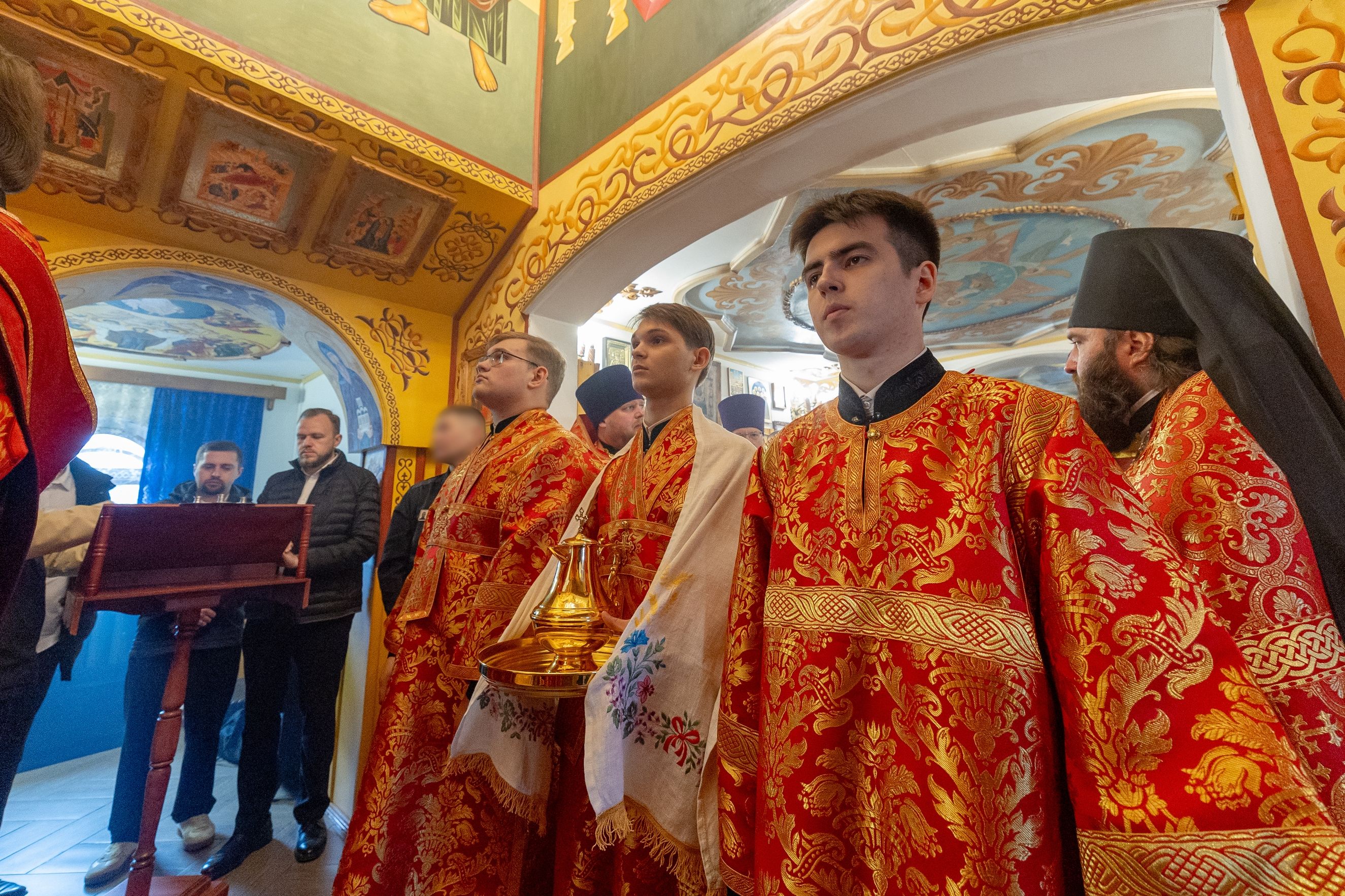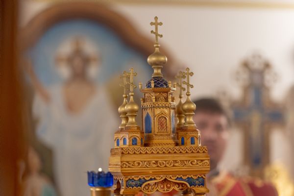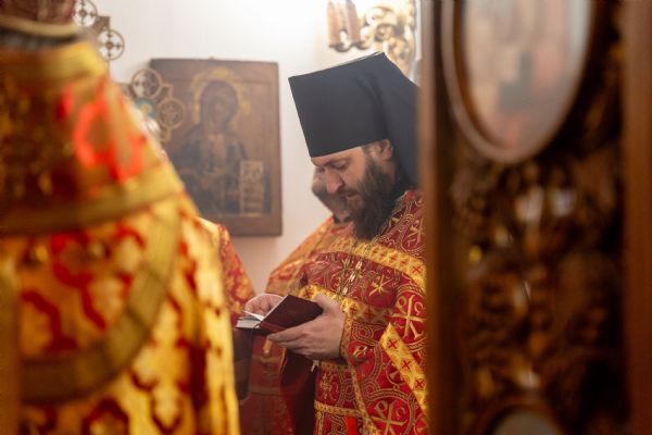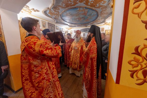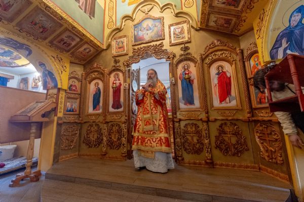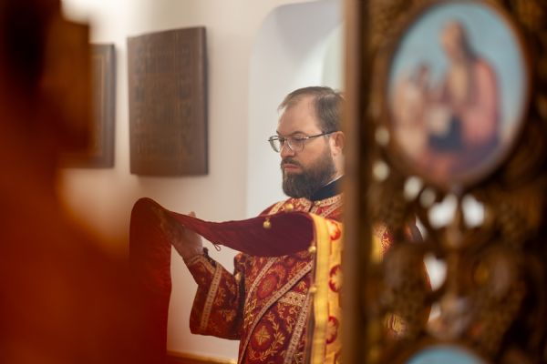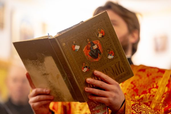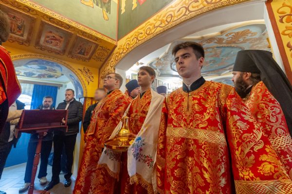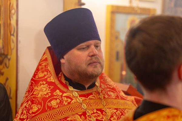 На мирной и сугубой ектениях были вознесены молитвы о Российском воинстве и о мире. По запричастном стихе проповедь произнёс иерей Евгений Гаврилкин.