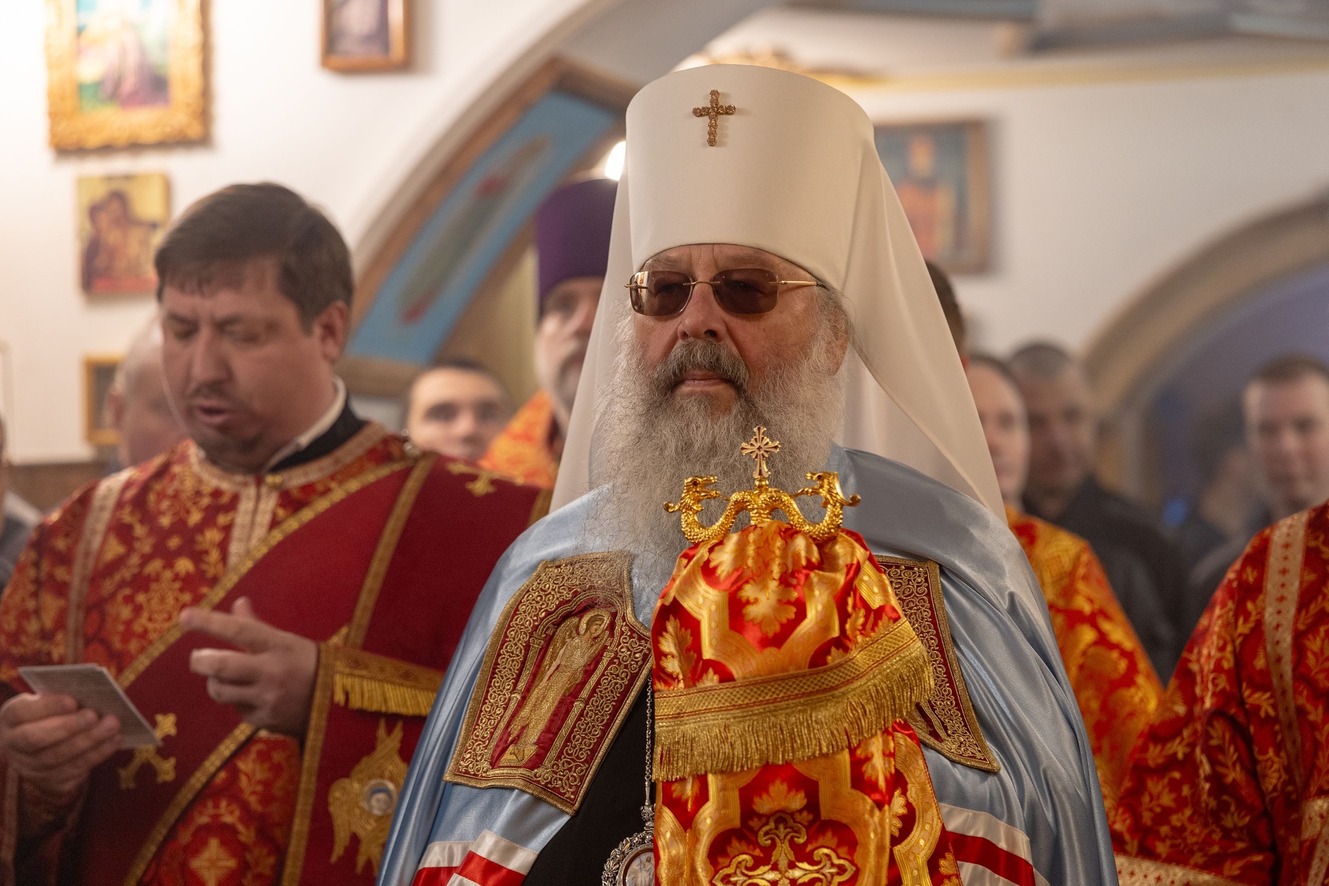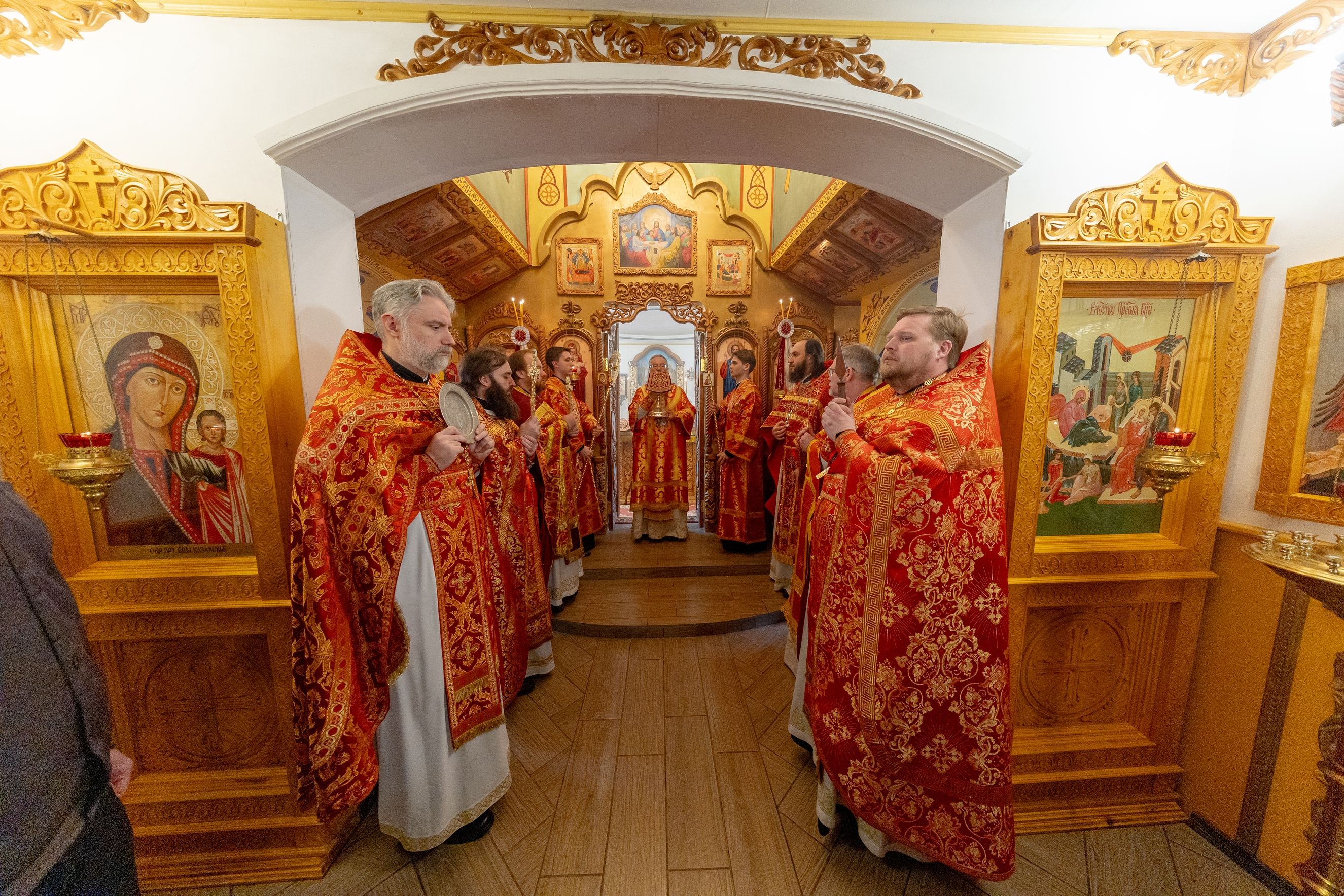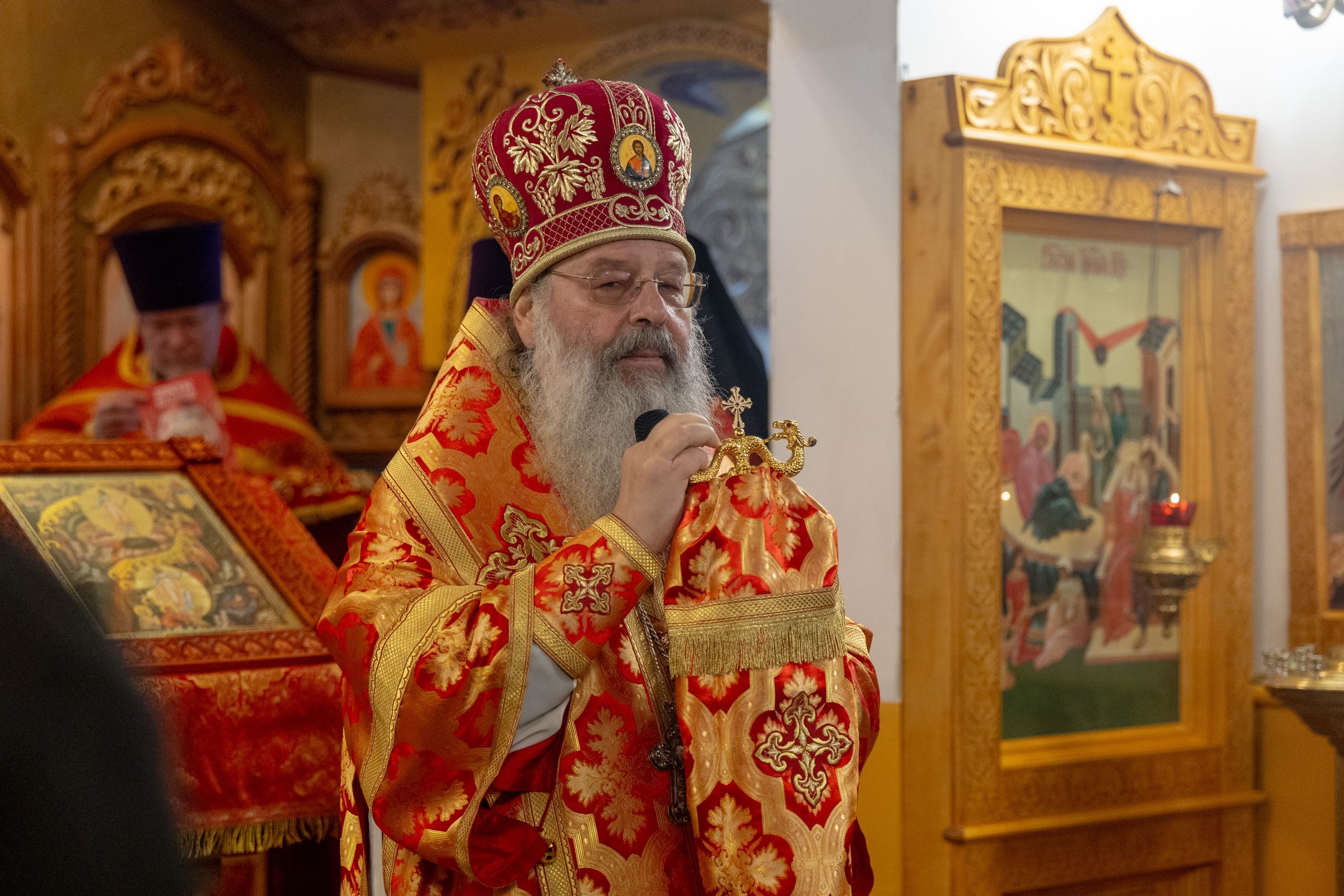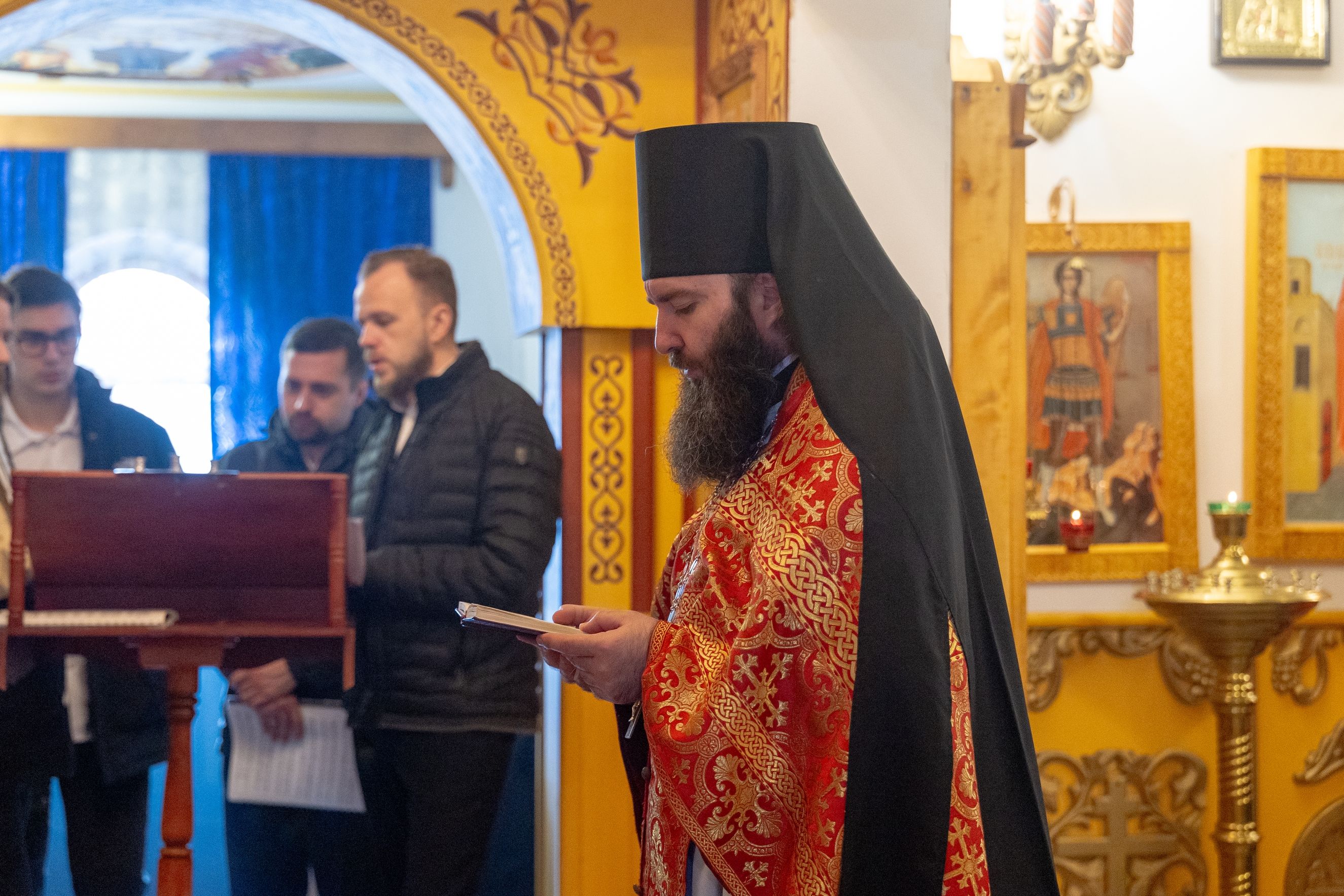 На мирной и сугубой ектениях были вознесены молитвы о Российском воинстве и о мире. По запричастном стихе проповедь произнёс иерей Евгений Гаврилкин.