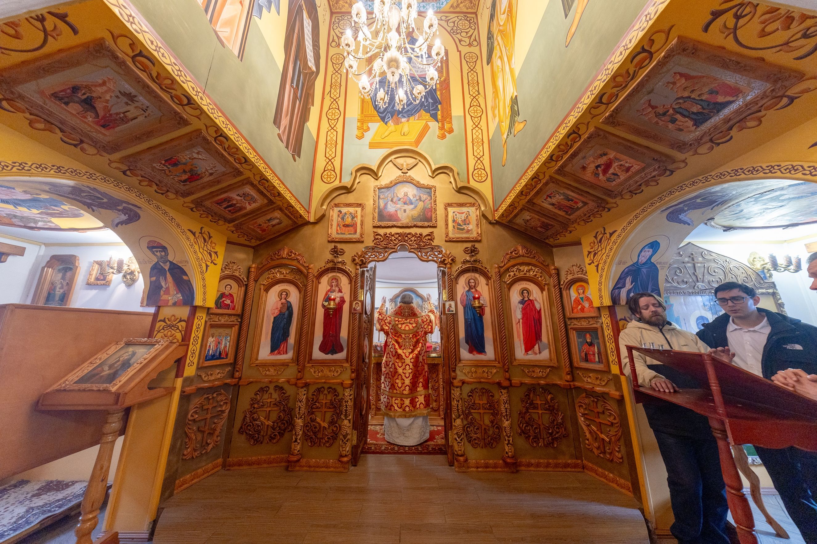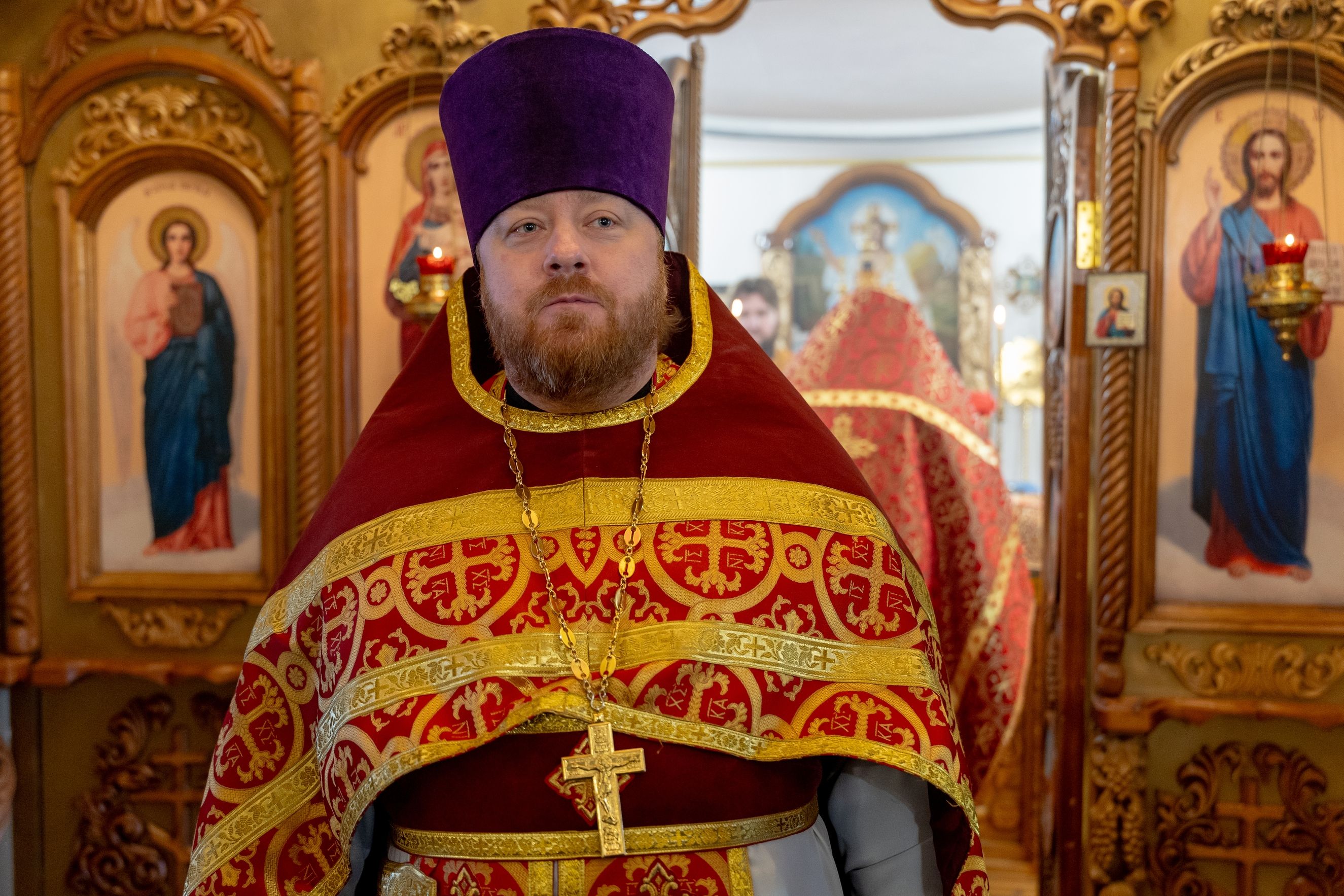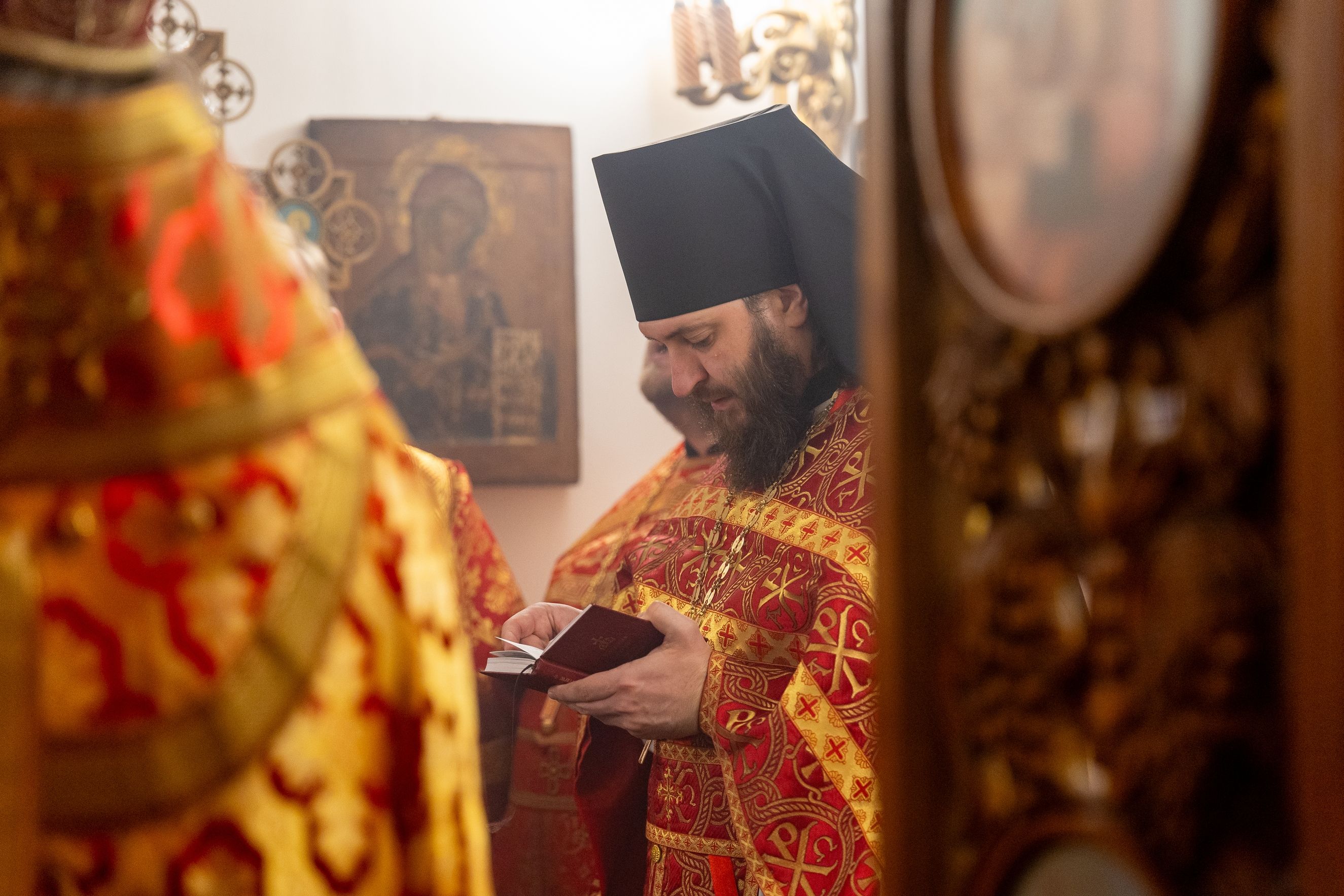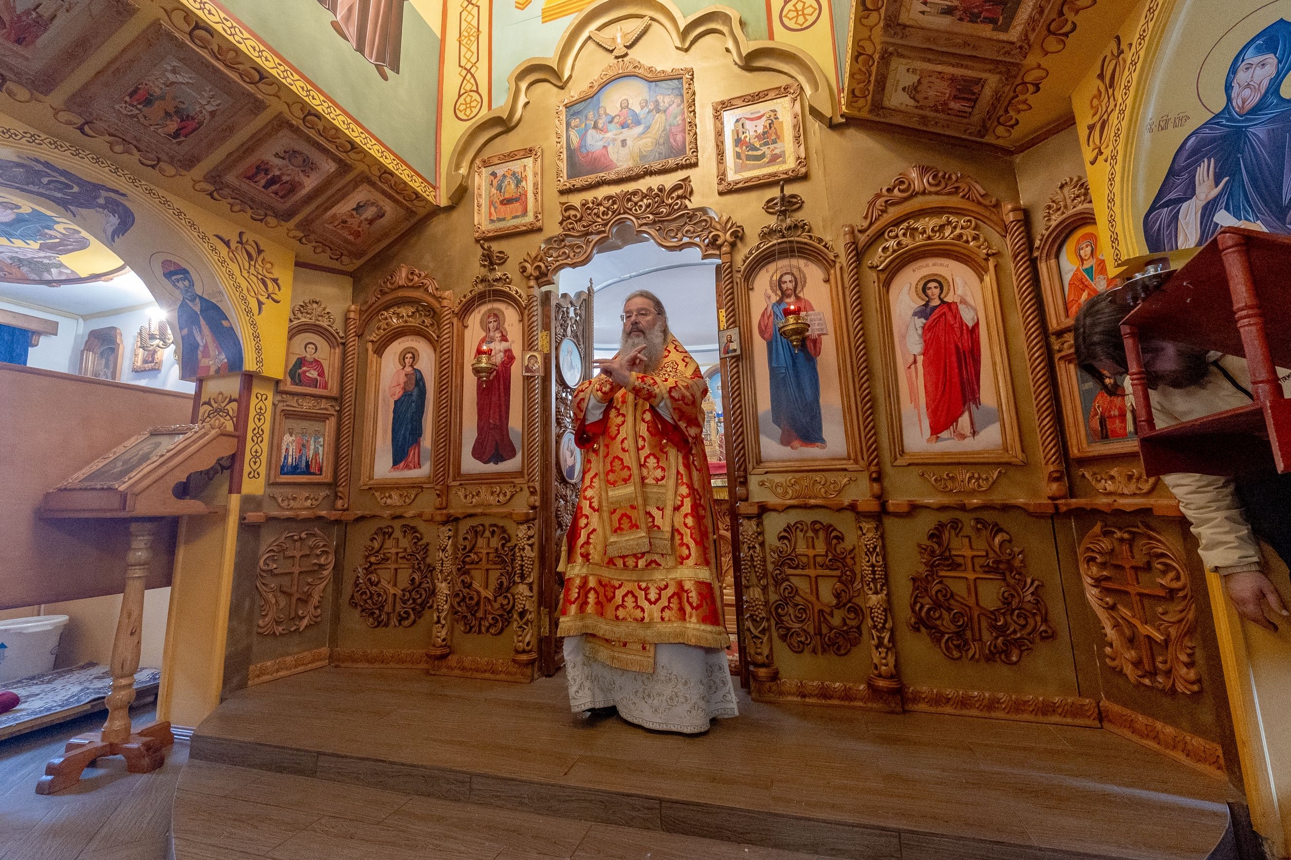 На мирной и сугубой ектениях были вознесены молитвы о Российском воинстве и о мире. По запричастном стихе проповедь произнёс иерей Евгений Гаврилкин.