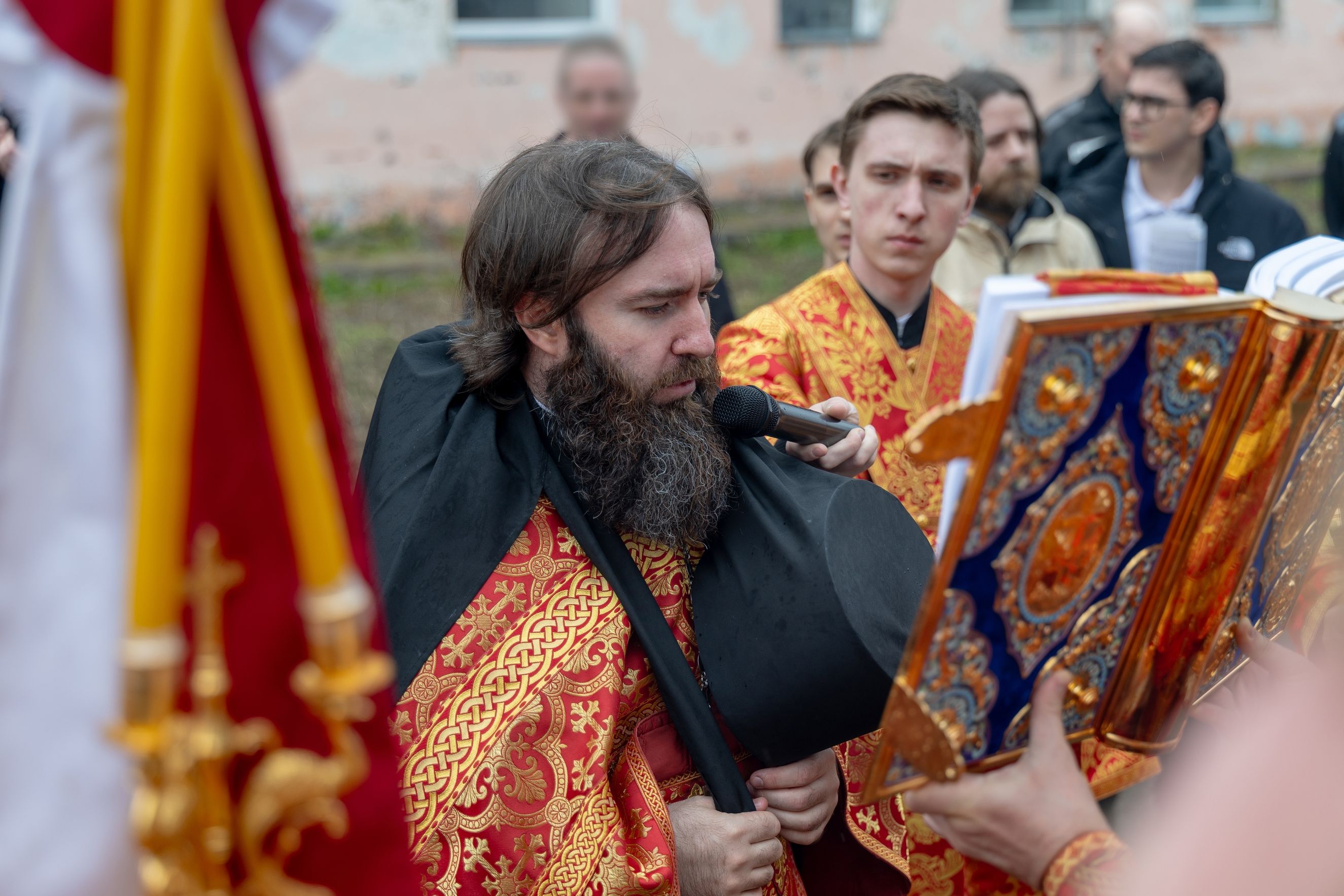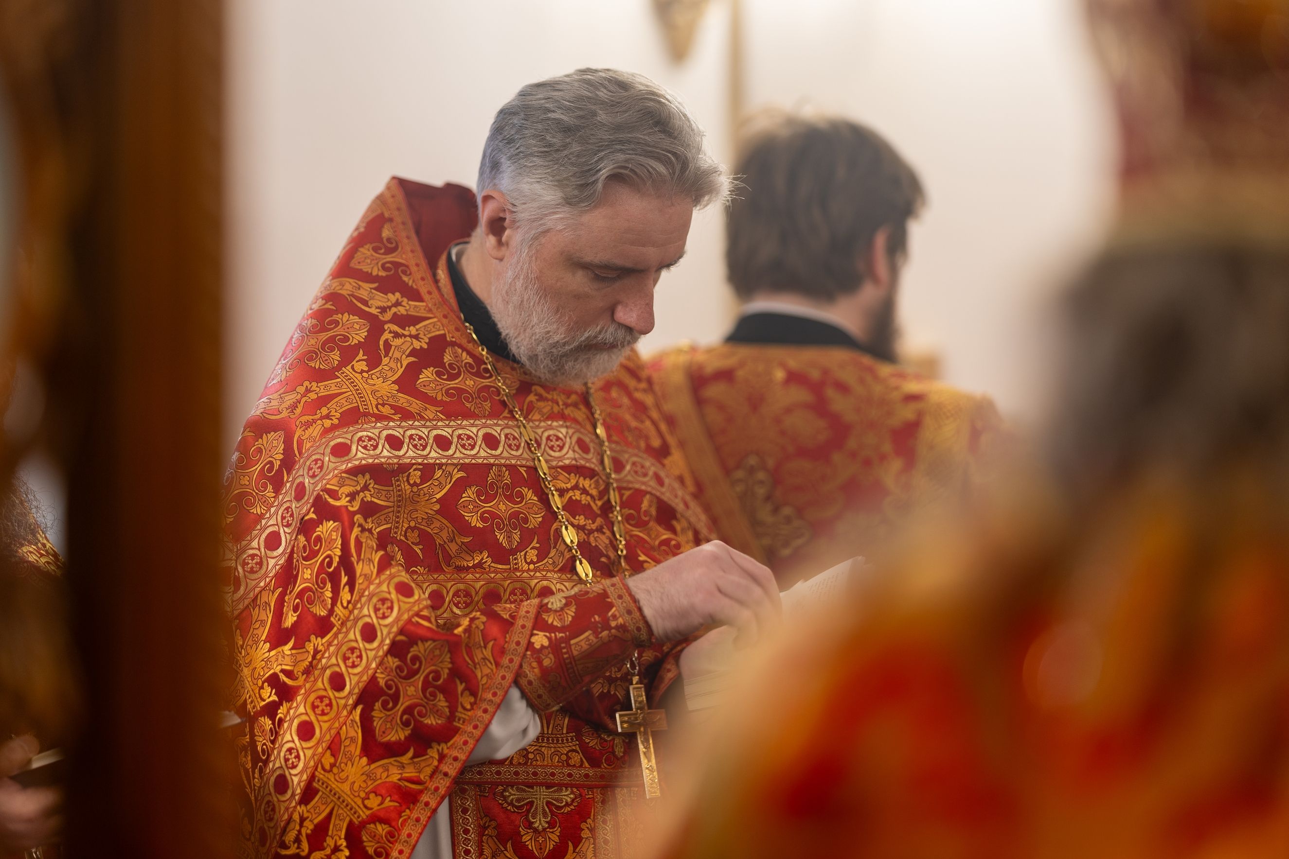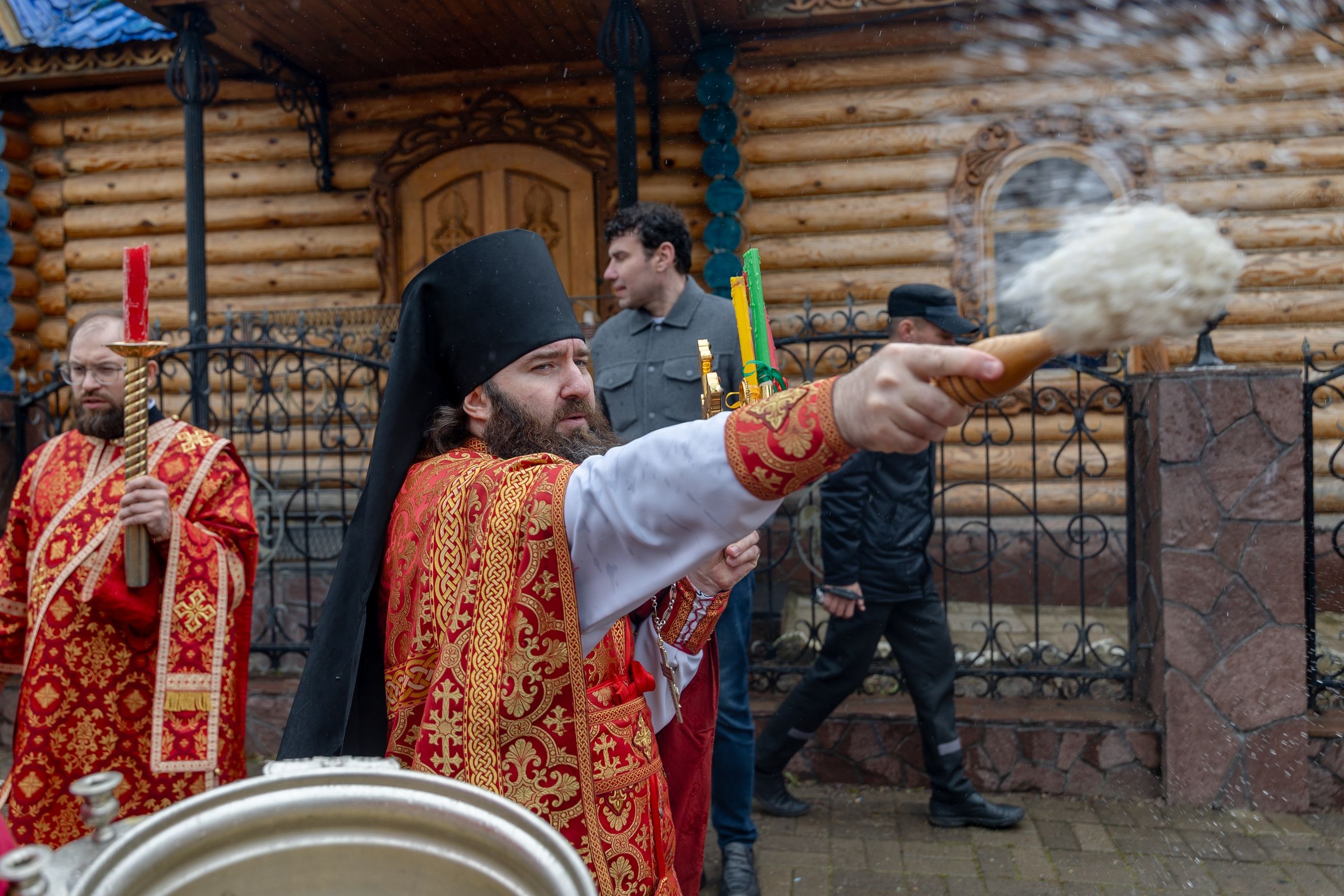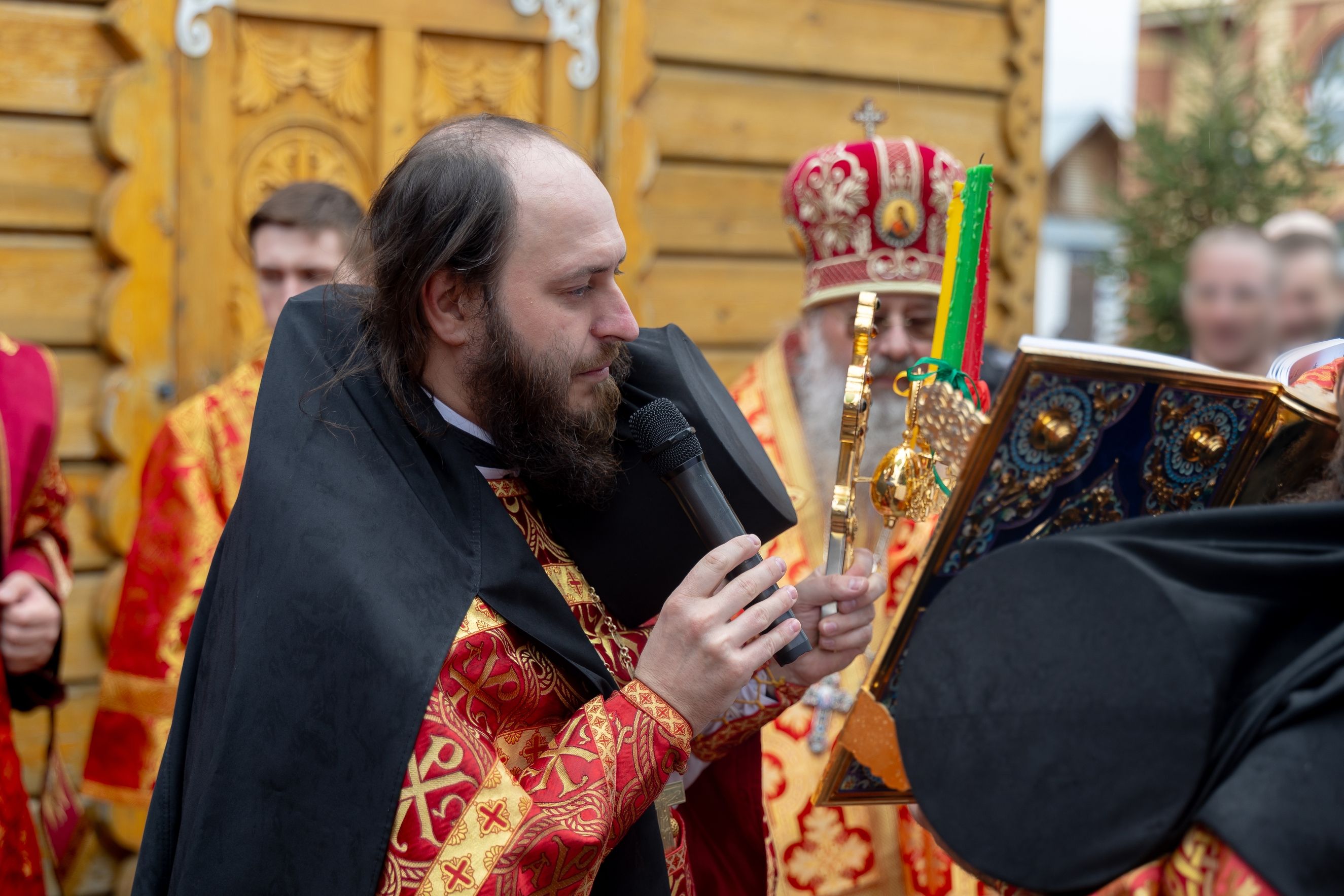 На мирной и сугубой ектениях были вознесены молитвы о Российском воинстве и о мире. По запричастном стихе проповедь произнёс иерей Евгений Гаврилкин.