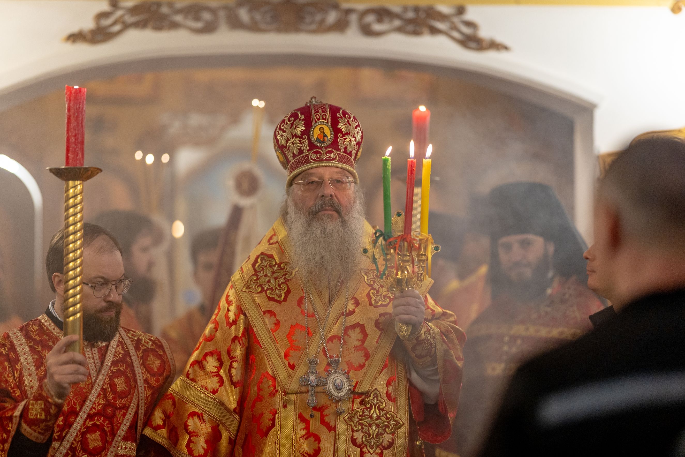 Песнопения исполнил архиерейский мужской хор под управлением Дениса Рогова.