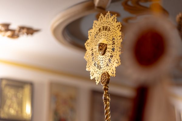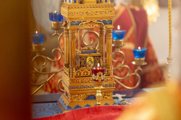 Также за богослужением мы слышали Евангельский отрывок о том, как чудесным образом Господь пятью хлебами насытил пять тысяч мужчин, а также женщин и детей, которые пришли услышать Слово Божие (Ин. 6:14-27). Но Спаситель, узнав, что люди захотели сделать Его царём, исчез из их вида, удалившись на гору. Вечером того дня апостолы отправились в сторону места, где они жили — на другой берег Тивериадского озера. Когда они были в лодке, началась буря. И вдруг они увидели своего Учителя, Который шёл к ним по водам. Ученики были напуганы. Спаситель сказал им: «Это Я, не бойтесь», и лодка тут же пристала к берегу, хотя до него было еще далеко.