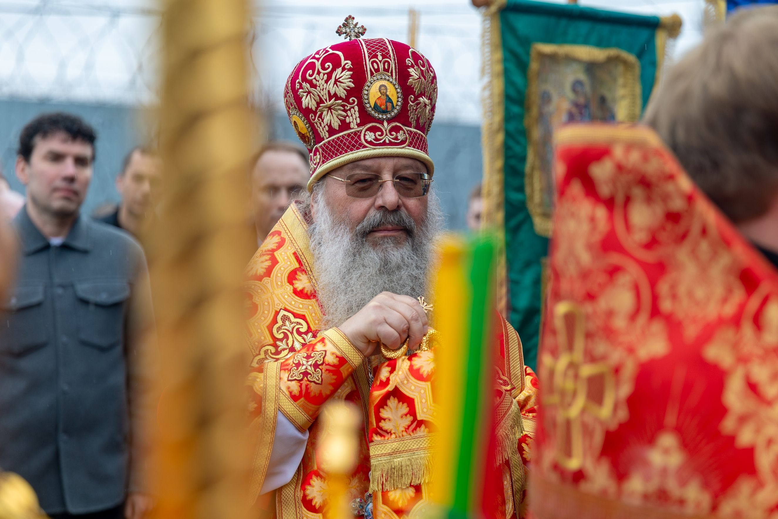Его Высокопреосвященству сослужили секретарь Татарстанской митрополии иеромонах Кирилл (Корытко), руководитель отдела по тюремному служению Казанской епархии иерей Евгений Гаврилкин, духовенство Казанской епархии.