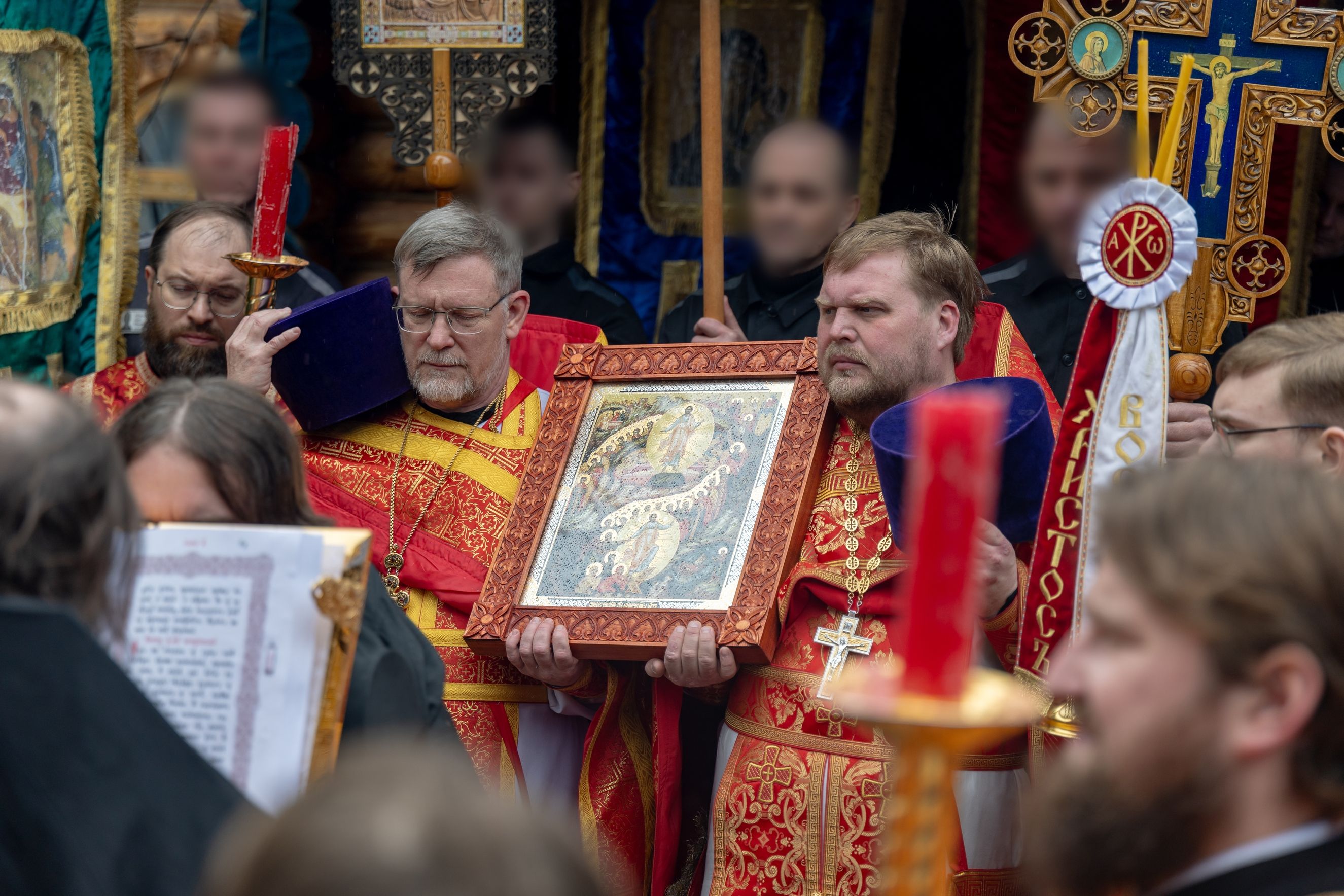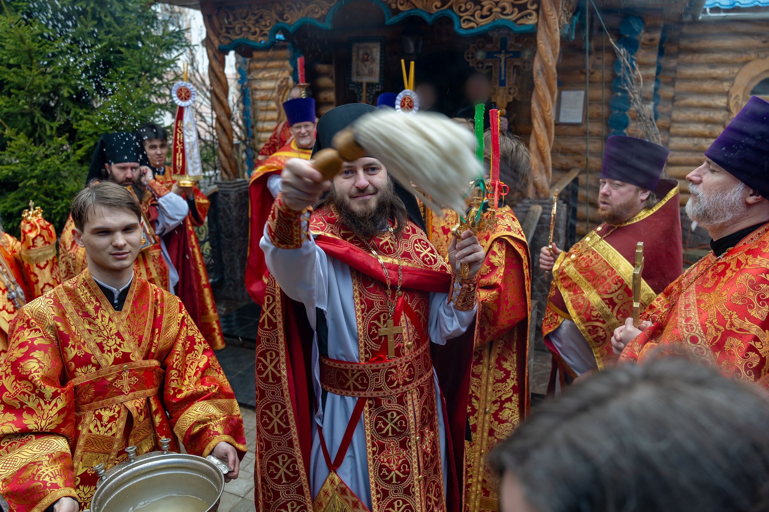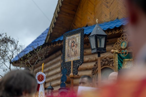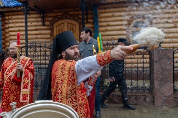 В завершение был совершен крестный ход вокруг храма. Духовенство, хоровой коллектив и верующие пропели тропари Святой Пасхи.
