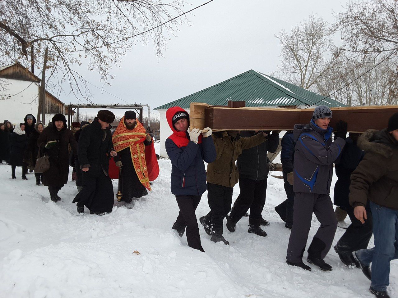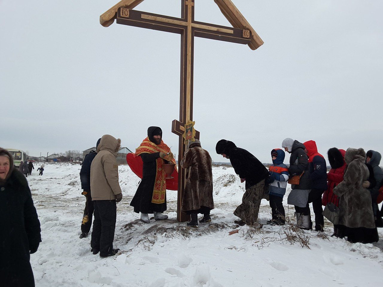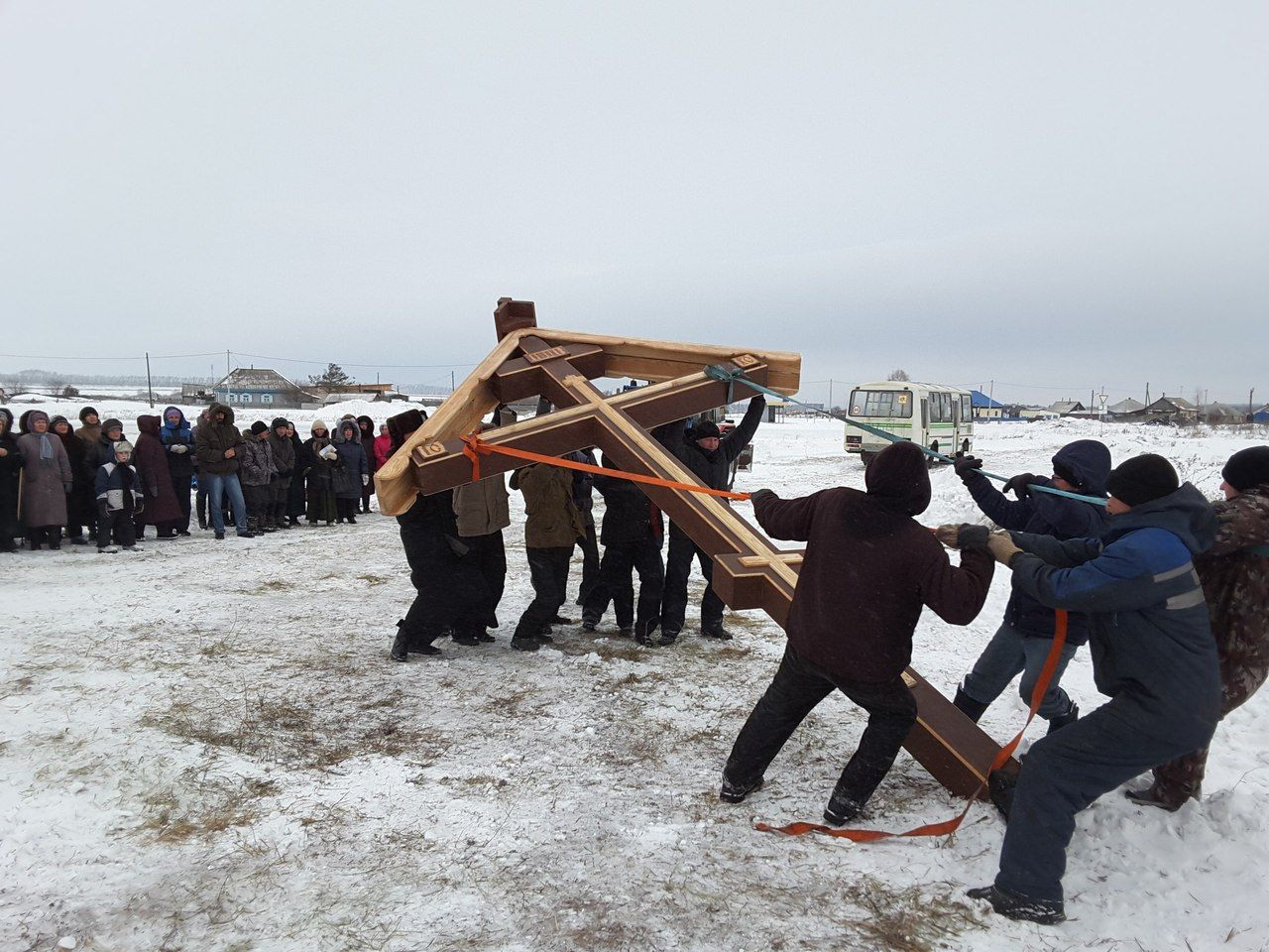 Воздвижению креста предшествовали водосвятный молебен и крестный ход по улице. На освящении присутствовали жители села, которые являются инициаторами установки, а также участники православного молодёжного клуба «Сретение», действующего при храме Воздвижения Креста Господня города Белово.