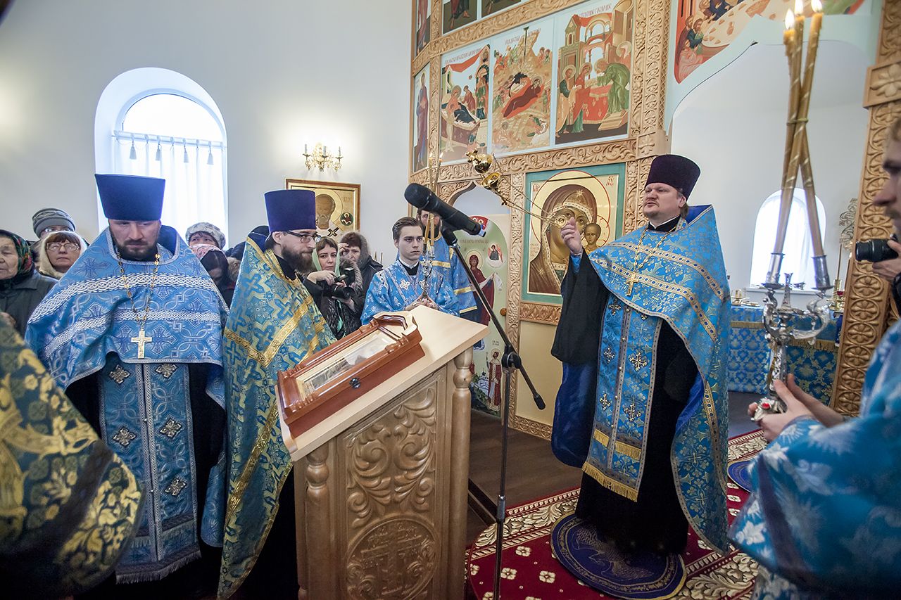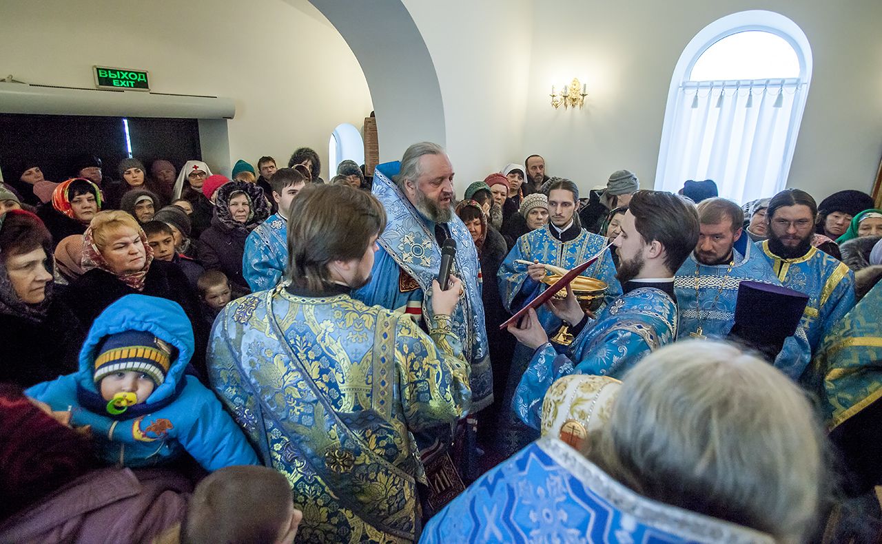 Перед началом освящения владыка обратился к духовенству и прихожанам с напутственным словом, в котором отметил, что видит особое действие Промысла Божия в том, что храм, построенный в честь Введения во храм Божией Матери, освящается именно в тот день, когда Святая Церковь отмечает событие.