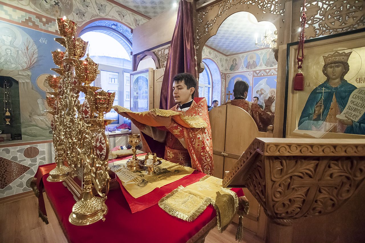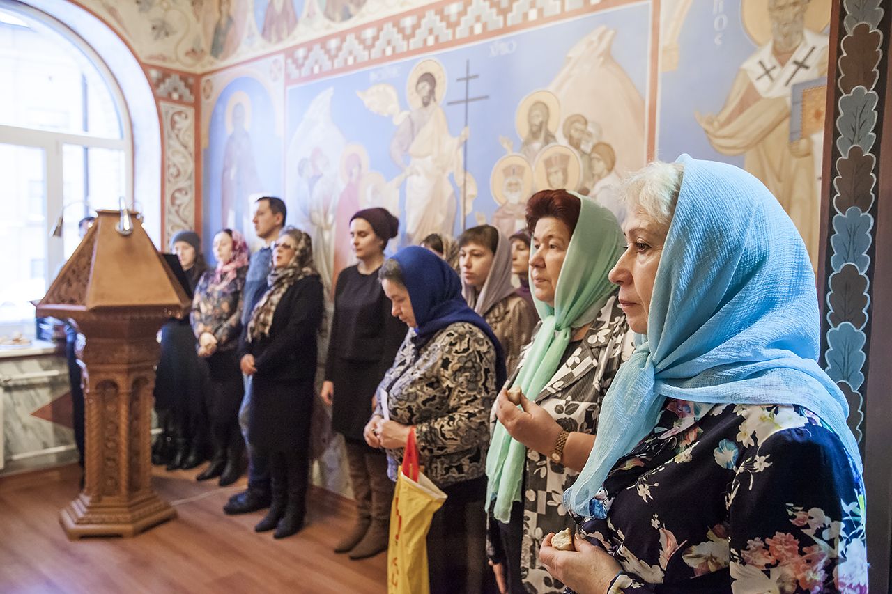 После сугубой ектинии собравшиеся в храме вознесли молитву о страждущем братском народе — отец Георгий прочел молитву о мире на Украине.