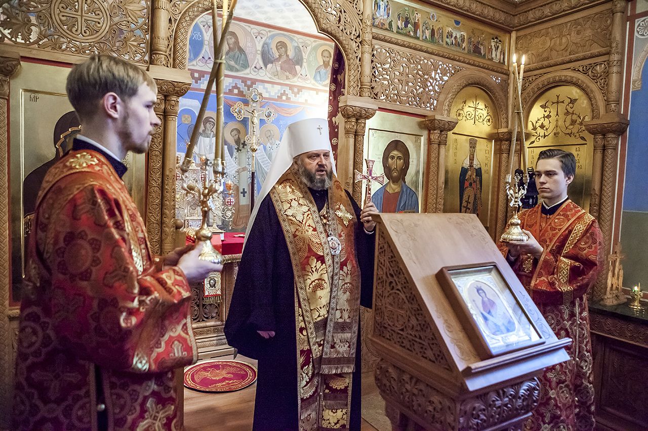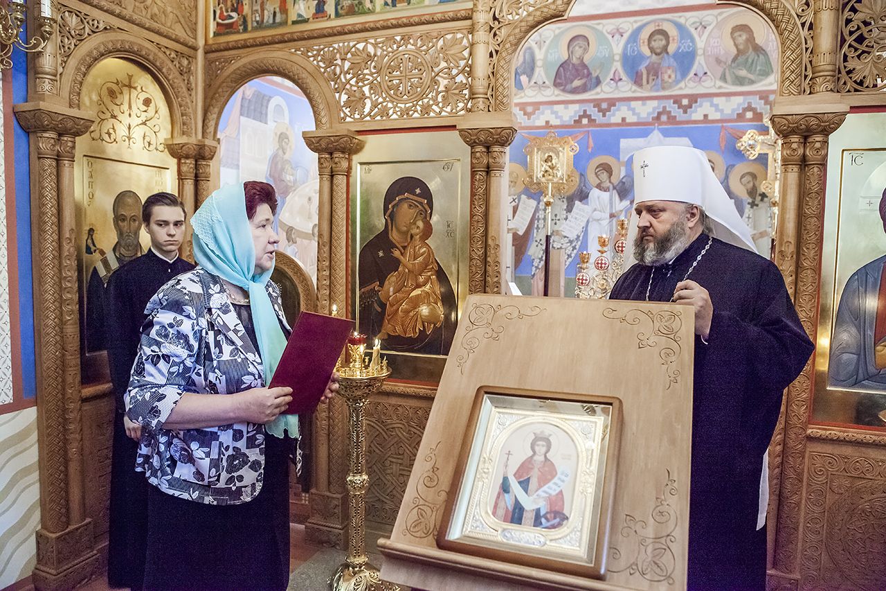 По окончании Литургии прибыл митрополит Аристарх, который возглавил молебен святой великомученице. К богослужению также присоединились благочинный церквей I Кемеровского округа протоиерей Александр Гусаков и клирик Знаменского кафдерльного собора диакон Аркадий Тишкин.