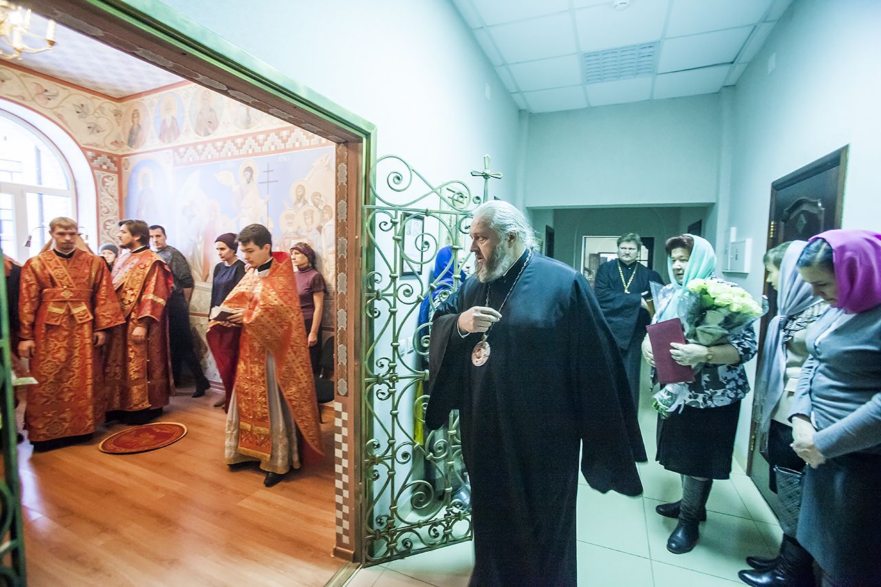 По окончании слов владыка преподал всем молившимся на богослужении архипастырское благословение и еще раз поздравил сотрудников епархиального управления с престольным днем домового храма.