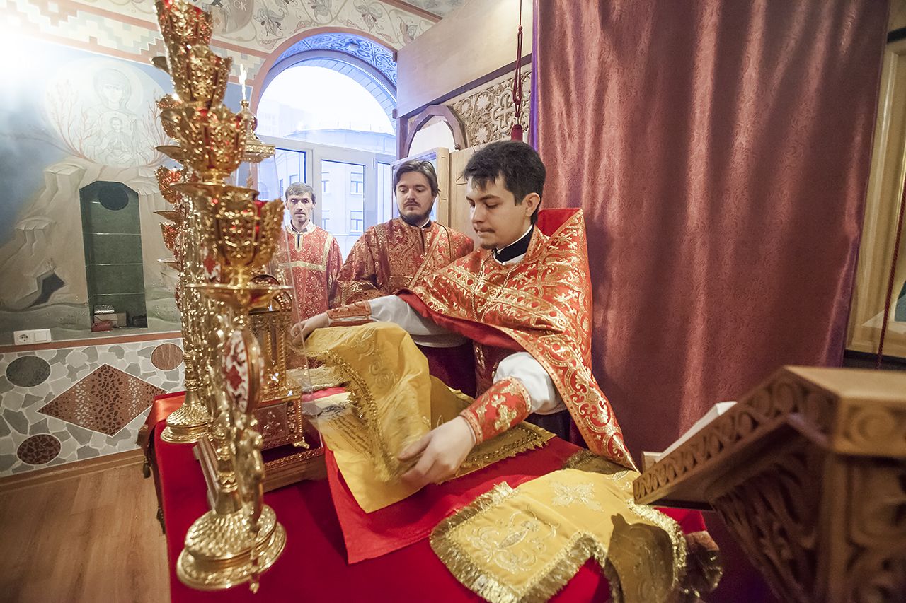 Богослужение сопровождалось пением будничного хора Знаменского кафедрального собора города Кемерово под управлением Натальи Яковенко.