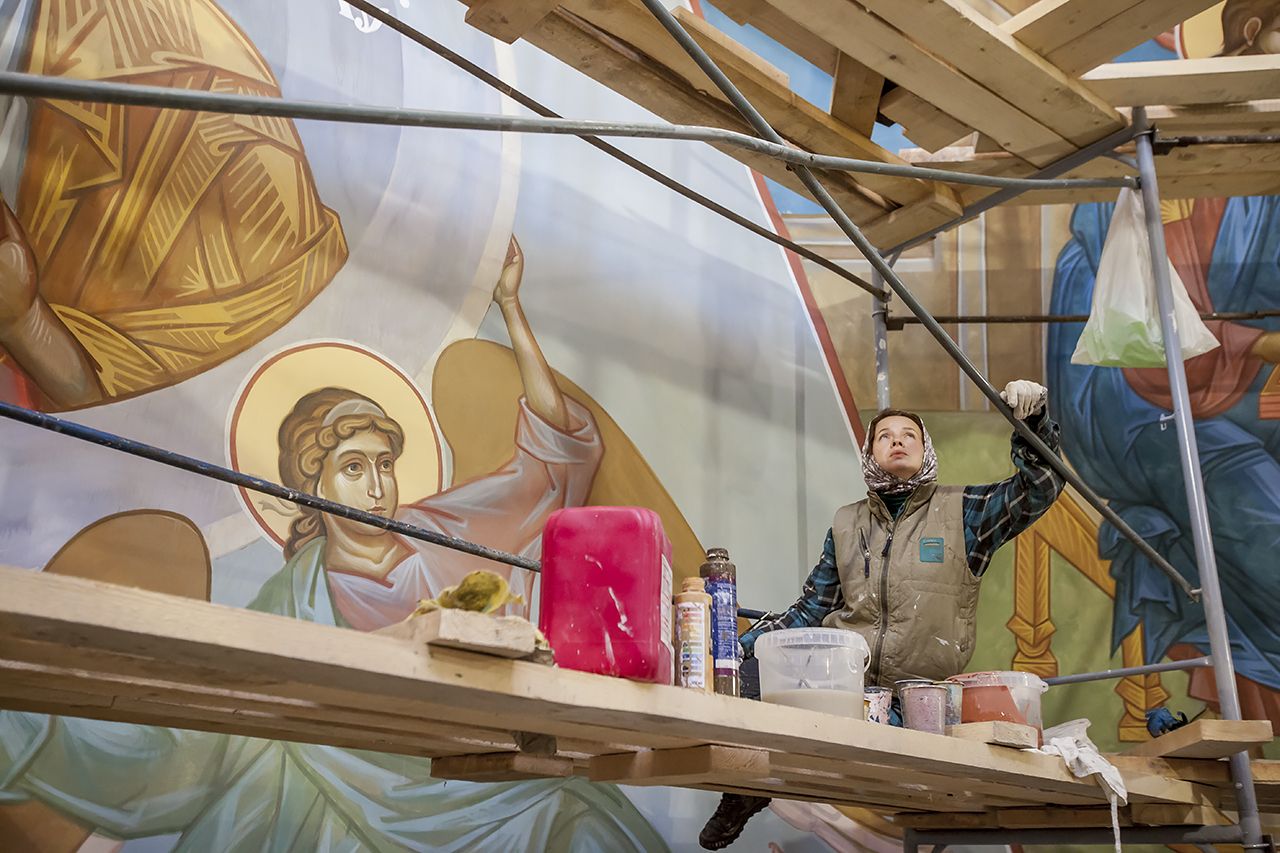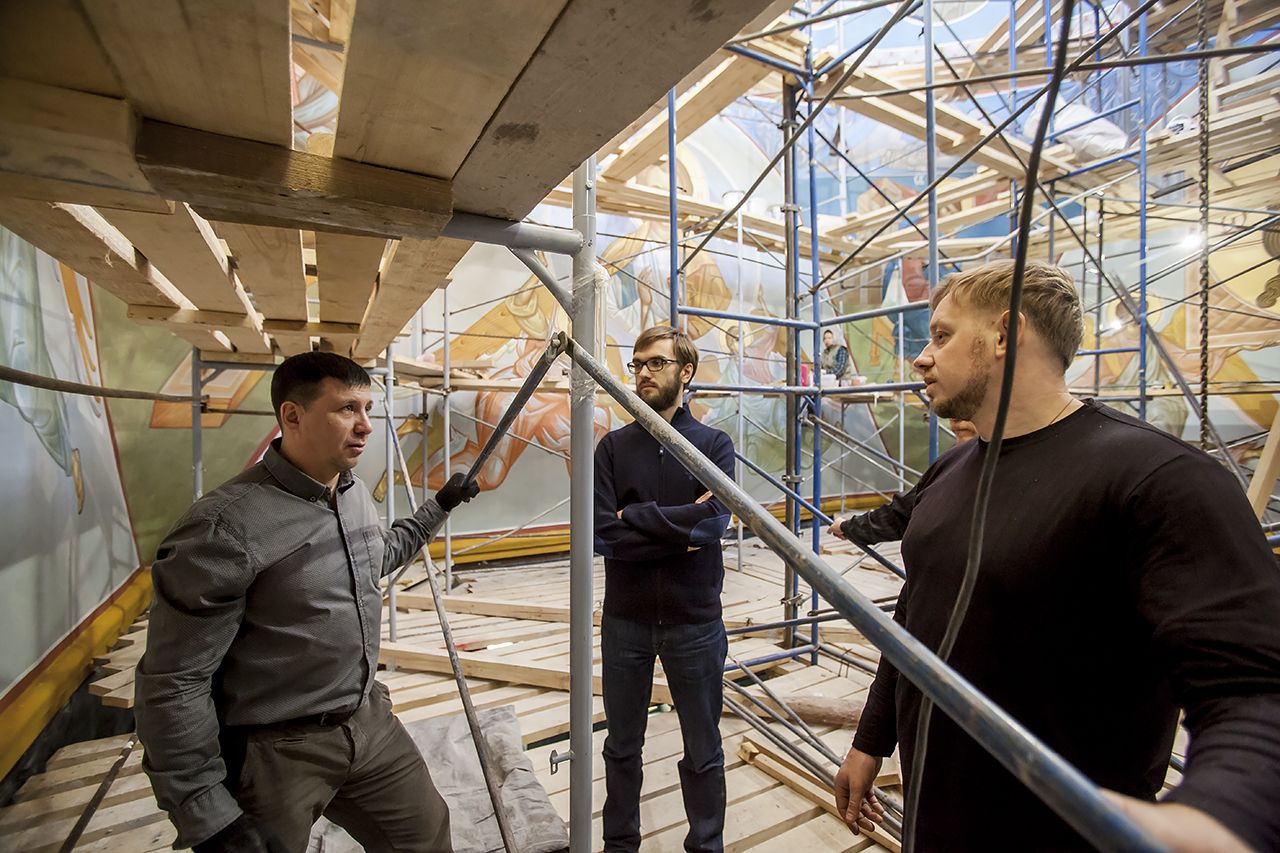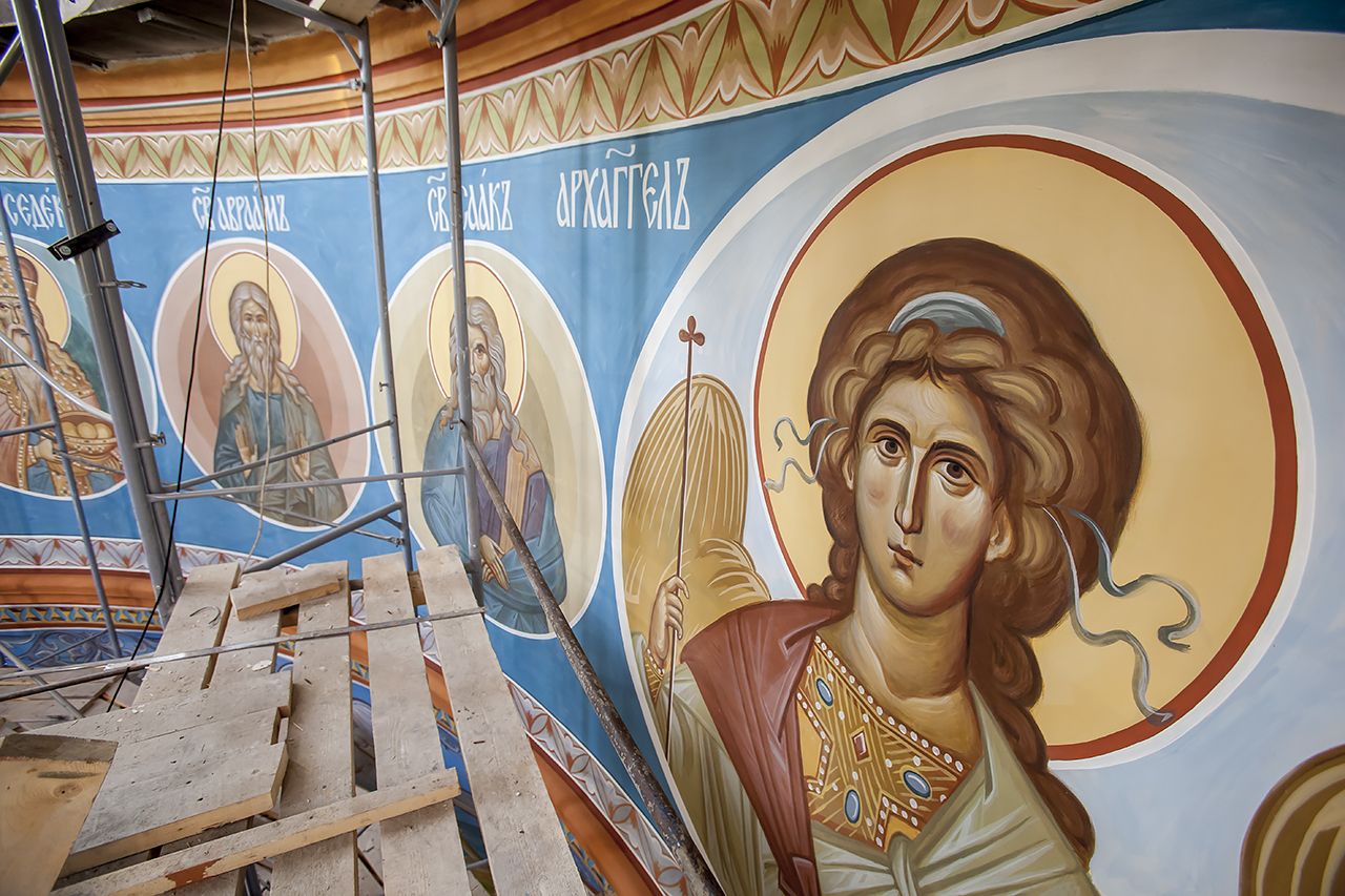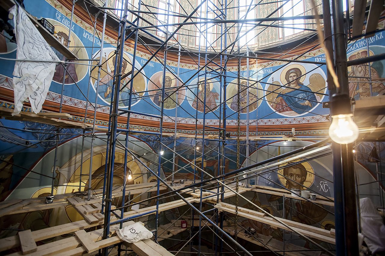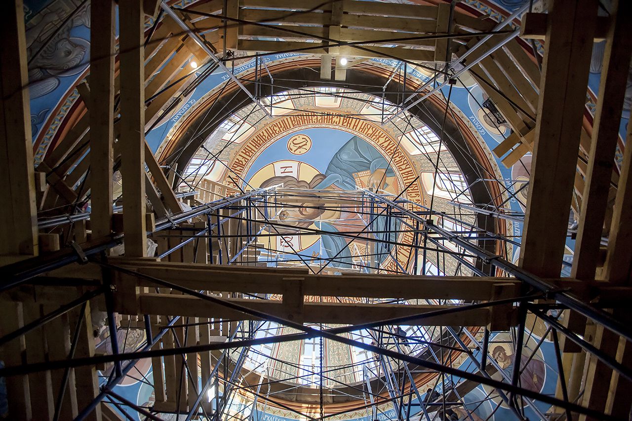 Предлагаем Вашему вниманию небольшой фоторепортаж, посвященный ходу работ по обновлению храмовых росписей в соборе.
