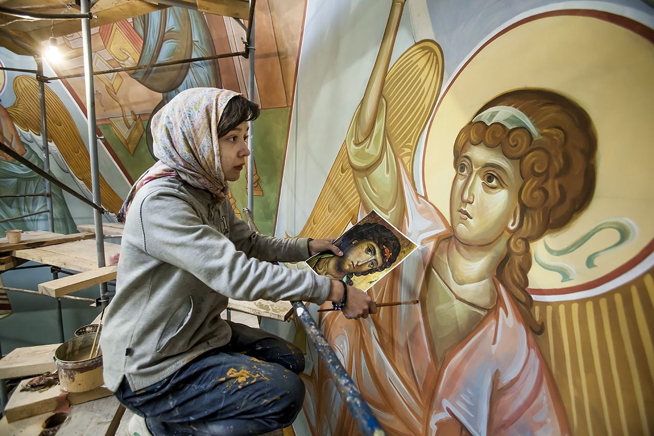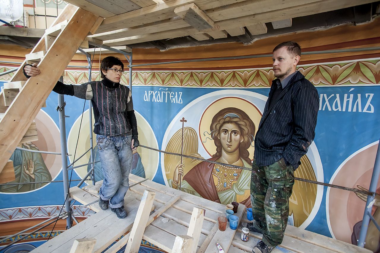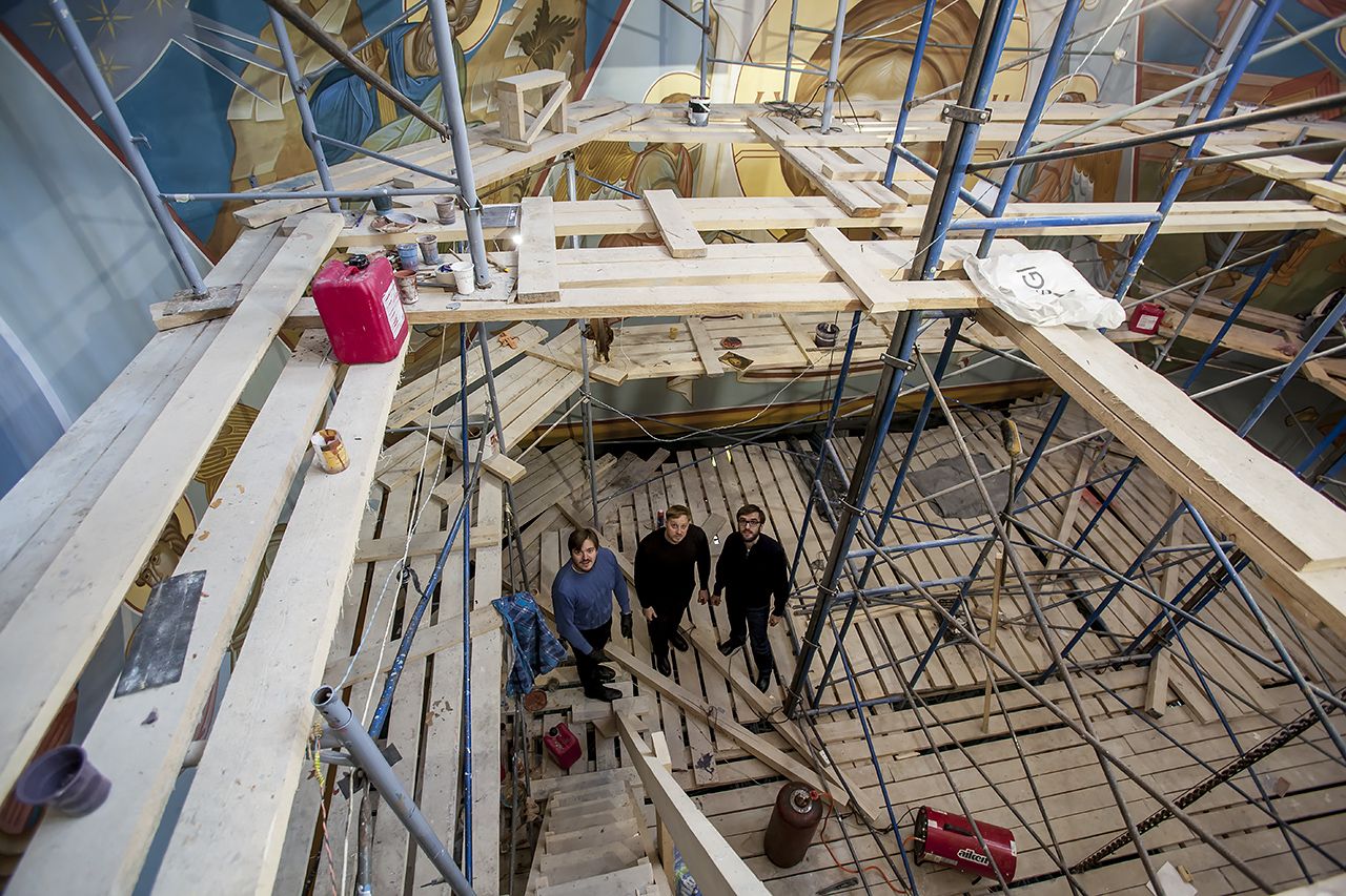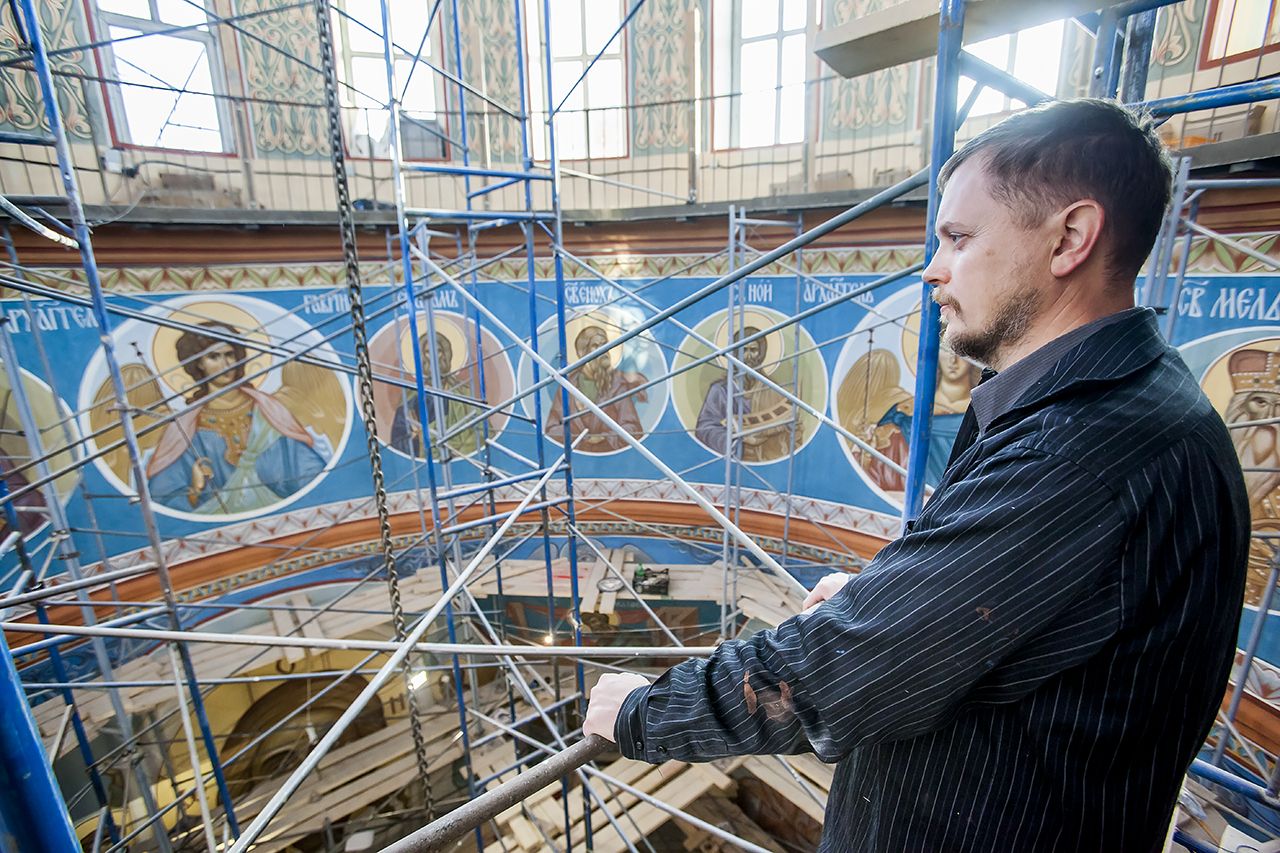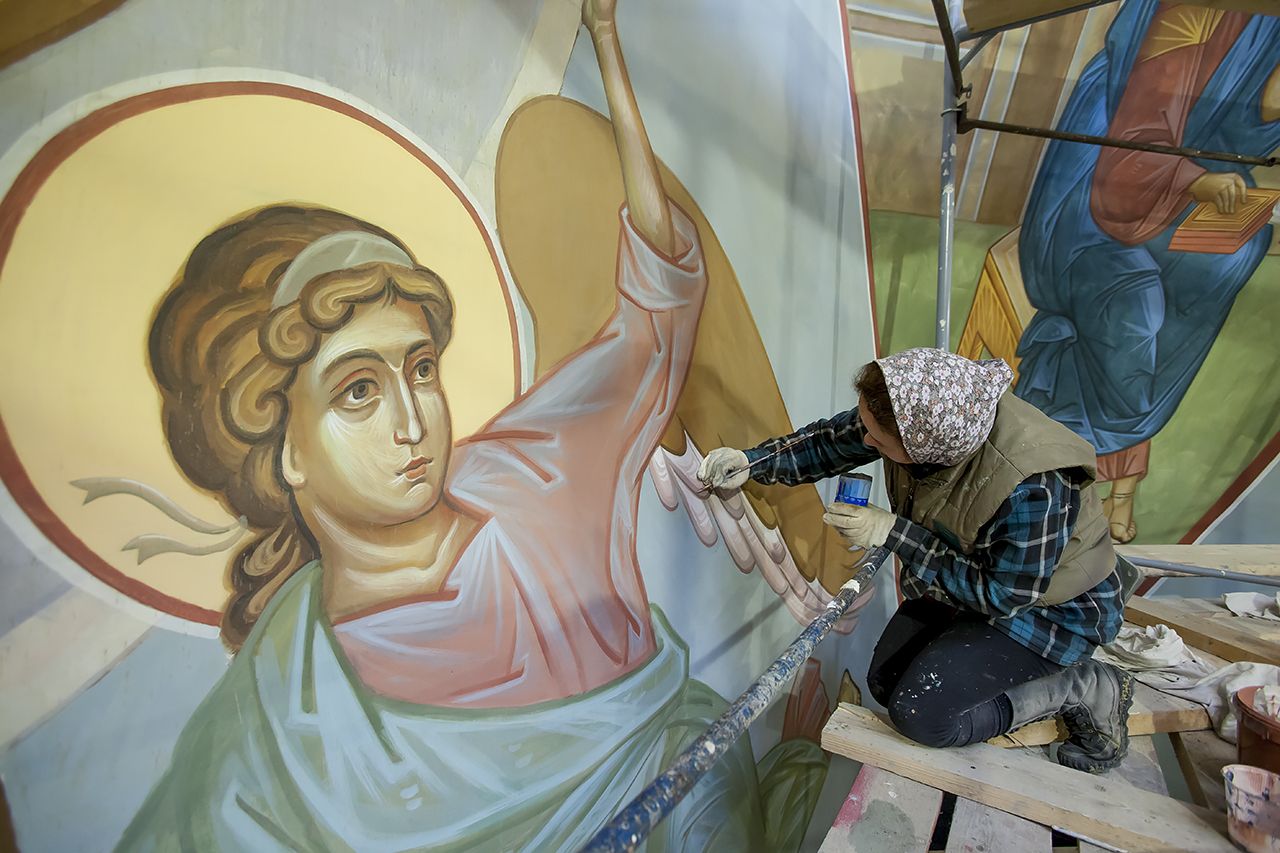 Предлагаем Вашему вниманию небольшой фоторепортаж, посвященный ходу работ по обновлению храмовых росписей в соборе.
