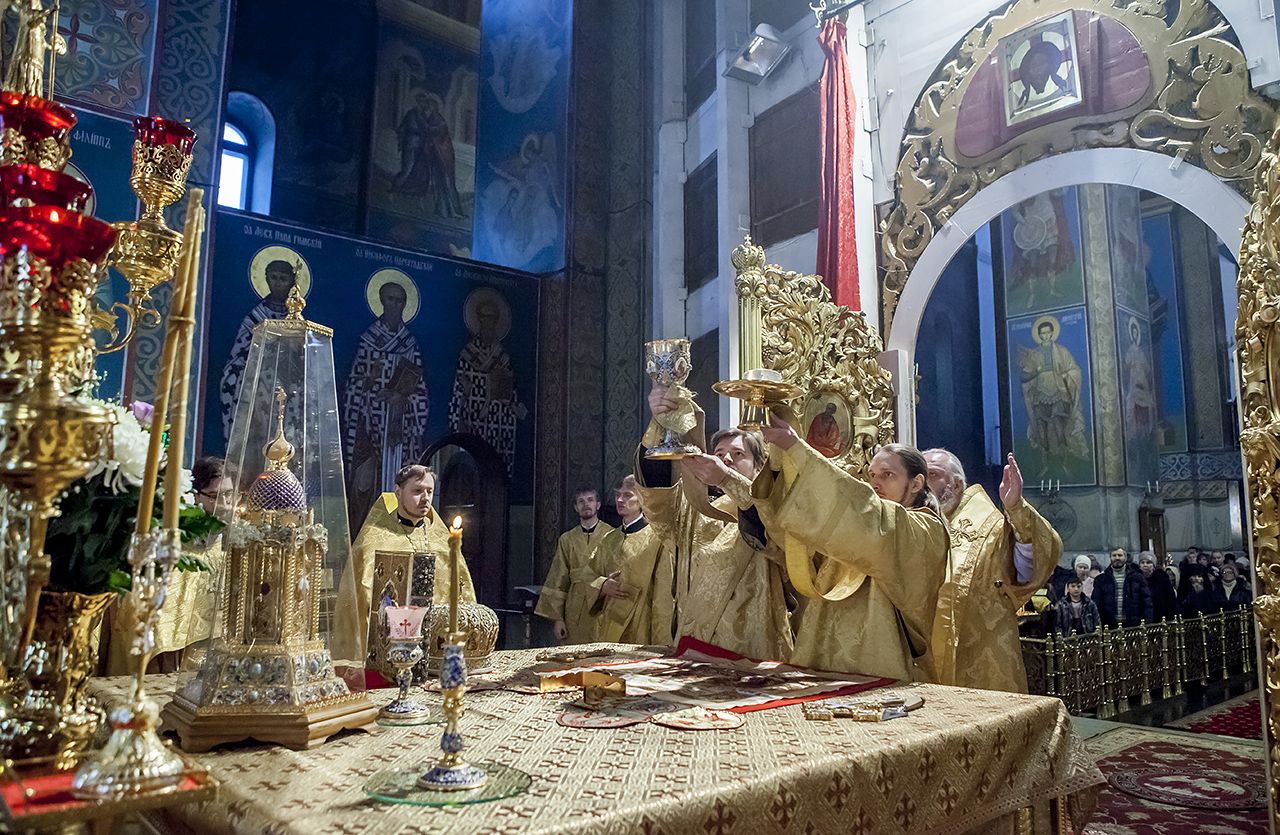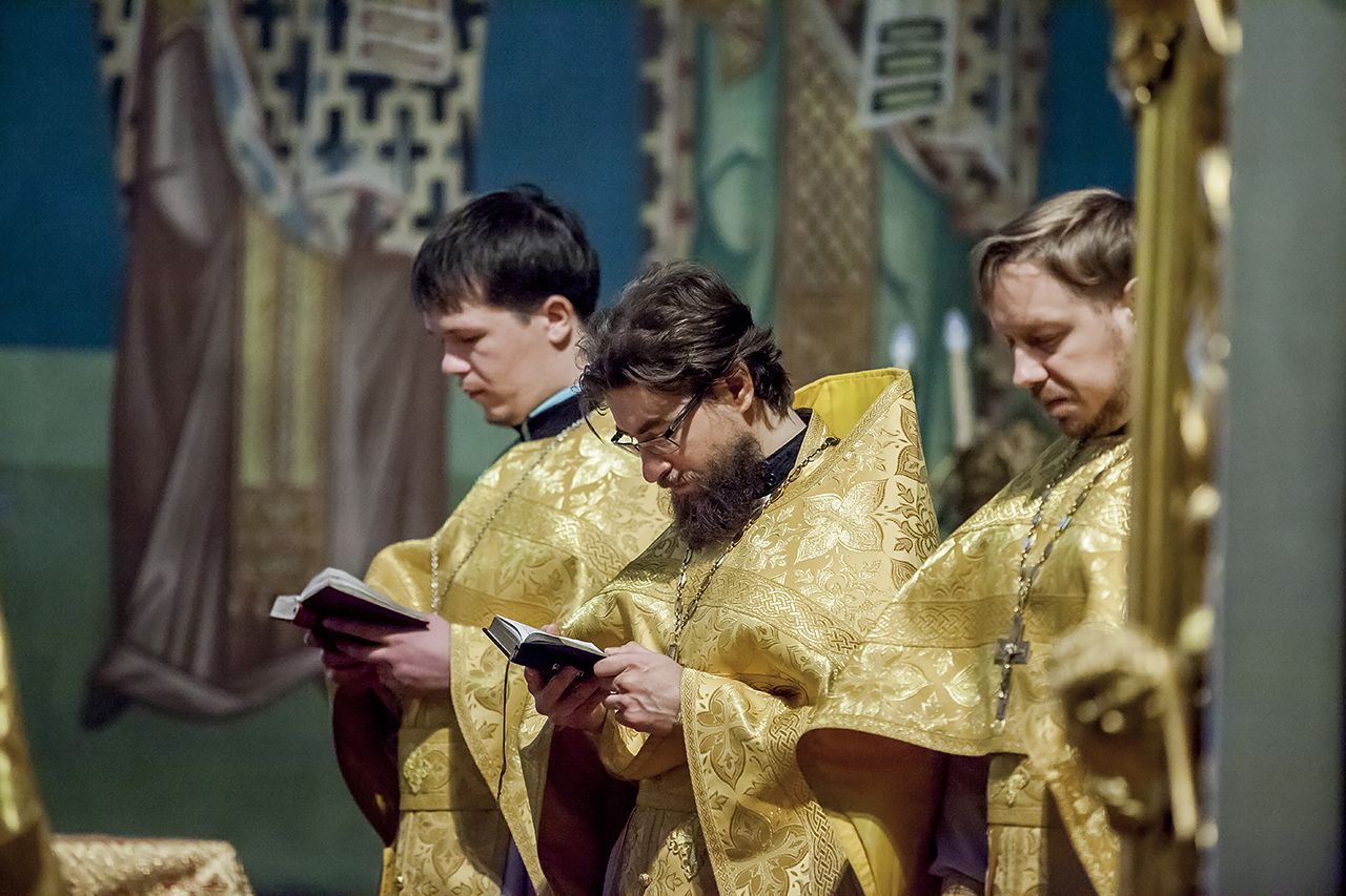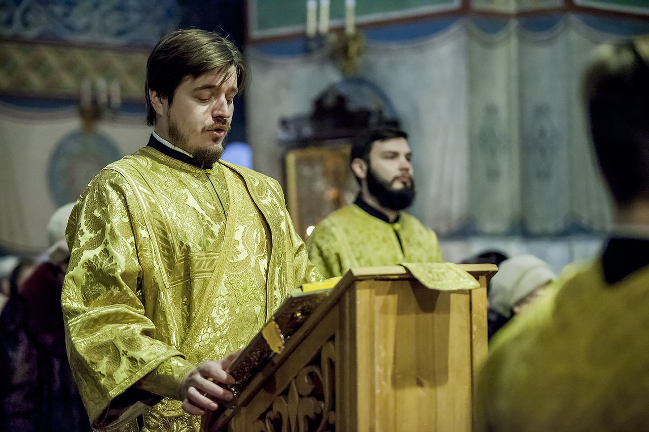 На утрене митрополит прочел отрывок из Евангелия от Луки, повествующий о явлении Воскресшего Спасителя апостолам Луке и Клеопе, а также совершил помазание освященным маслом священнослужителей и прихожан собора, поздравив каждого с наступающим воскресным днем и празднованием памяти святителя Спиридона Тримифунтского.