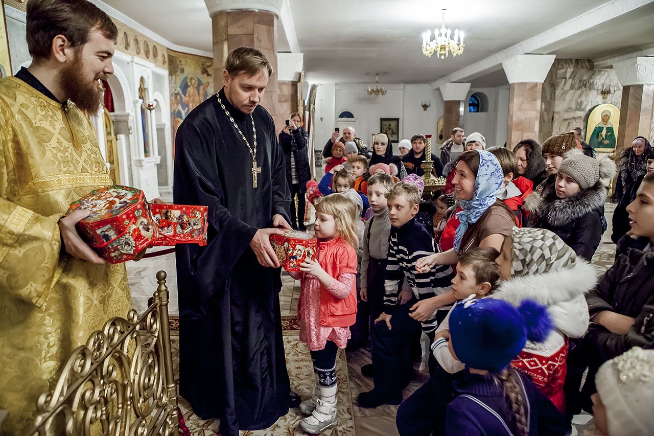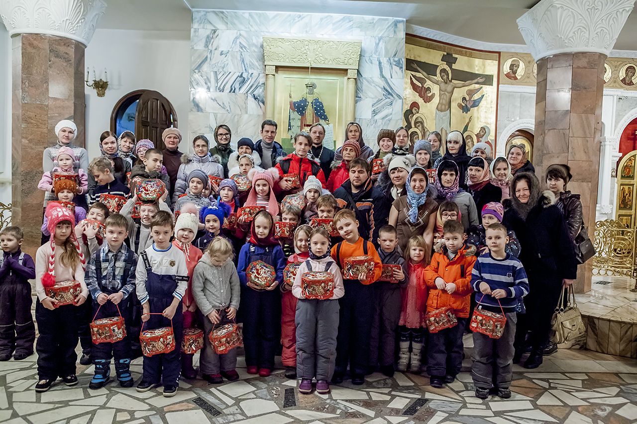 Также стоит отметить, что в храмах Кузбасской митрополии продолжается вручение сладких подарков учащимся Воскресных школ от Администрации Кемеровской области к Новому году и празднику Светлого Рождества Христова. Так, по окончании богослужения в Знаменском соборе настоятель храма протоиерей Александр Гусаков исполнил радостную миссию, передав подарки учащимся приходской Воскресной школы.
