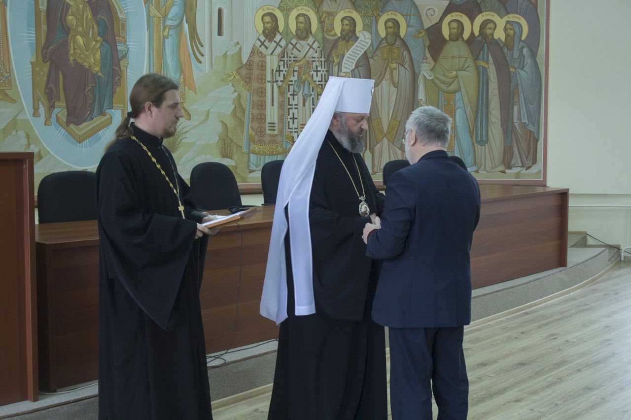 Затем с речью выступил председатель правления Союза Писателей Кузбасса Борис Васильевич Бурмистров, после чего глава Митрополии вручил Кузбасские литературные Премии победителям: