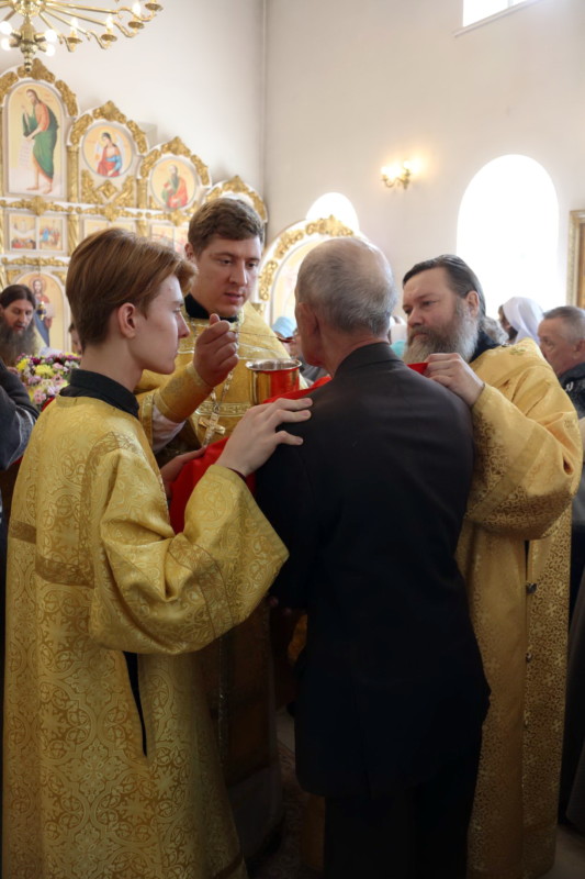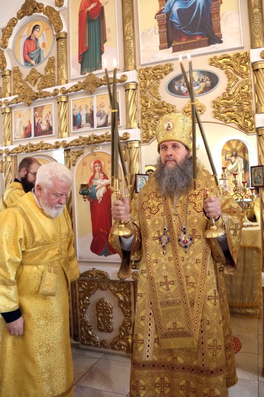 Его Высокопреосвященству сослужили секретарь Курганской епархии священник Леонид Перчугов, благочинный Западного благочиния протоиерей Михаил Артемов, настоятель Иоанновского храма протоиерей Анатолий Лаврентьев, клирики епархии.