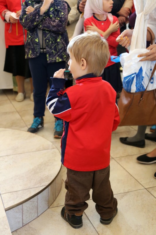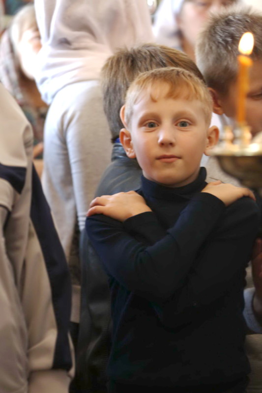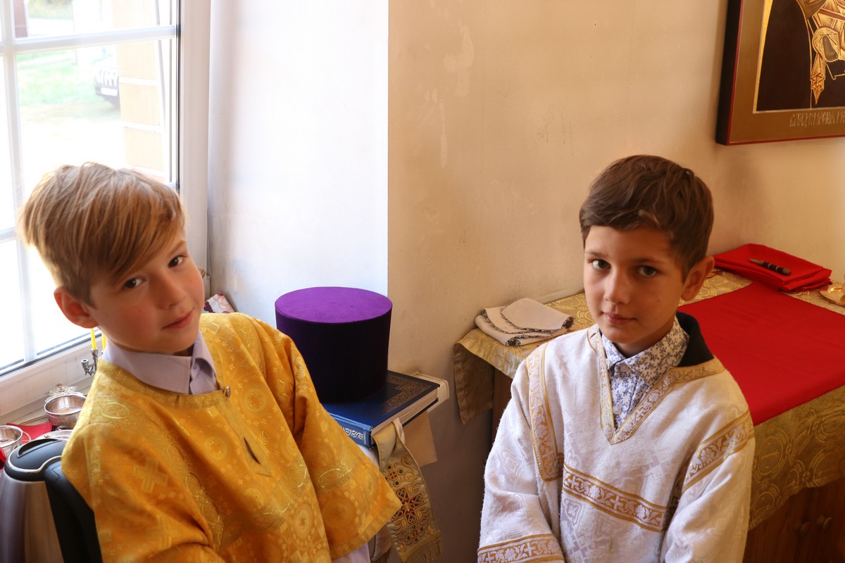 За Литургией пели детские хоры Курганской епархии. Воспитанники воскресных школ помогали в алтаре, читали во время богослужения Часы и Апостол.