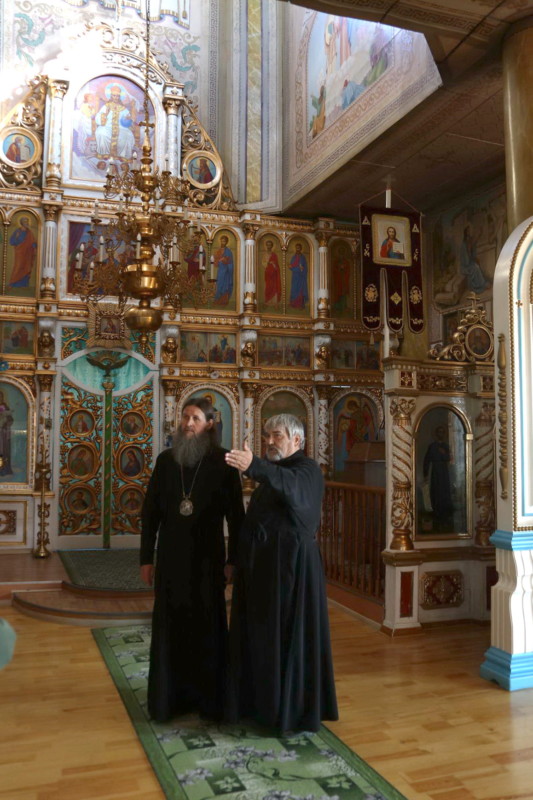 Владыка помолился в Свято-Духовском храме, осмотрел жилые помещения и хозяйственные постройки. Ключарь Архиерейского подворья игумен Иларион (Лоскутников) рассказал архипастырь об истории и современной жизни храмового комплекса.