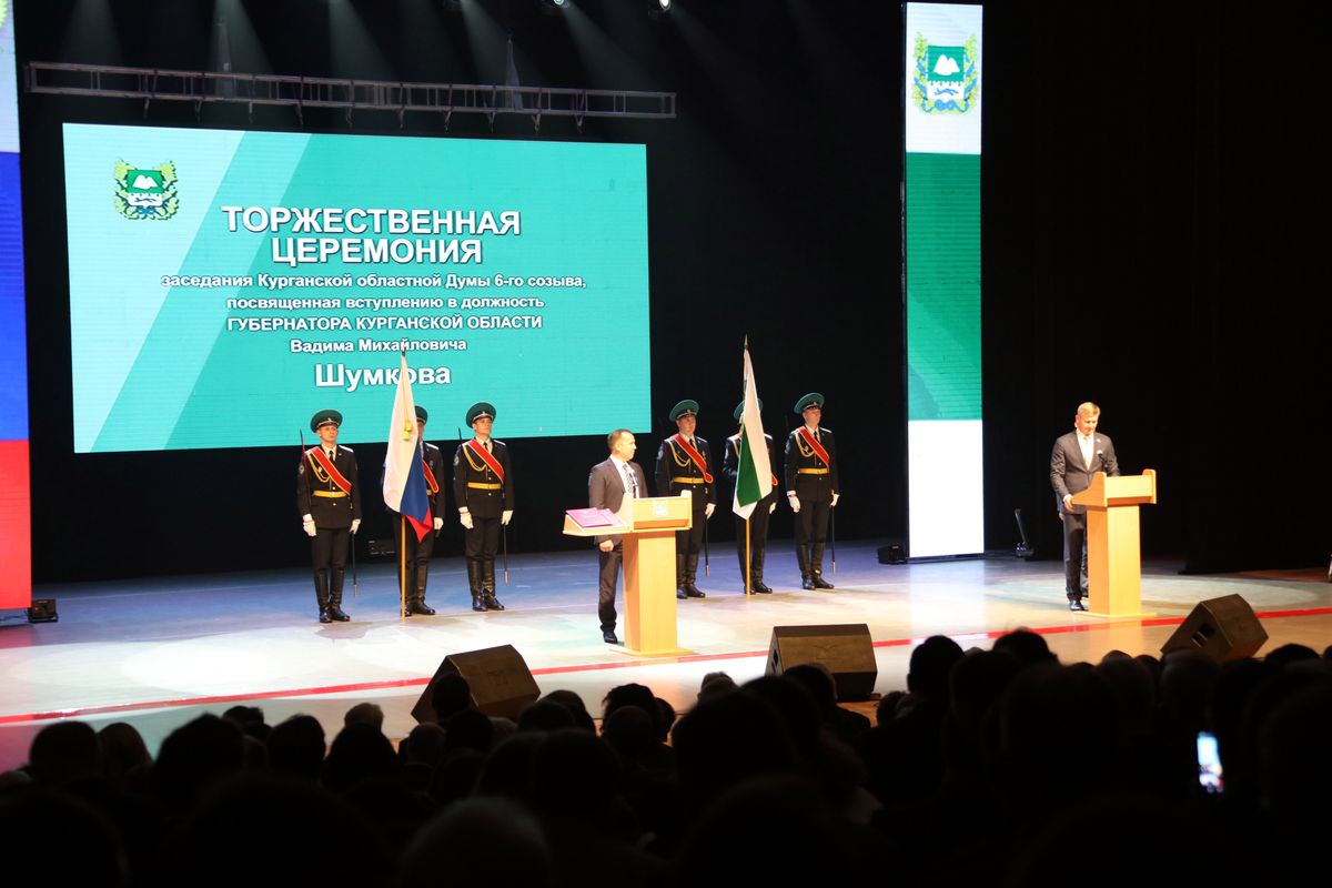 «С одинаковым старанием я буду работать и для тех, кто голосовал за меня и для тех, кто голосовал за других кандидатов. Я благодарен своей стране и своему народу за то воспитание и образование, которое я получил и которое сегодня помогает мне в работе. Я благодарю своих родителей, свою семью за то, что они являются для меня опорой. Я благодарен всем вам, кто пришел в этот зал. Я уверен, что нас ждет большая, совместная и самая благородная в этой жизни работа», — сказал новый губернатор Курганской области Вадим Шумков.