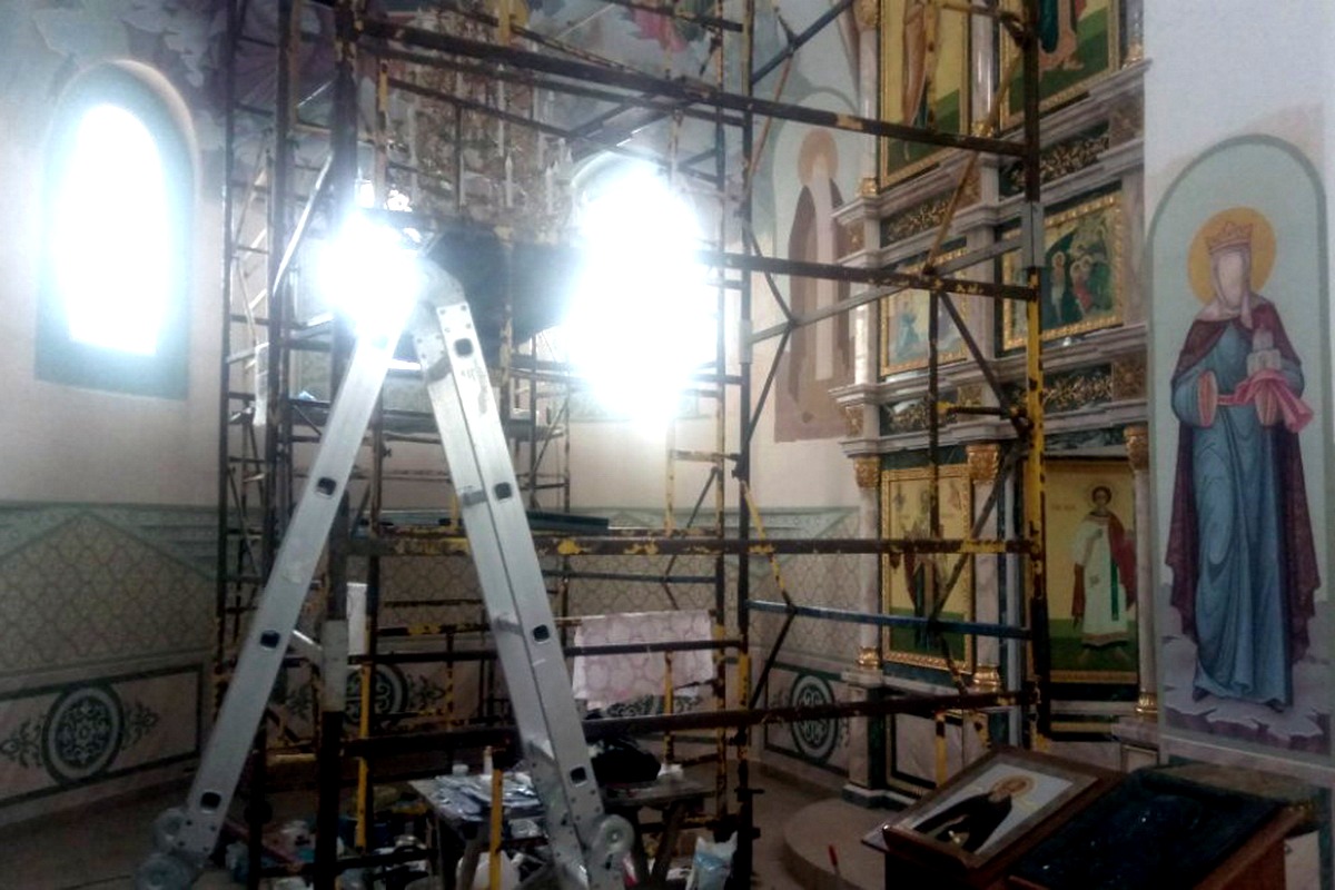 В храме Рождества Христова районного центра Частоозерье произошло радостное событие – было положено начало нанесению росписи на стены и своды храма.