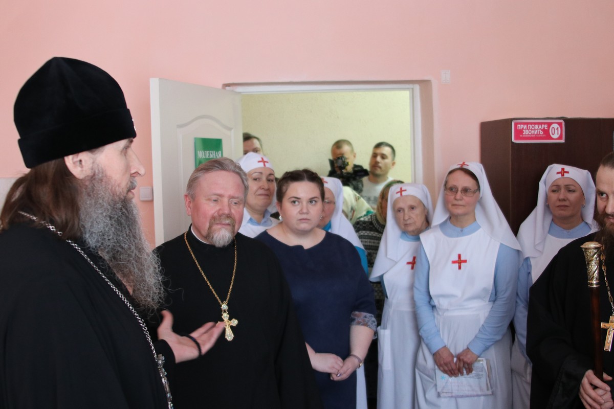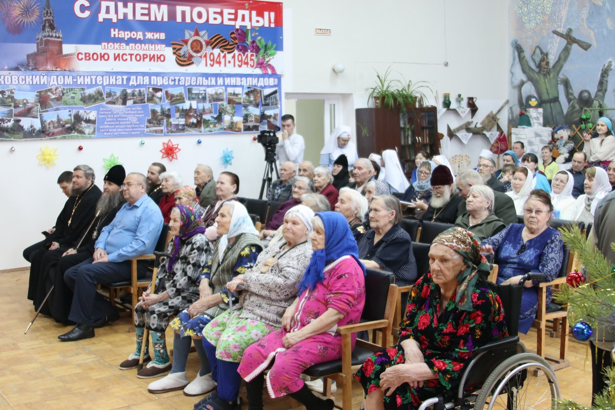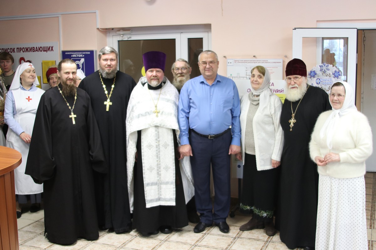 А директор учреждения Герман Хмелёв сказал, что люди в преклонном возрасте нуждаются в Божием покровительстве, поэтому дом-интернат очень тесно сотрудничает с местным приходом, с сестричеством милосердия, и что с сегодняшним визитом владыки коллектив связывает большие надежды на то, эти связи ещё больше окрепнут.