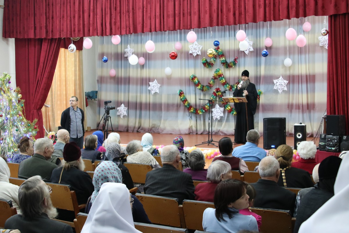 После обхода отделения милосердия гости поднялись на второй этаж в актовый зал, где проживающие собрались на концерт, который подготовила и провела жительница Кургана Маргарита Терновская с дочерями Елизаветой и Кристиной. Открывая концерт, Маргарита рассказала, что посвятила его своей бабушке, которая в возрасте 91 года умерла в 2002 году в доме престарелых города Шадринска. «Так сложилась наша семейная история, что свои последние годы она жила среди чужих людей. Я часто навещала её, бабушка была для меня примером цельности, спокойствия и покаяния. Но я ни разу не была на её могиле, и моё участие в этом концерте – малая лепта в честь дорогой моему сердцу покойницы рабы Божией Серафимы».