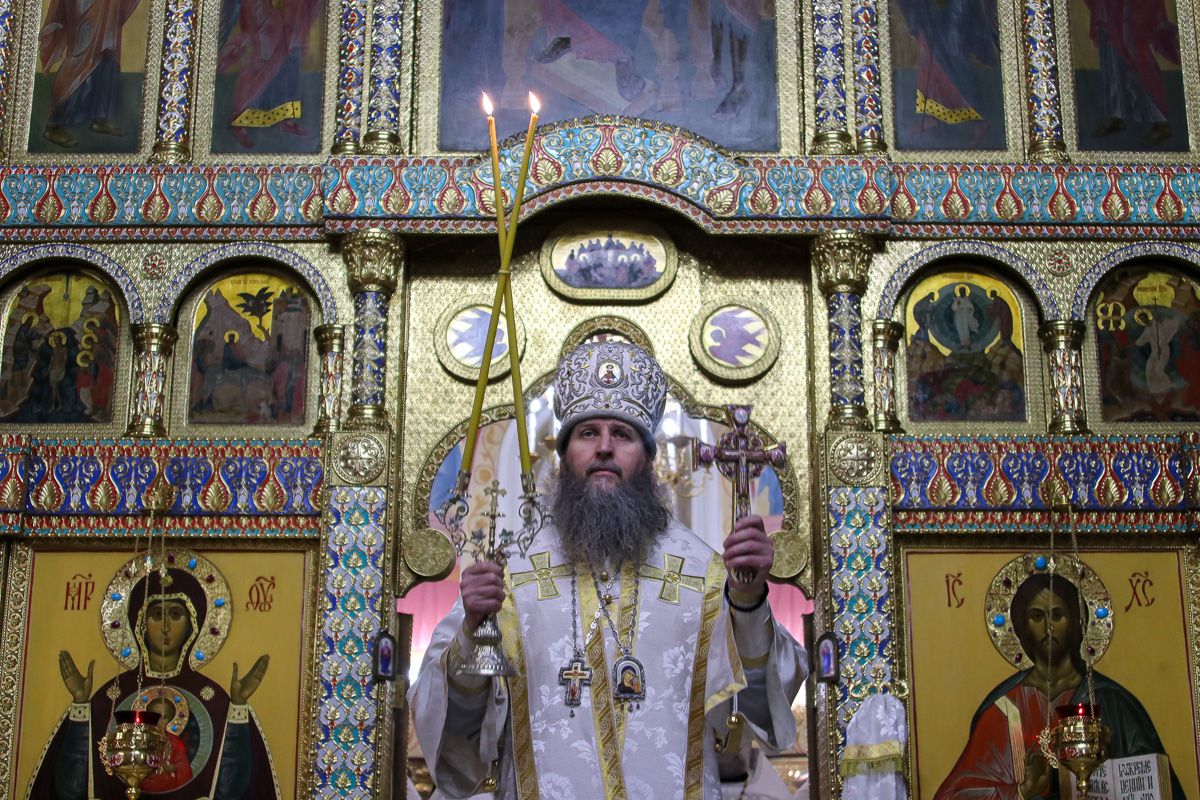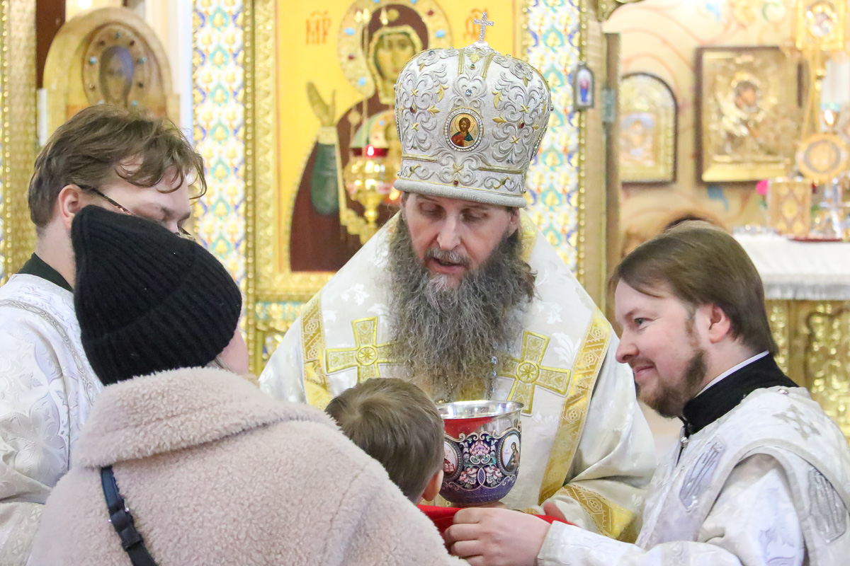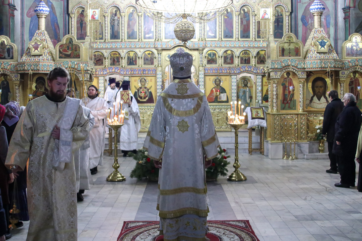 После богослужения владыка поздравил паству с Крещенским сочельником и обратился к верующим с проповедью.
