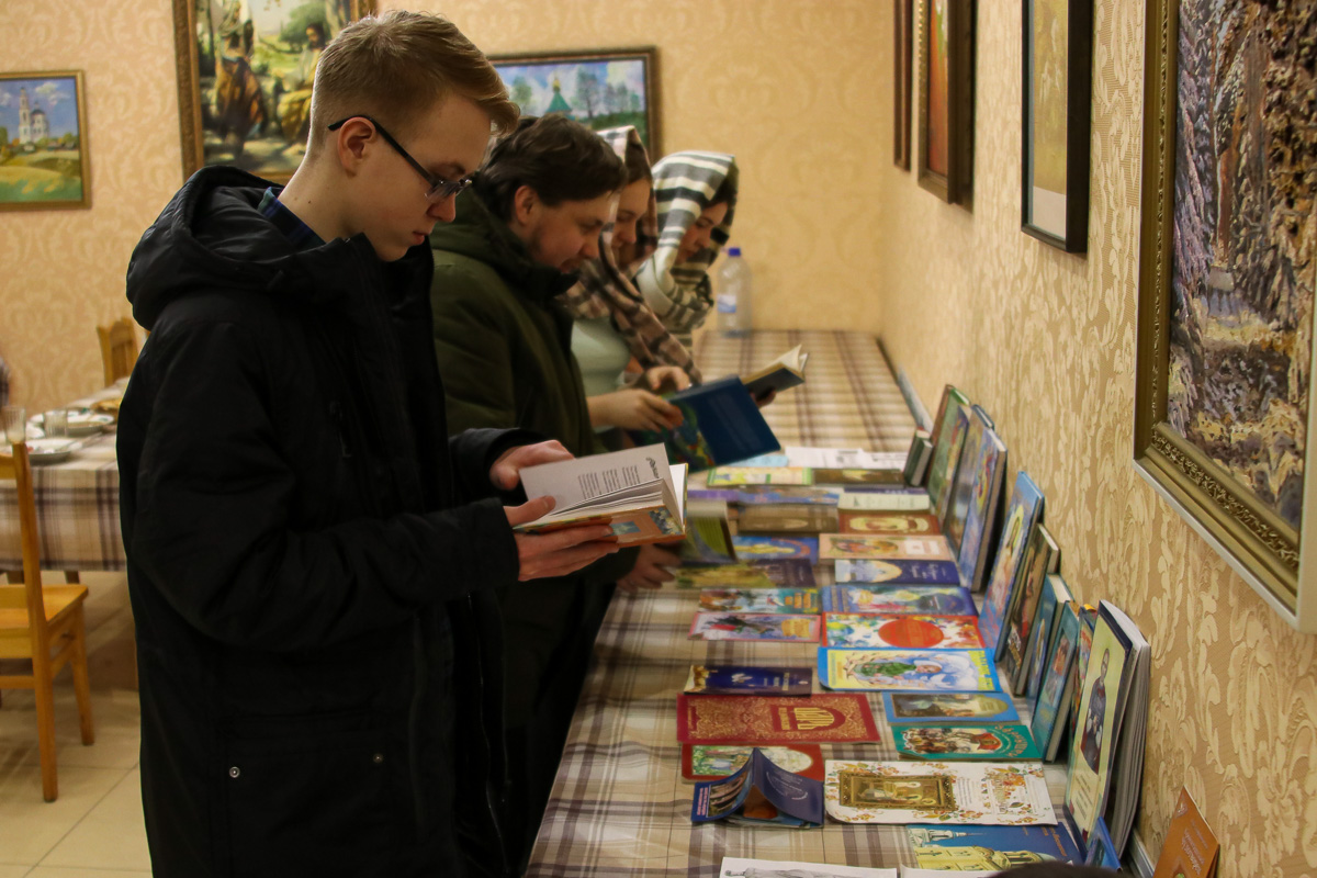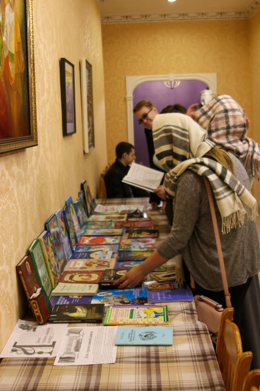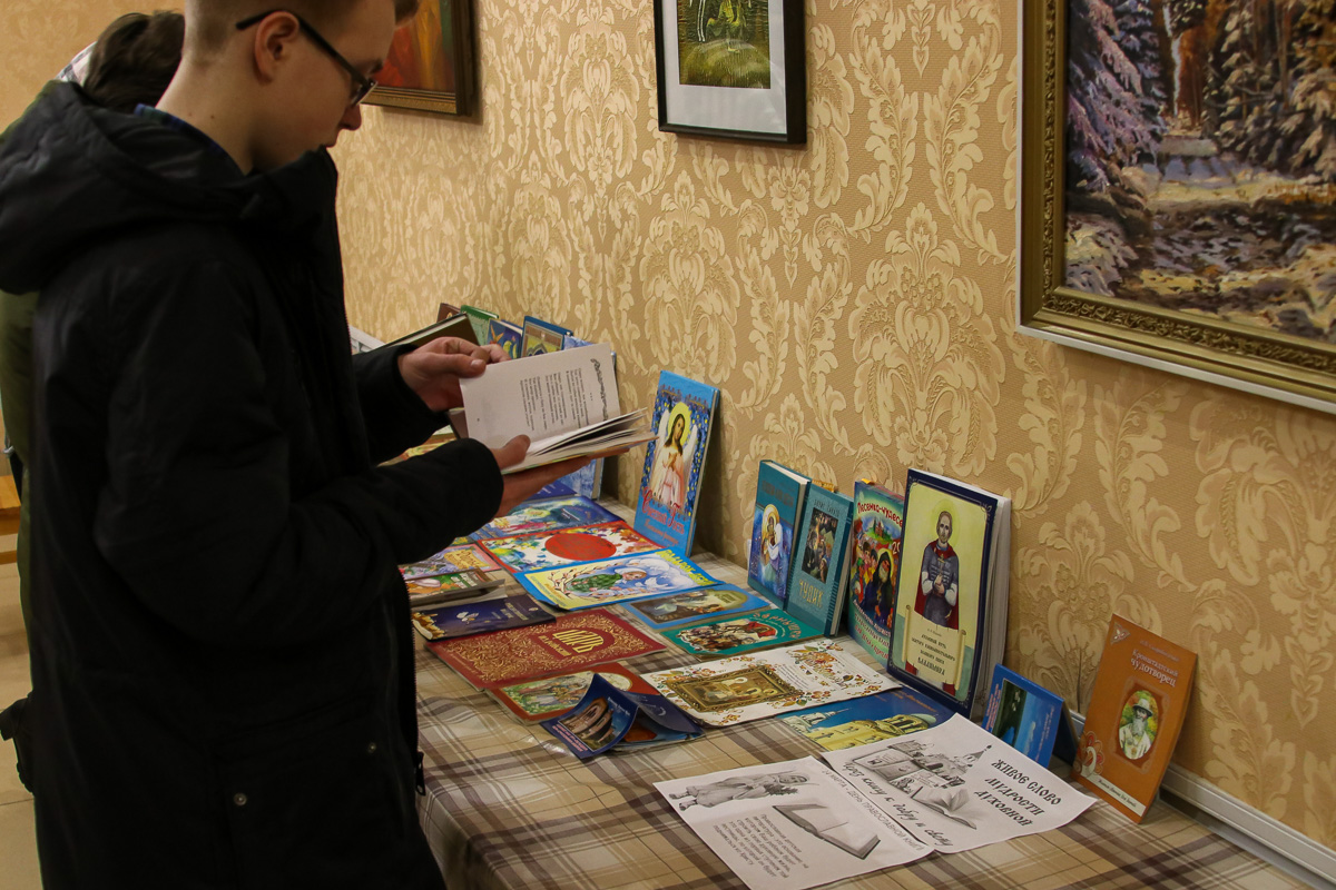 Кроме того, в честь Дня православной книги в трапезной собора была оформлена небольшая выставка детской православной литературы. Первыми познакомились с экспозицией воспитанники воскресной школы. Педагог школы Валентина Игнатьева рассказала об истории праздника, о первопечатнике Иване Фёдорове, познакомила детей с книжками из экспозиции. «Каждый из вас может выбрать понравившуюся книжечку и прочитать её дома, вместе с родителями и обсудить то, что вы из неё узнаете», — сказала Валентина Викторовна.
