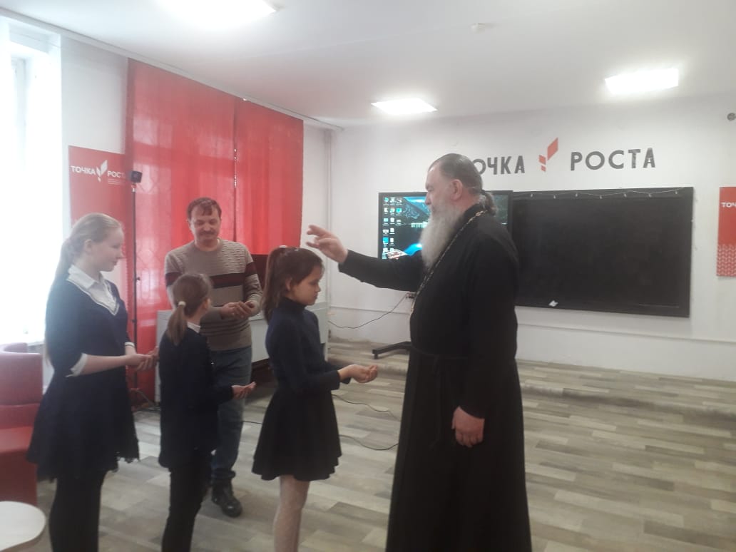 В ходе общения дети узнали, имя какого святого они носят, а в конце получили благословение от священника.