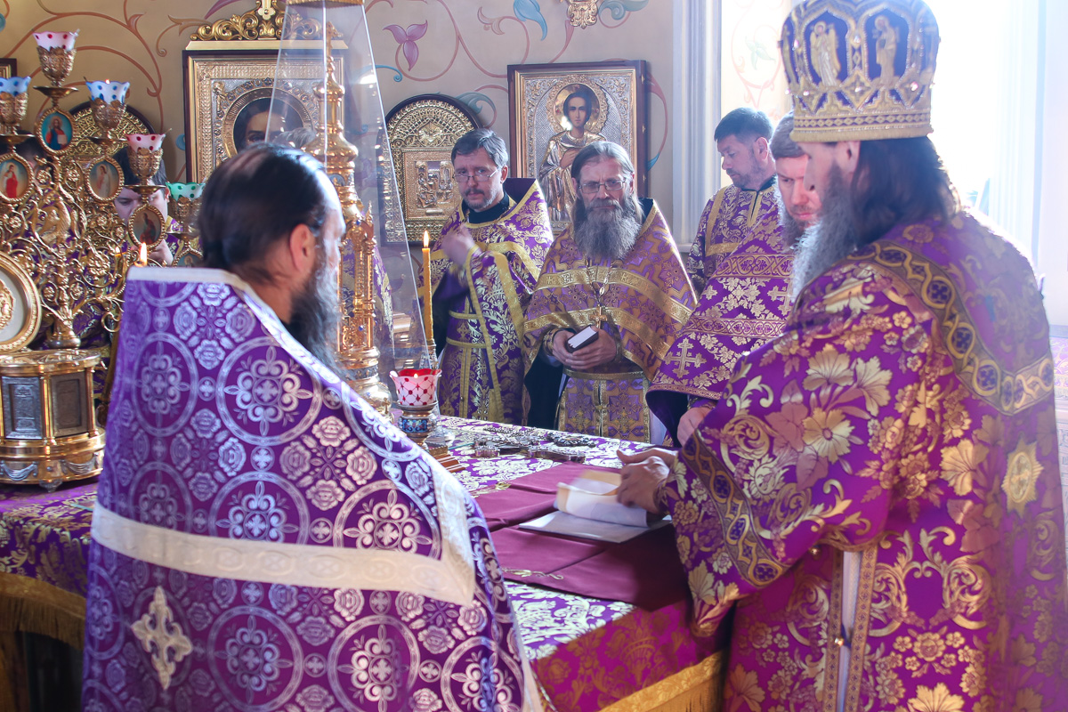 За богослужением владыка совершил чин возведения в игумены иеромонаха Варнавы (Ваулина), наместника Свято-Казанского Чимеевского мужского монастыря, утвержденного в должности решением Священного Синода Русской Православной Церкви на заседании 11 марта.