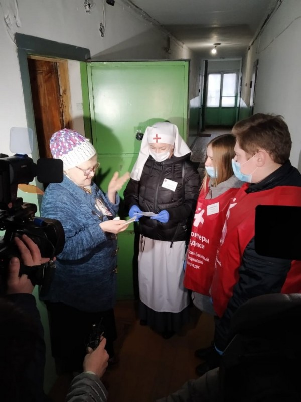 Сестра милосердия Наталья Пермякова вместе с волонтёрами-медиками Курганского медицинского колледжа Анастасией Патутинской и Евгением Тельминовым в один из дней наведались к своим подопечным.