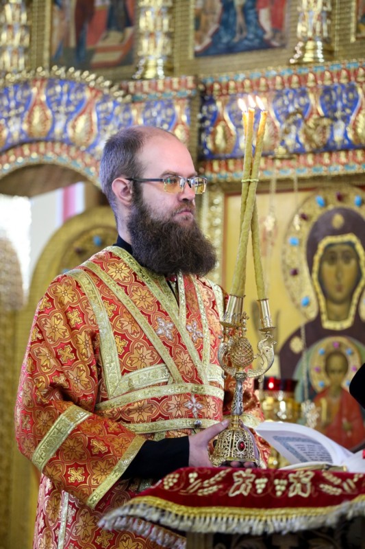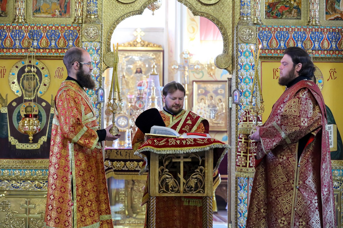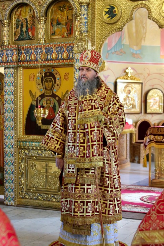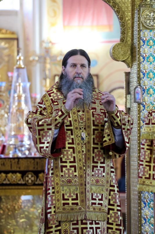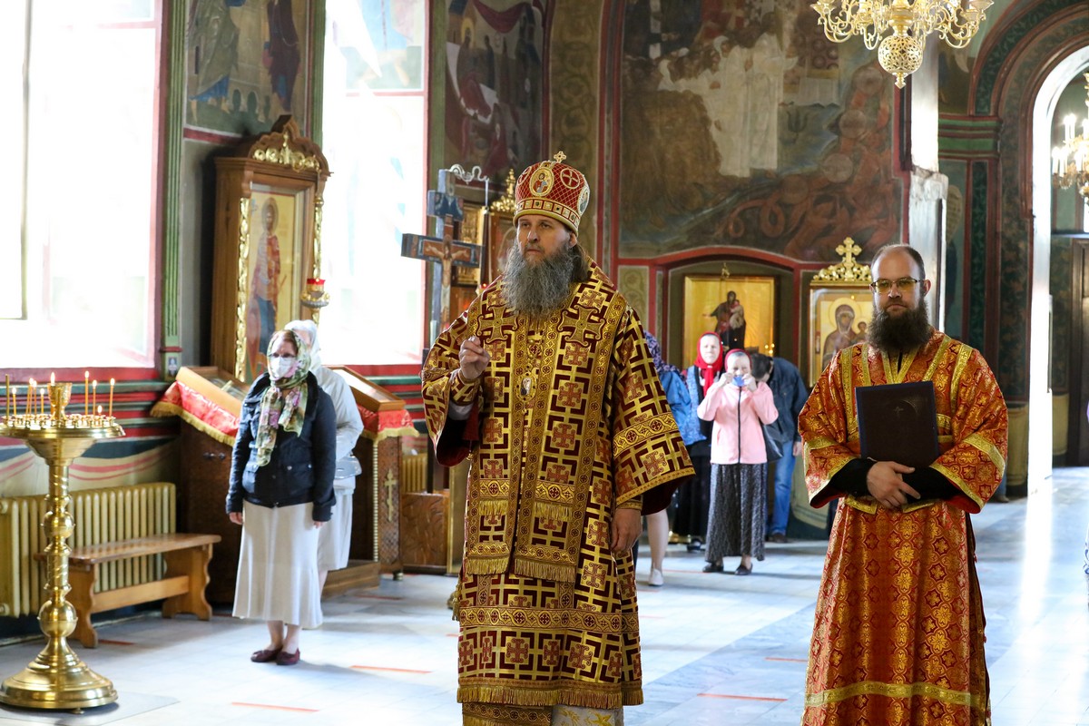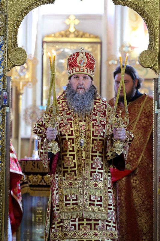 Архипастырю сослужили секретарь епархии иерей Леонид Перчугов, наместник Свято-Казанского Чимеевского мужского монастыря игумен Варнава (Ваулин), клирики епархии.