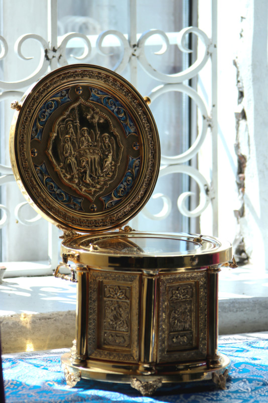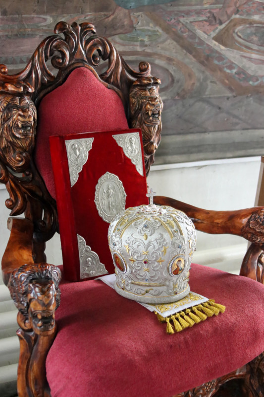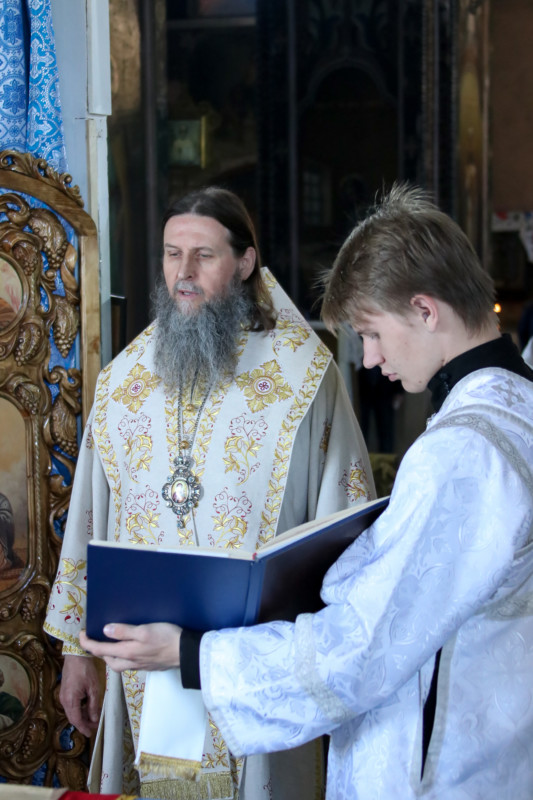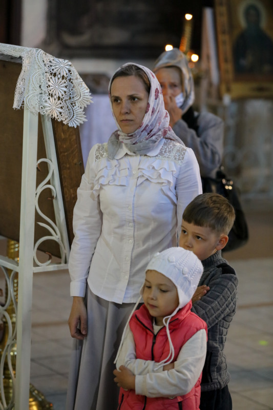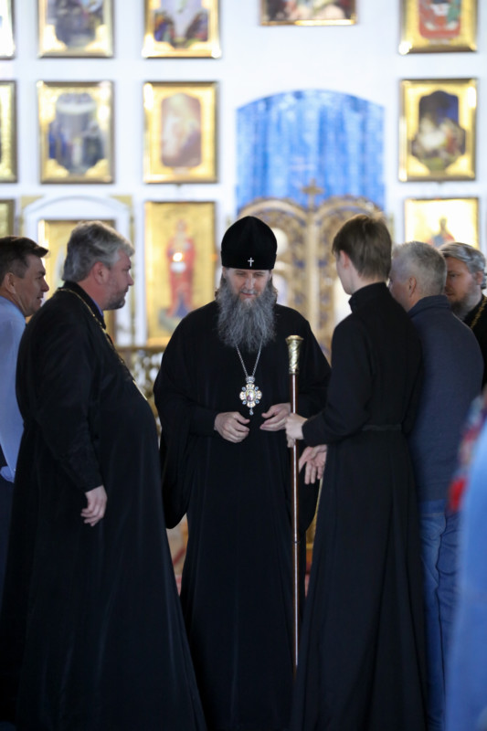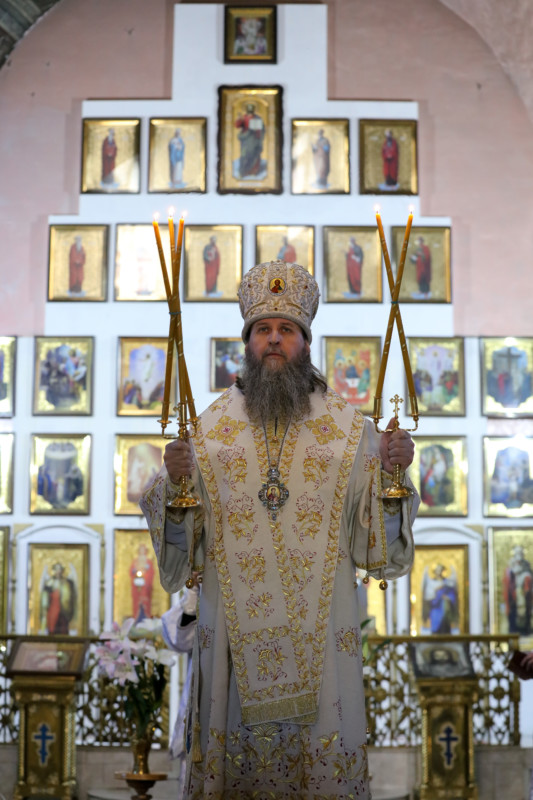 Это был уже третий визит архипастыря в старинный величественный Введенский храм. Владыка, поздравив прихожан с праздником, подчеркнул, что ему очень приятно служить в соборе, фрески которого написаны учениками художника Васнецова.