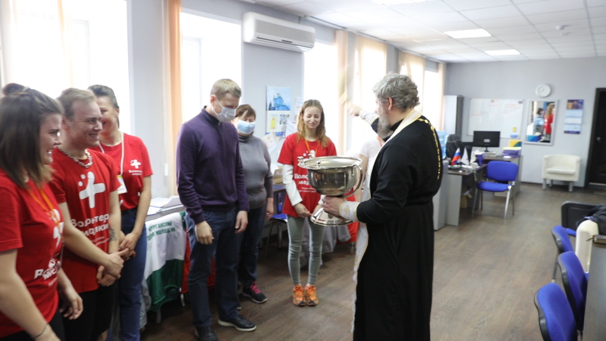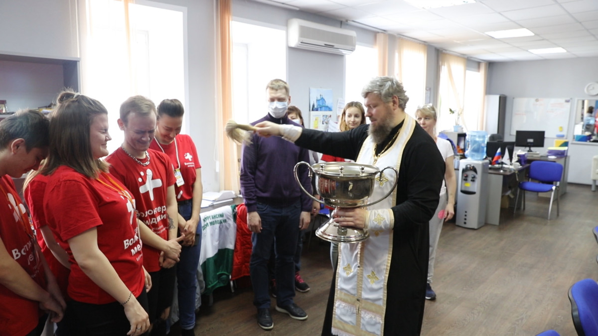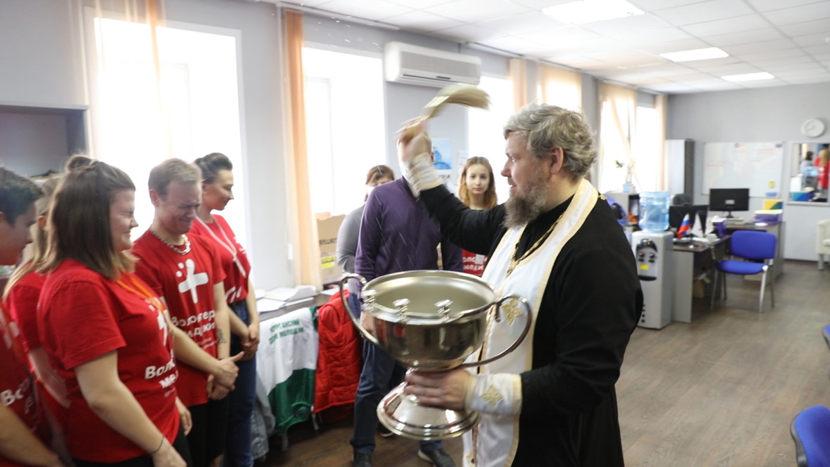 Освящение прошло в помещении регионального исполкома Общероссийского народного фронта, где сейчас размешается штаб общероссийской благотворительной акции «Мы вместе».