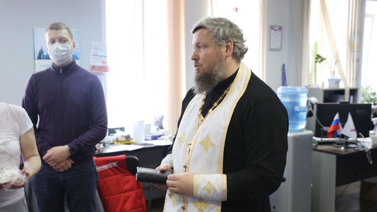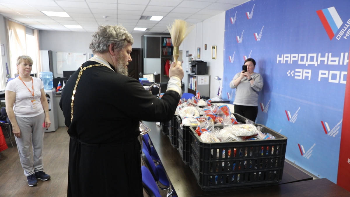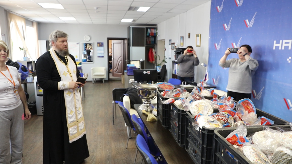 Курганский священник в штабе ОНФ освятил куличи для людей, находящихся в самоизоляции